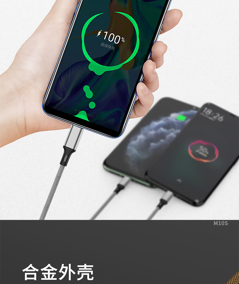 金属编织一拖数据线支持100w闪充数据线缝布编织快充