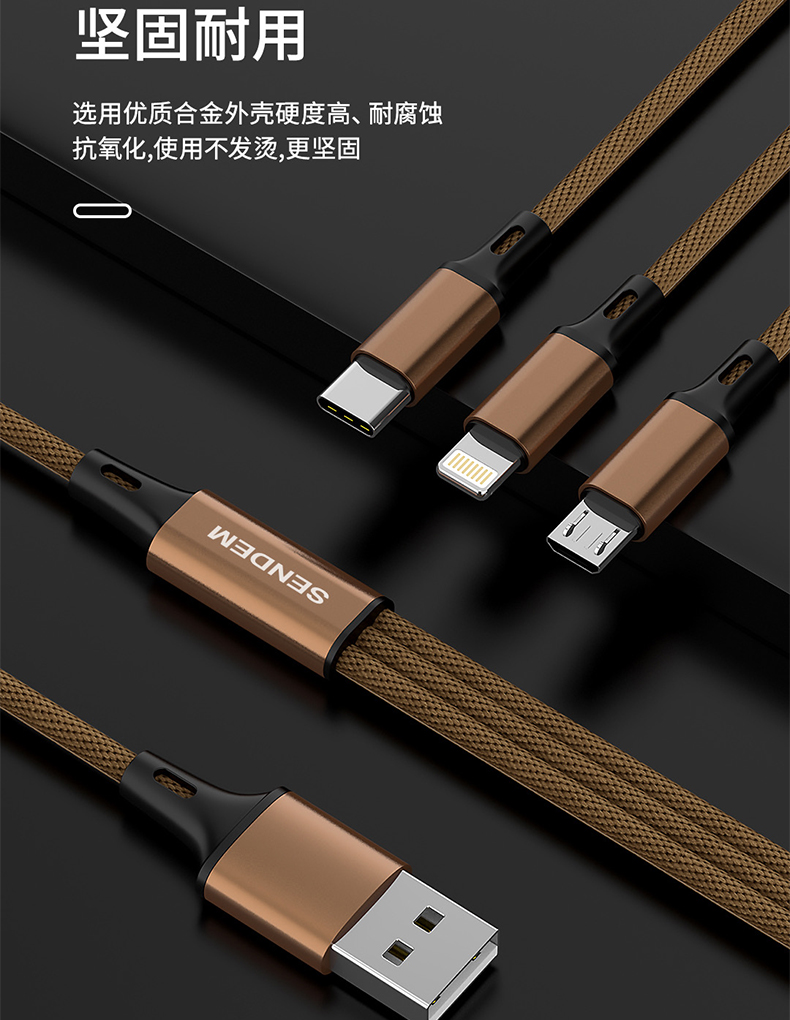 金属编织一拖数据线支持100w闪充数据线缝布编织快充 商品图0