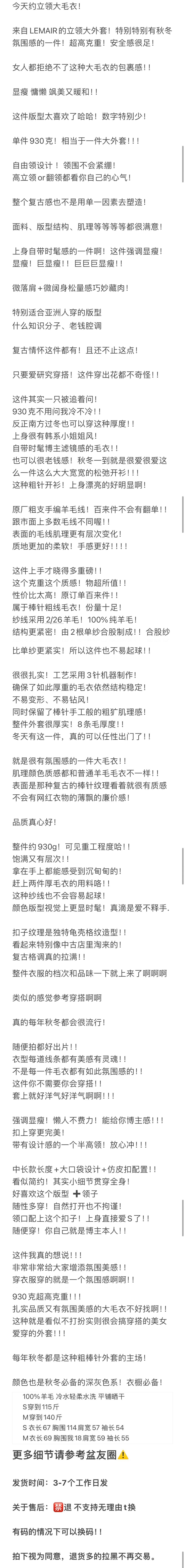 售完无补 重磅渠道 Lem立领针织外套 重磅大毛衣 羊毛针织外套