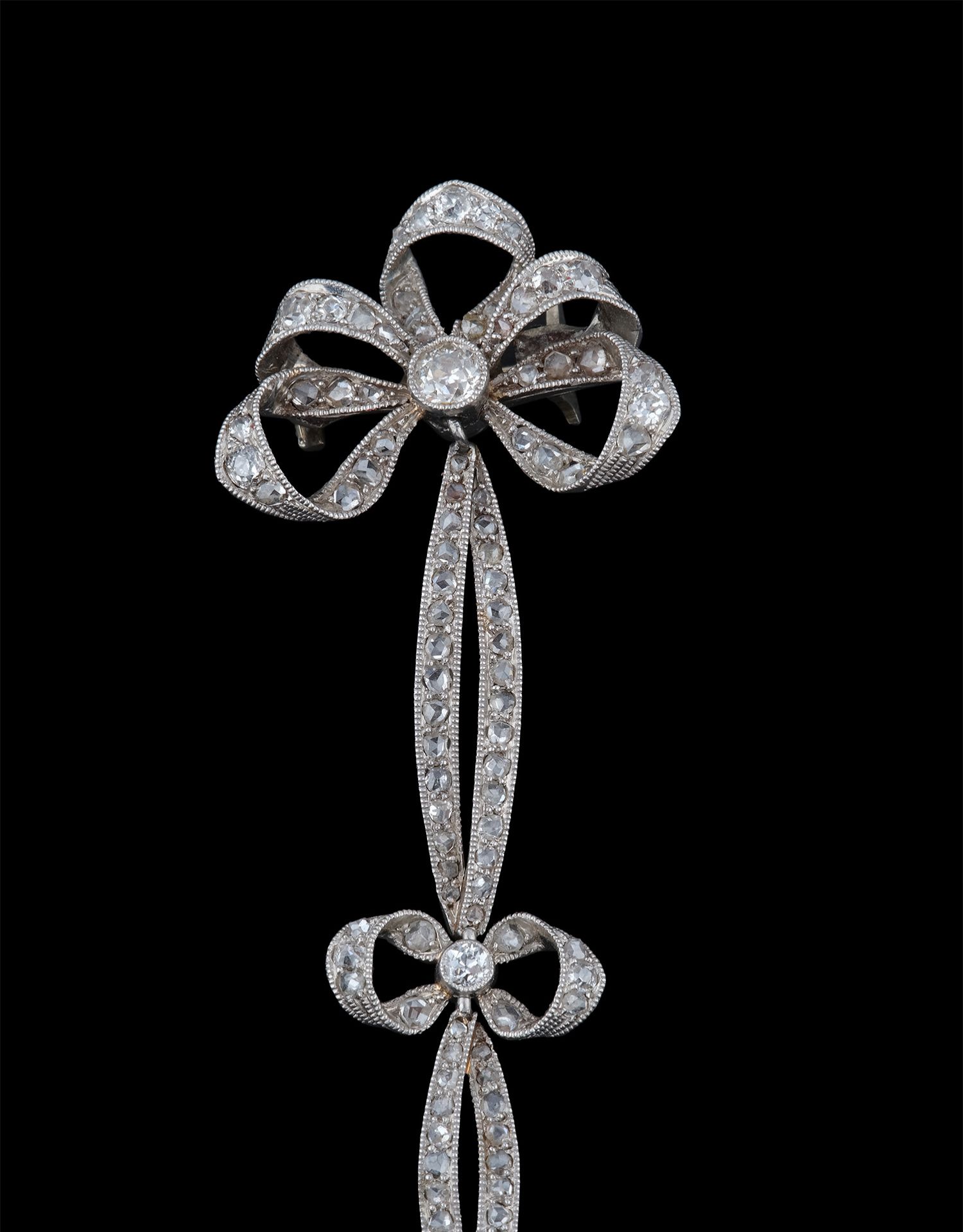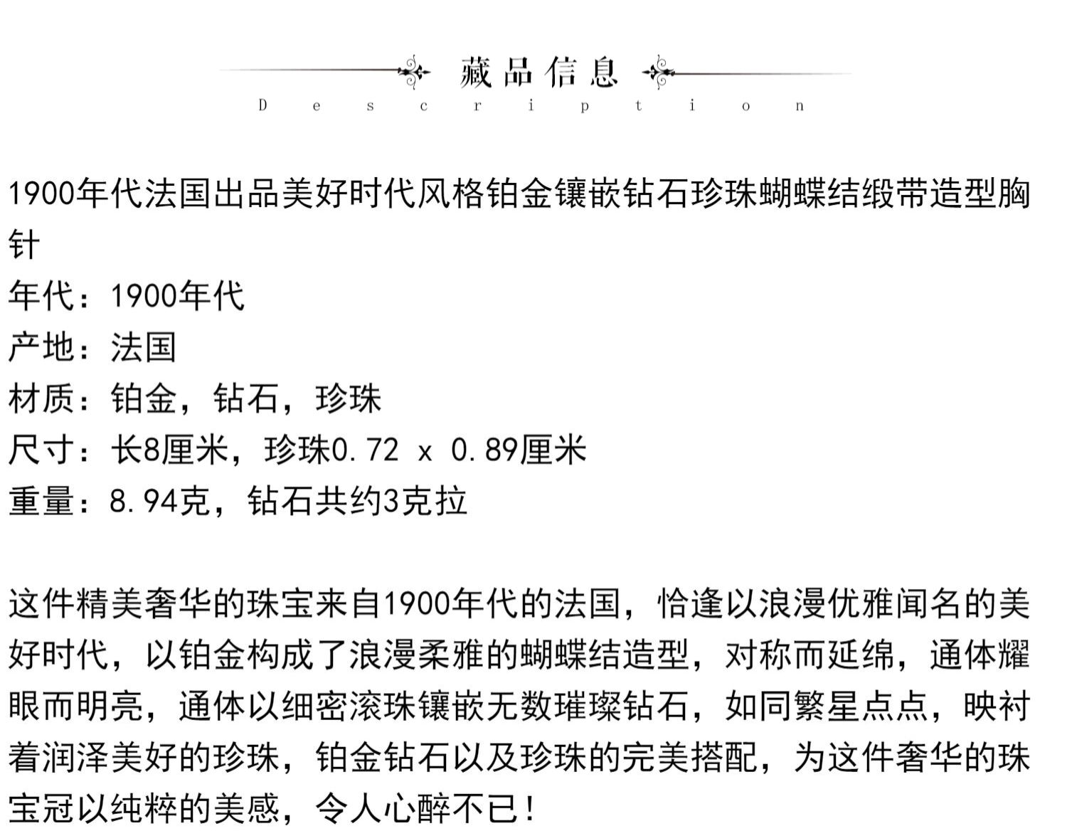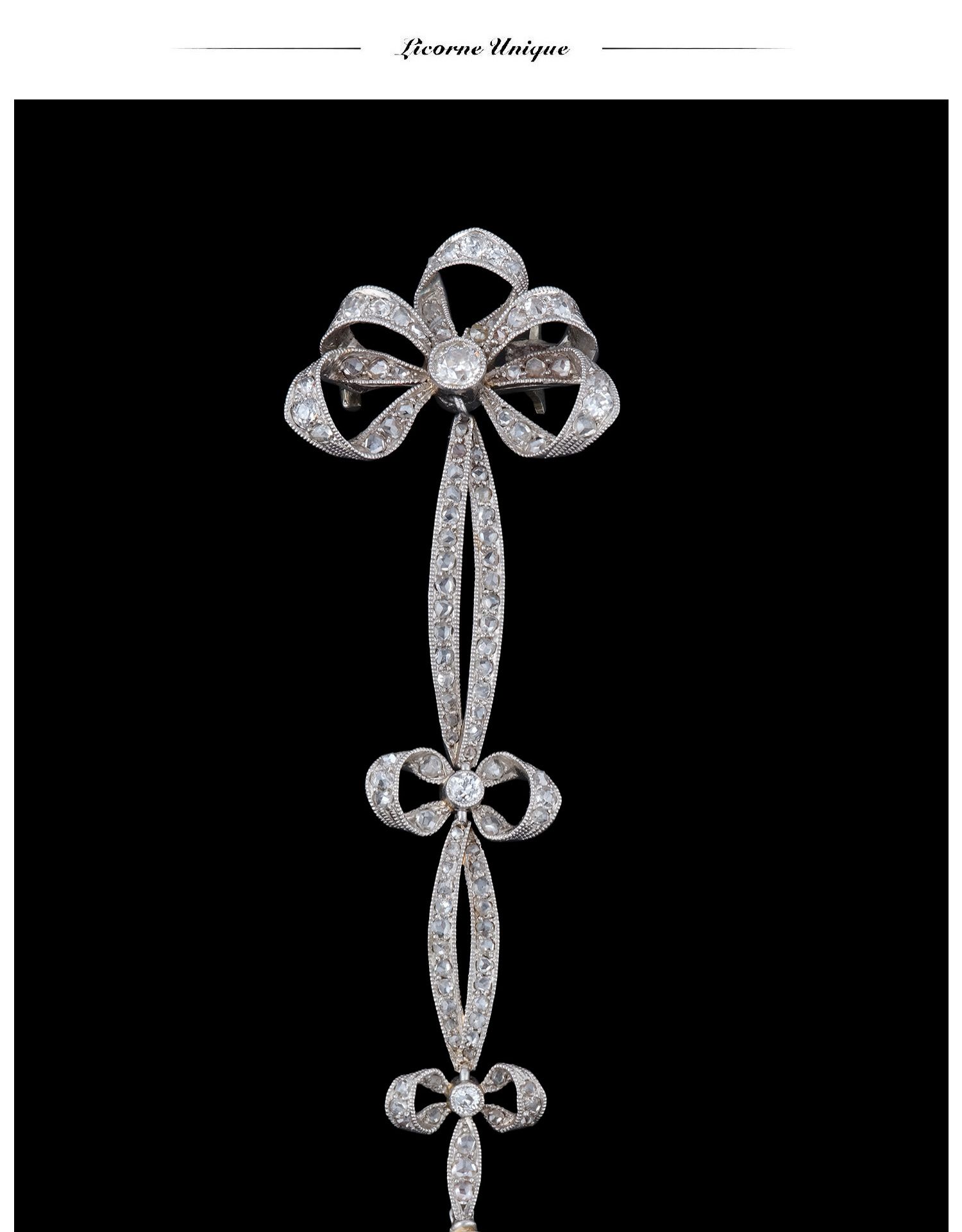 独角鹿西洋古董法国美好时代风格铂金镶钻石珍珠蝴蝶结缎带胸针