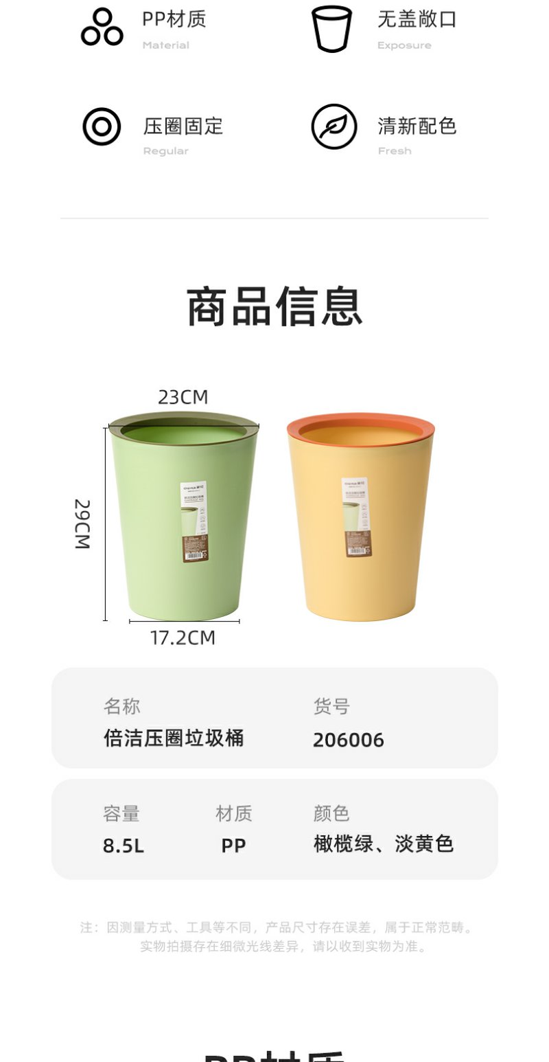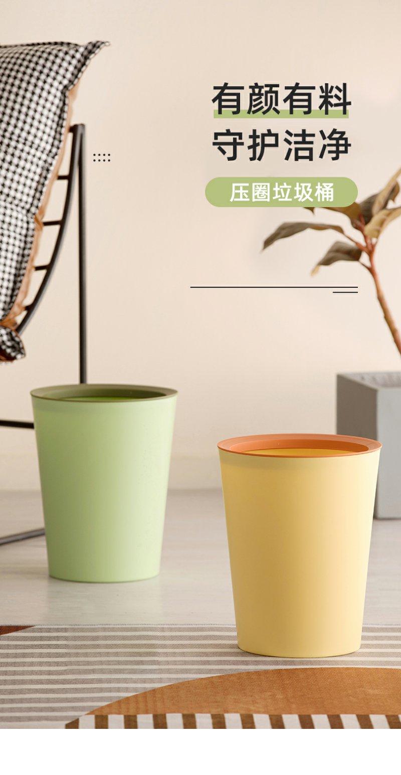 【茶花】倍洁压圈垃圾桶简约清新客厅厨房垃圾桶