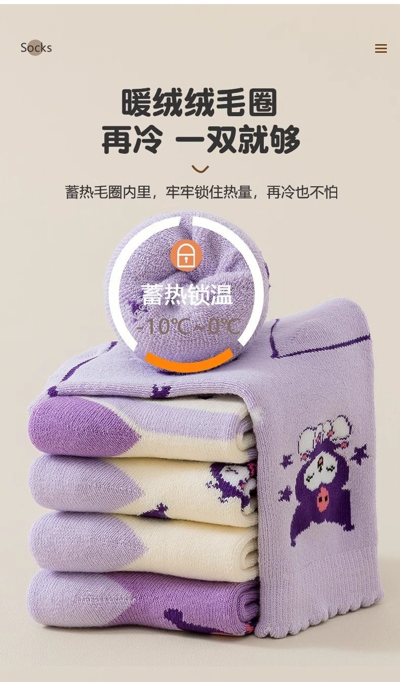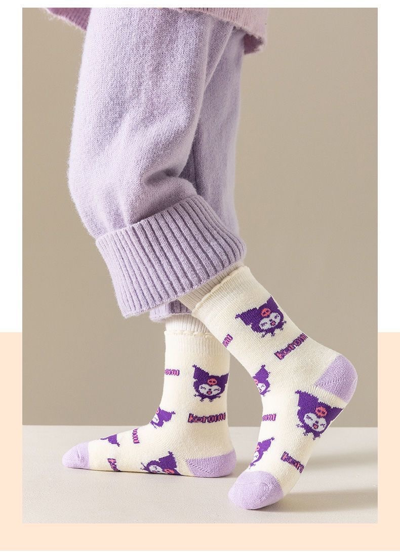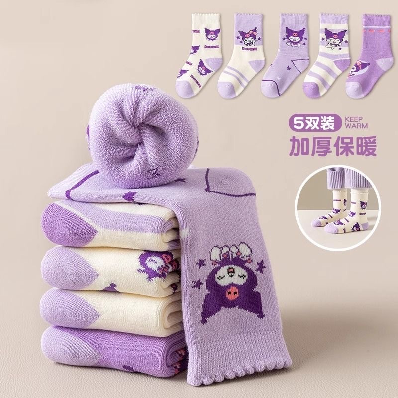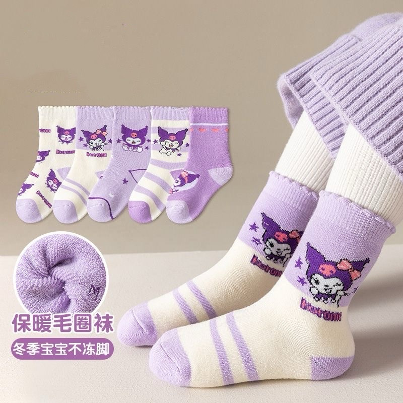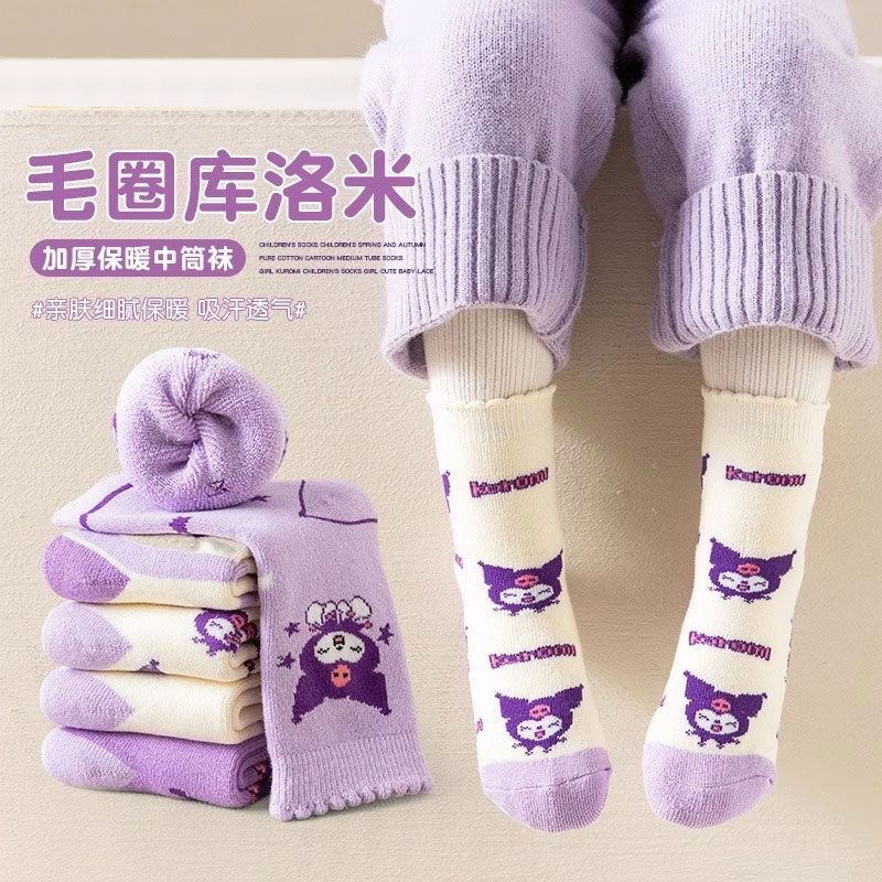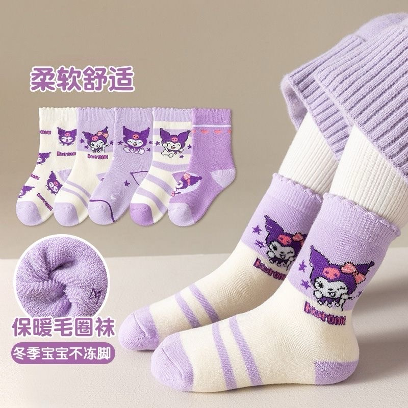 女宝库洛米卡通图案💃 没有那个小女孩不喜欢的❤️ 加厚毛圈 出门再也不用怕冻脚啦❄️