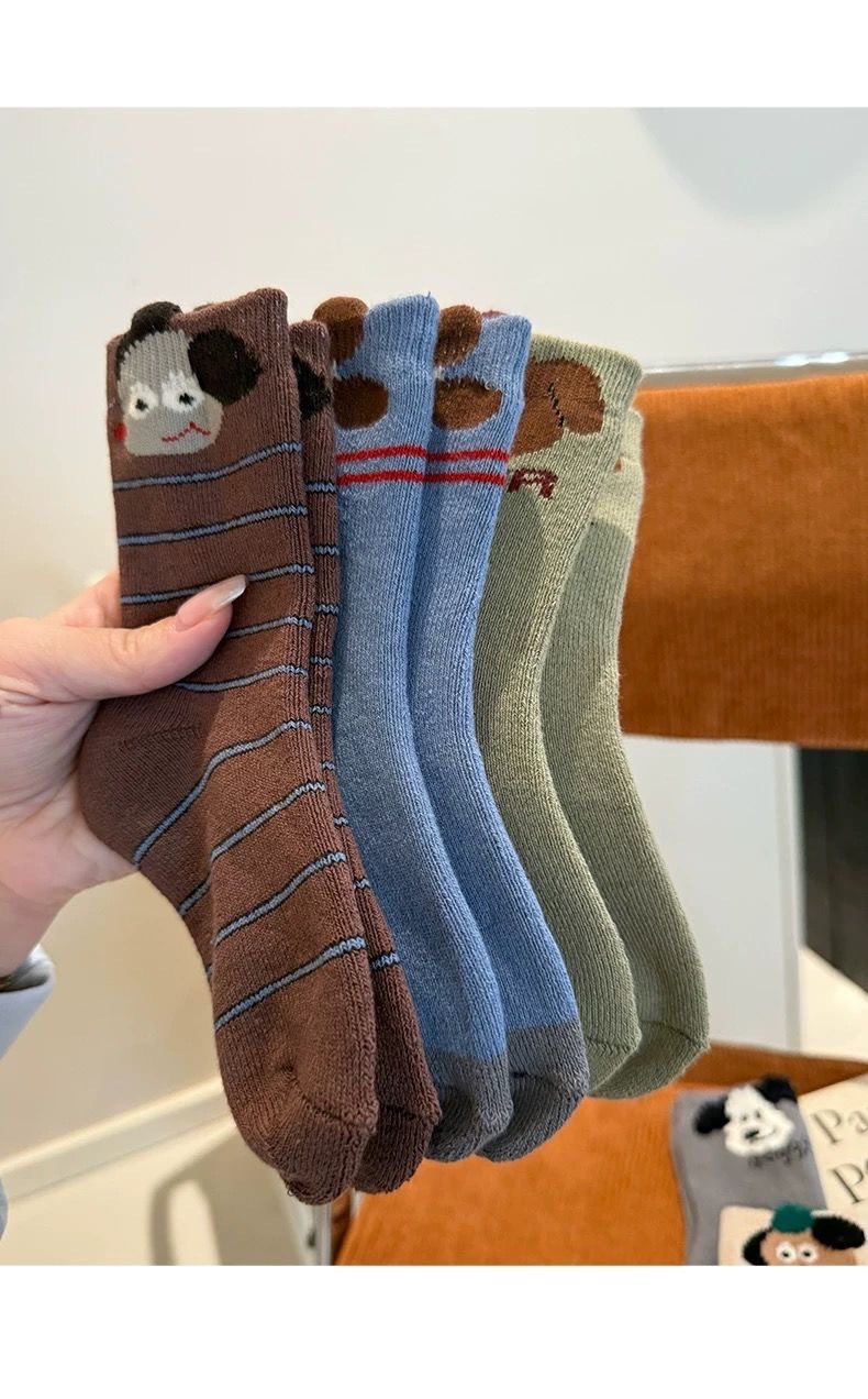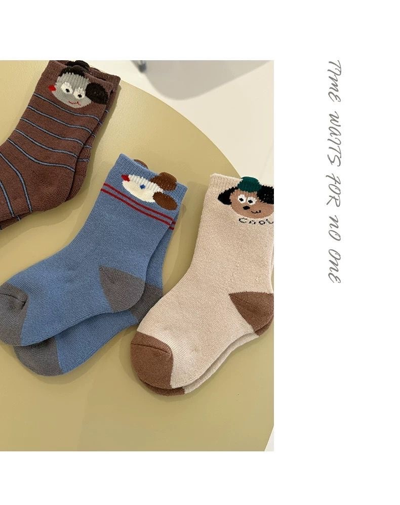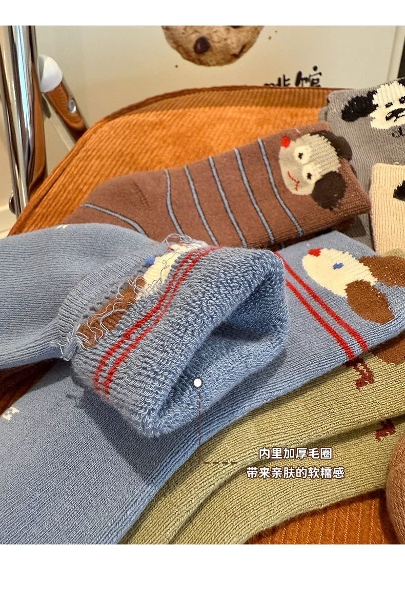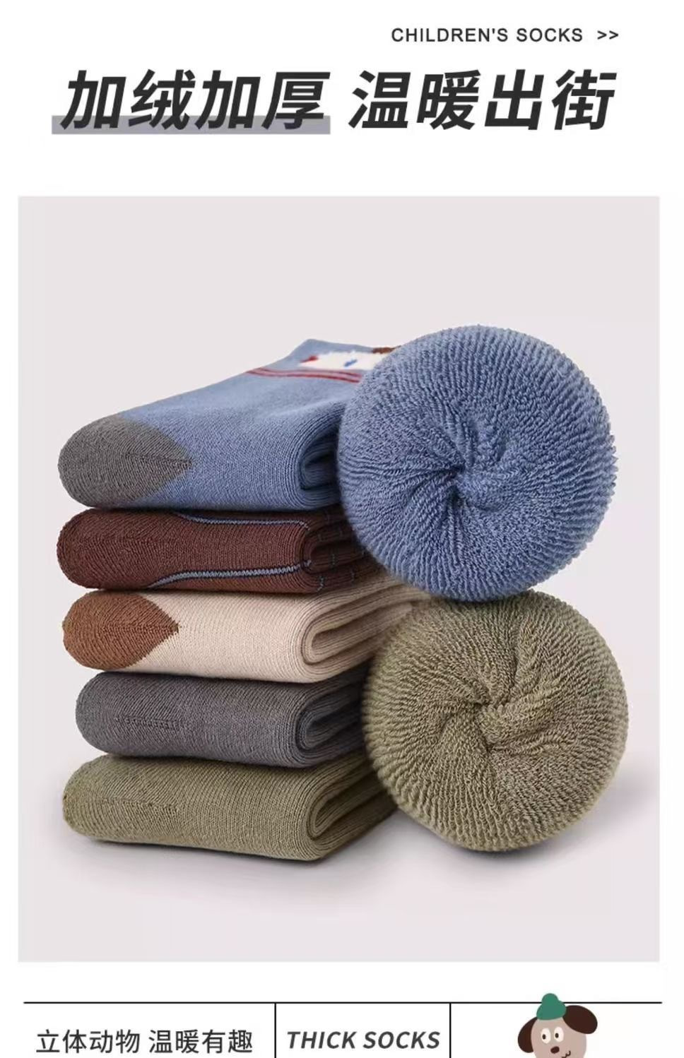 【商品名称】儿童加厚毛圈小狗袜子 【发货时效】72h内发货 【物流说明】西藏、新疆不发货,北上+1 【售后说明】1.商品非质量问题不支持退换;2.质量、缺件问题请签收后48小时内反馈,过期无法为您处理喔;3.快递送货外观有严重破损的请拒收。 特别提醒:物流异常问题,比如无信息更新、退件等,请于发货后1个月内反馈,超过1个月不做处理!