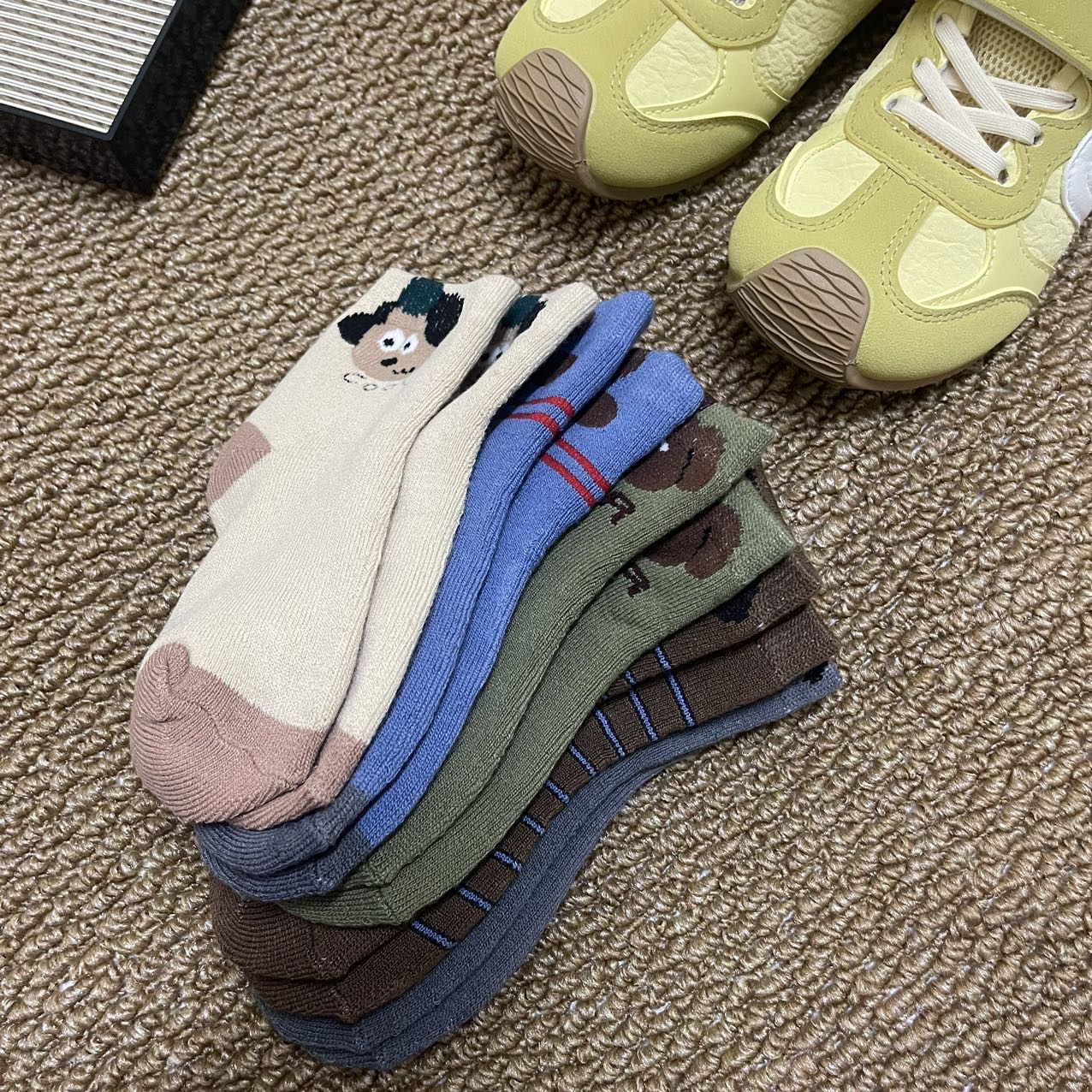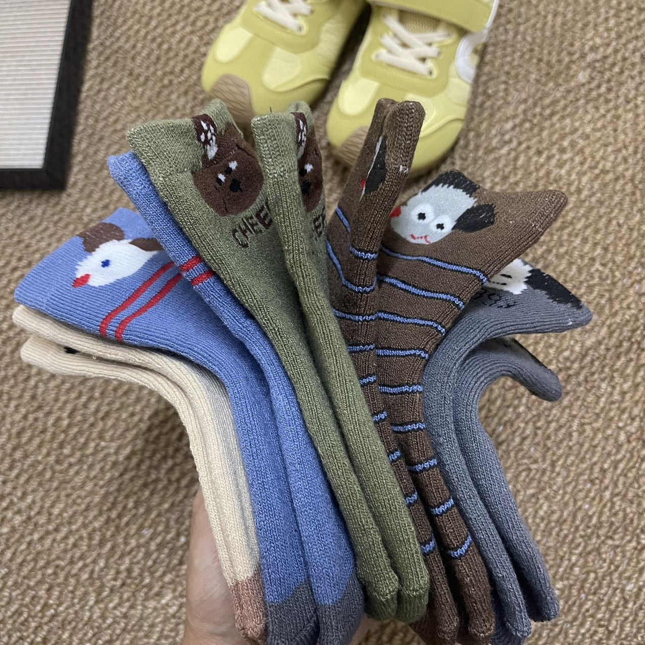 每双图案都好看👏 色彩斑斓,开启孩子👶🏻的搭配之旅 加厚的毛圈⭕,暖和一点的地方都可以直接踩地板了 品质超赞,超可爱的儿童毛圈棉袜 百搭可爱系,满足各种搭配!!