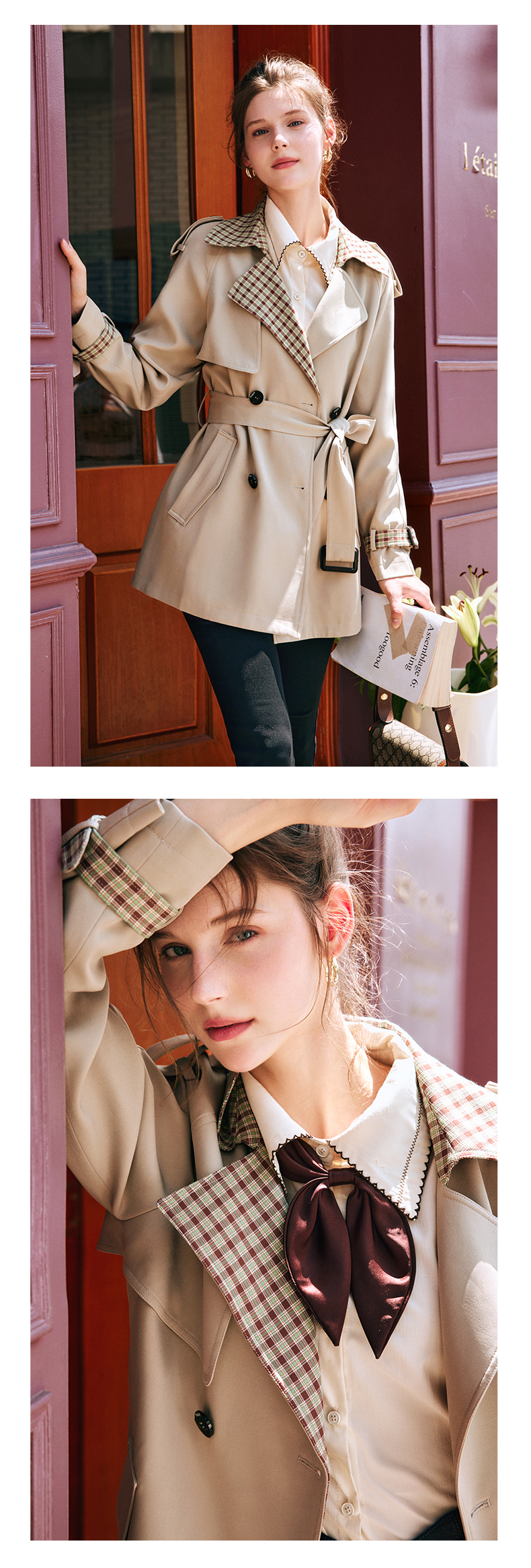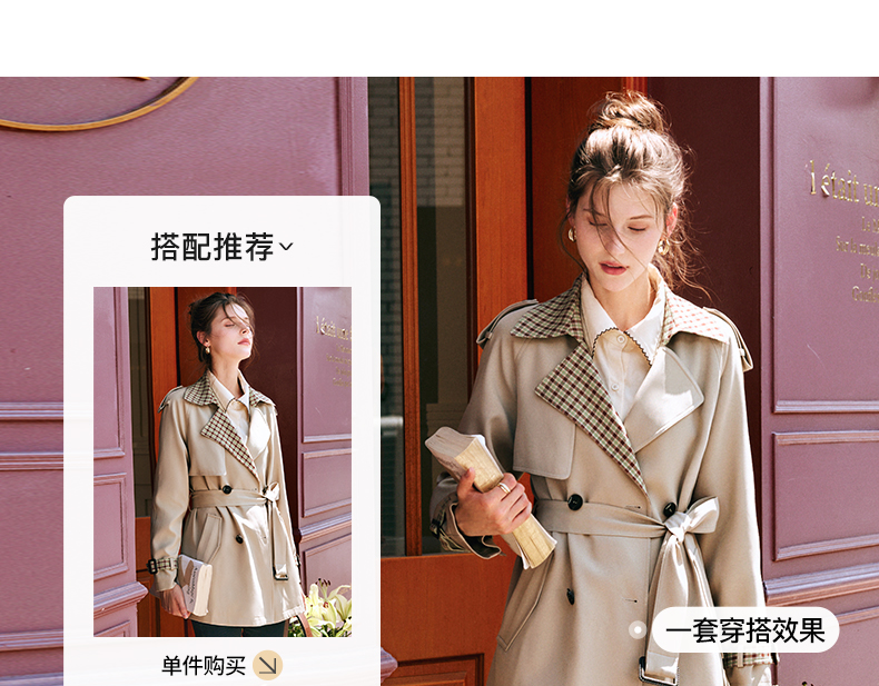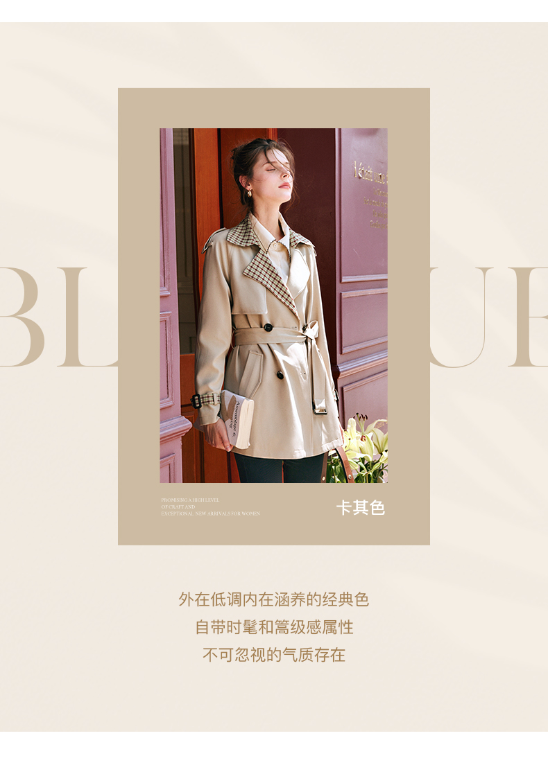 OLrain欧芮儿法式卡其色风衣女早秋2022年新款复古经典收腰外套