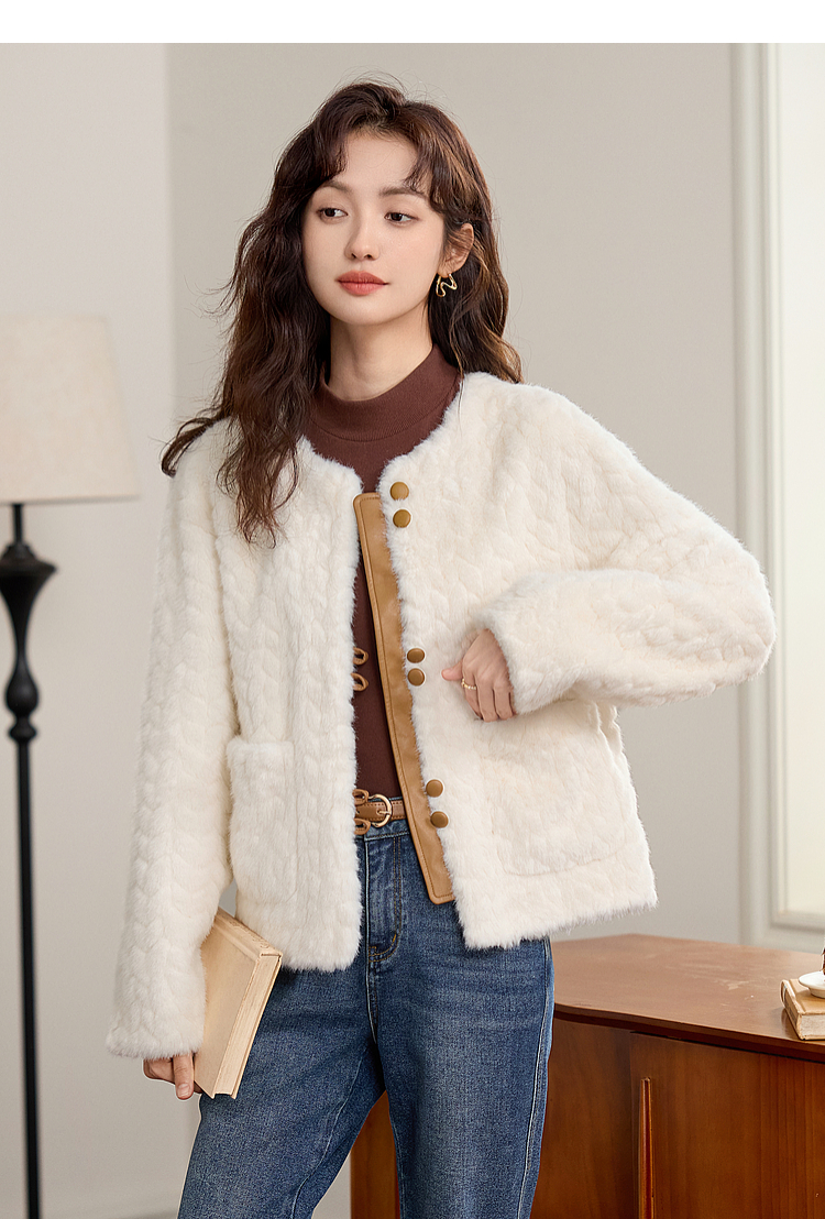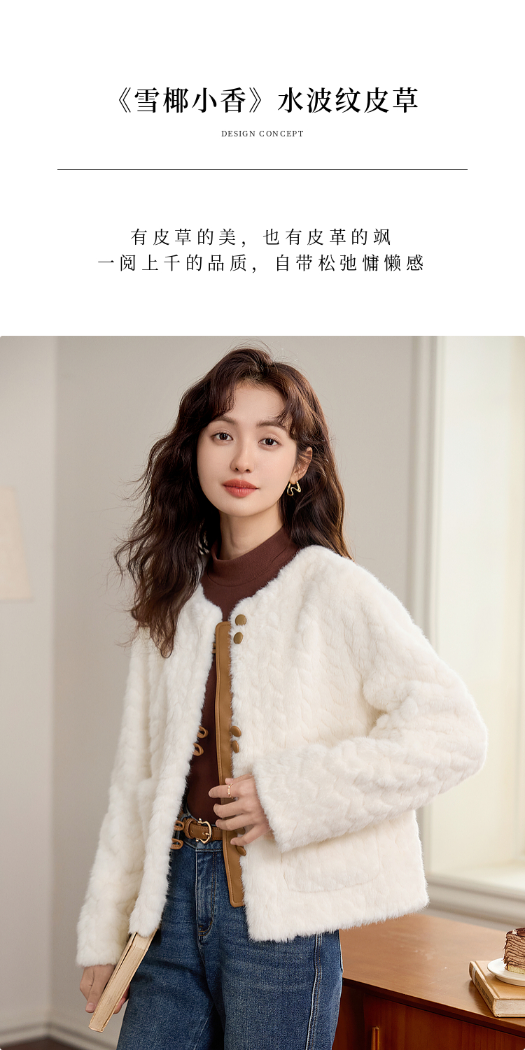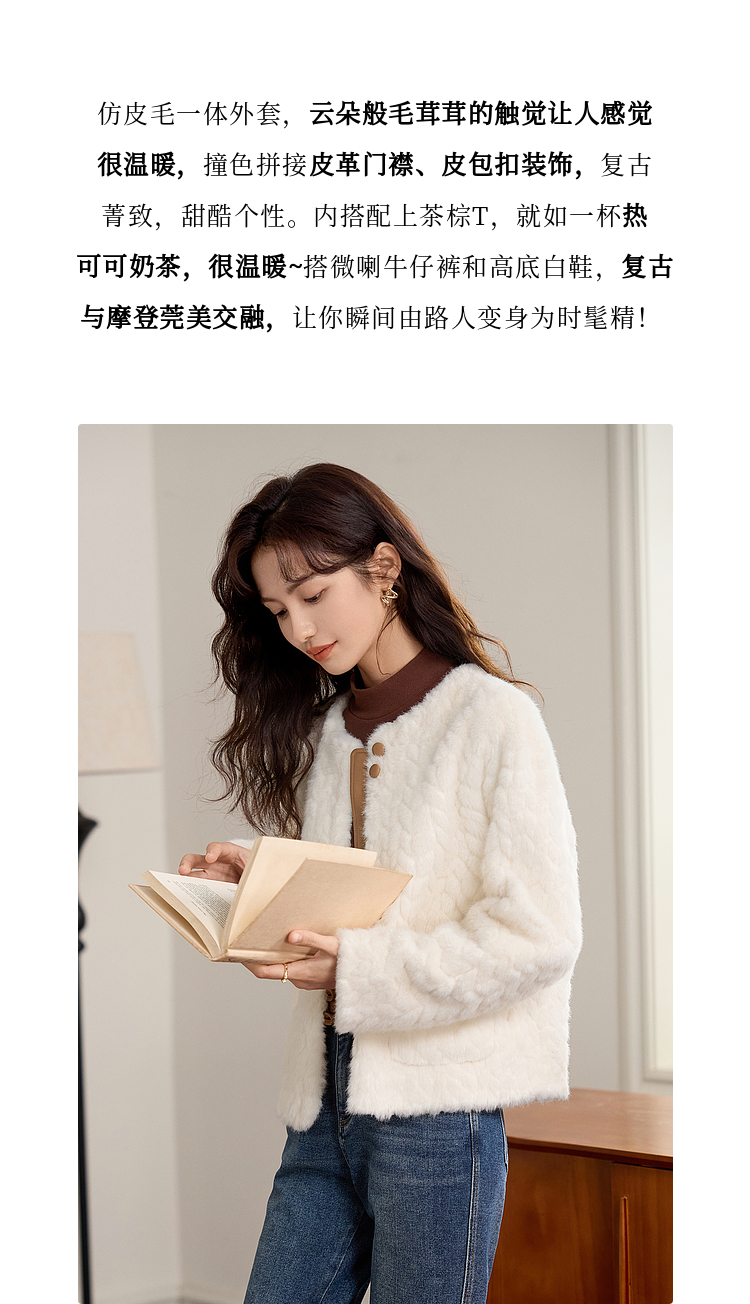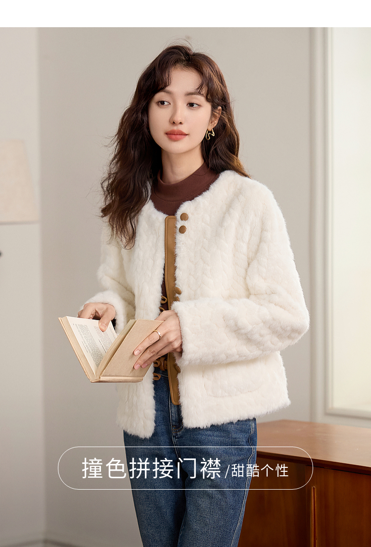 【年终特卖】熙世界水波纹仿水貂绒短外套冬季新款仿皮毛一体毛茸茸开衫上衣