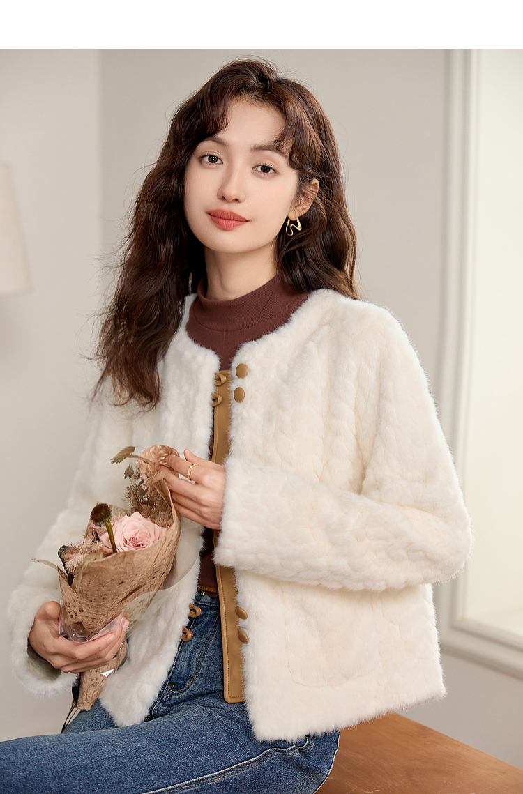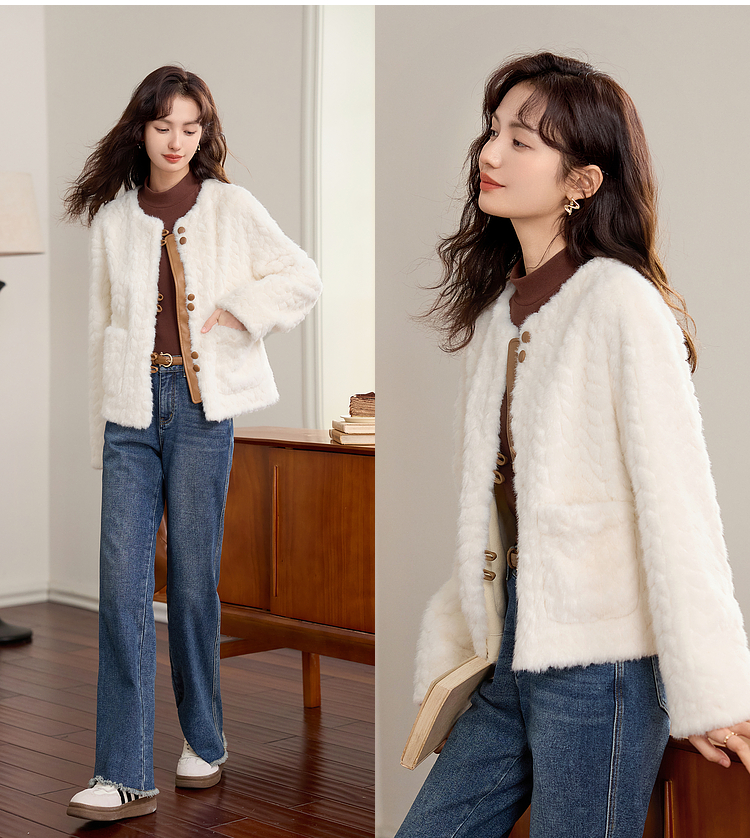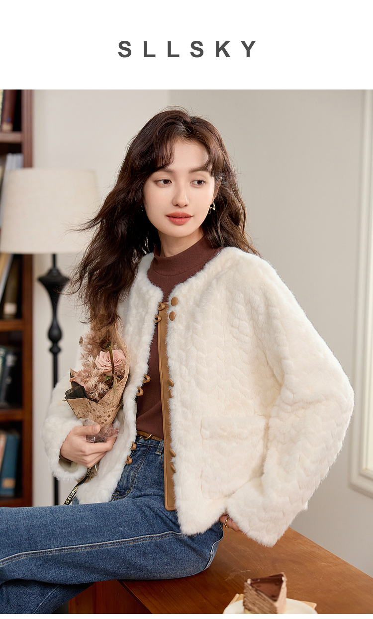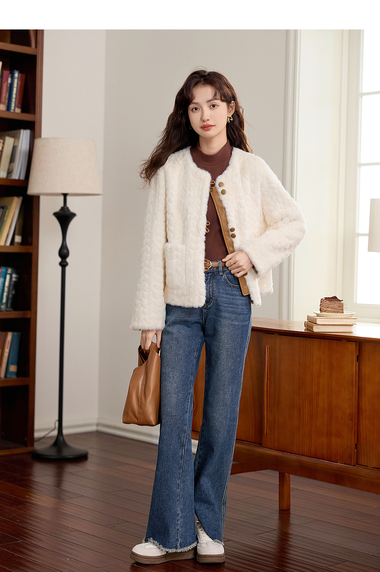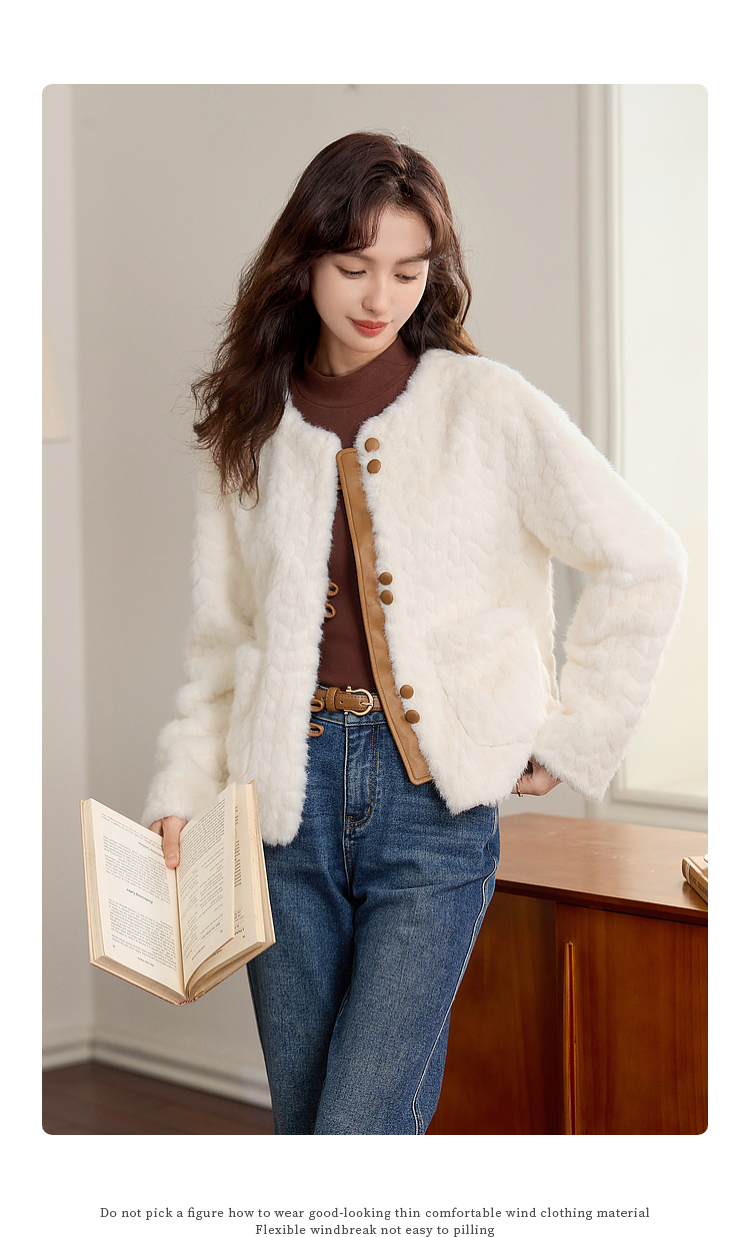 【年终特卖】熙世界水波纹仿水貂绒短外套冬季新款仿皮毛一体毛茸茸开衫上衣