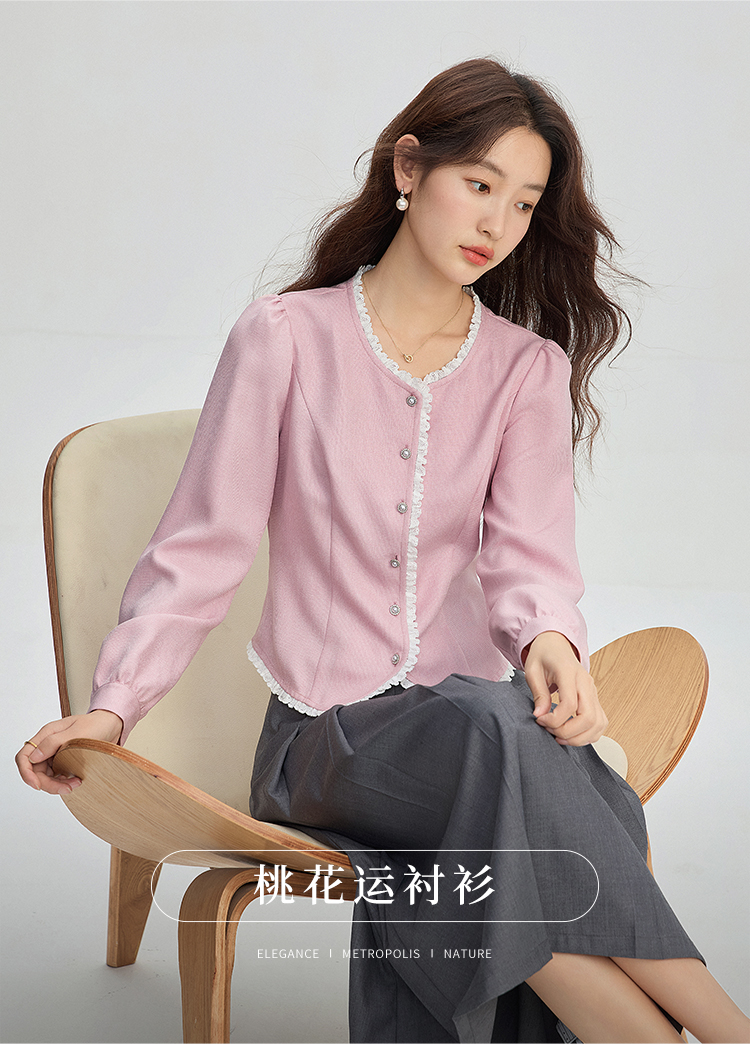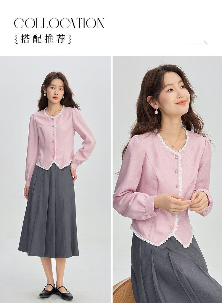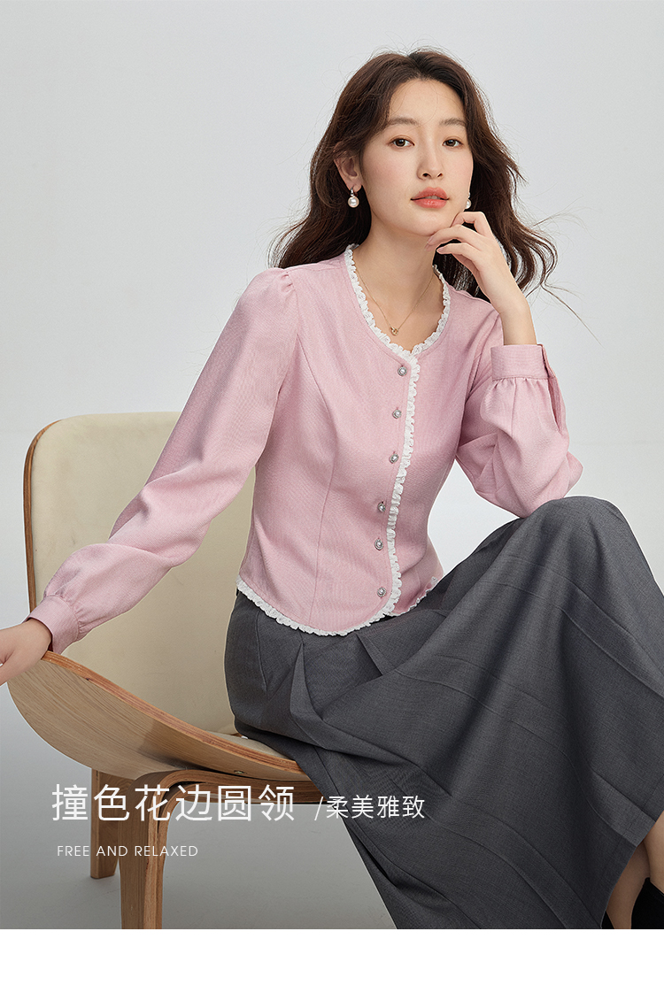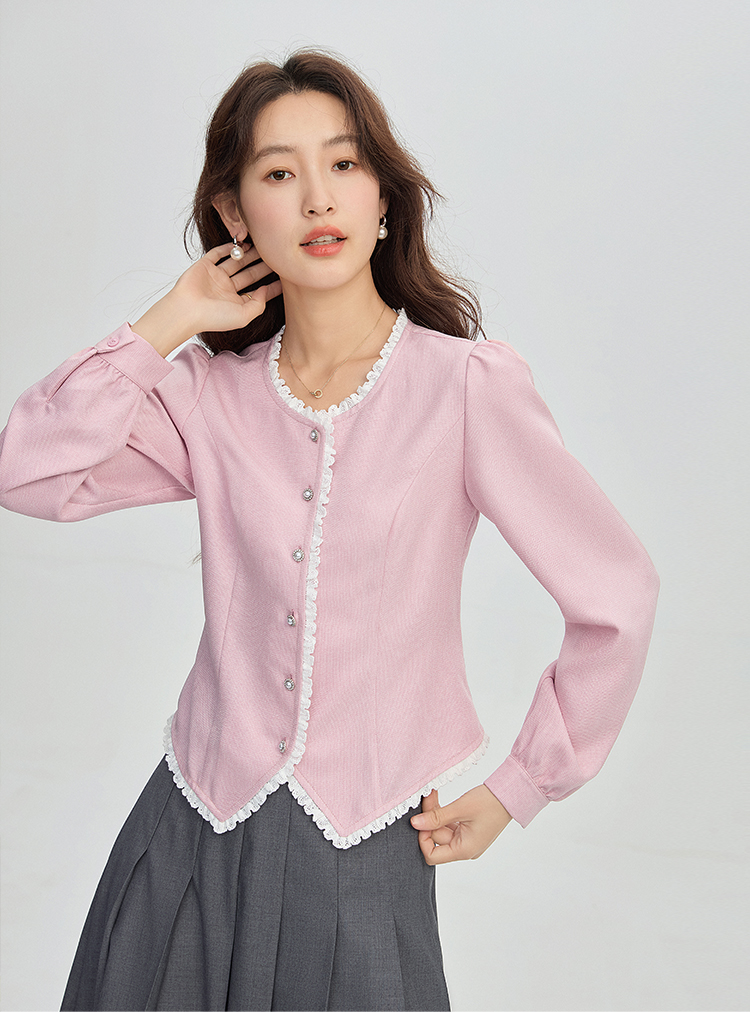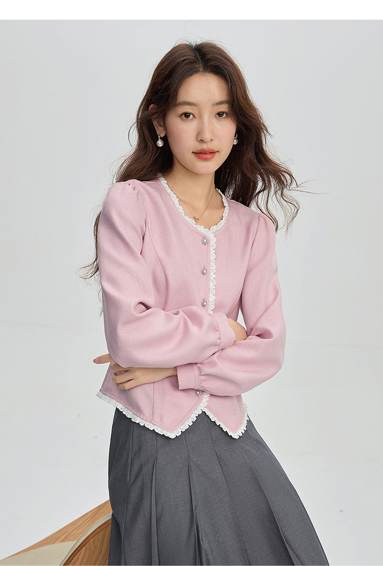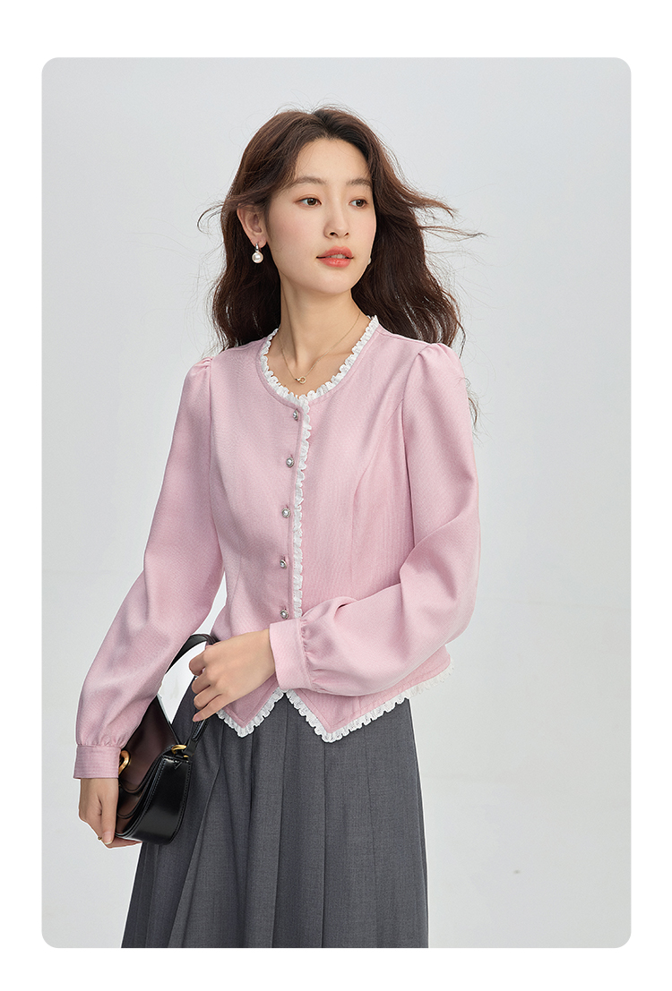 【年终特卖】熙世界气质优雅花边圆领小香风衬衫设计感开衫上衣2025秋季新款