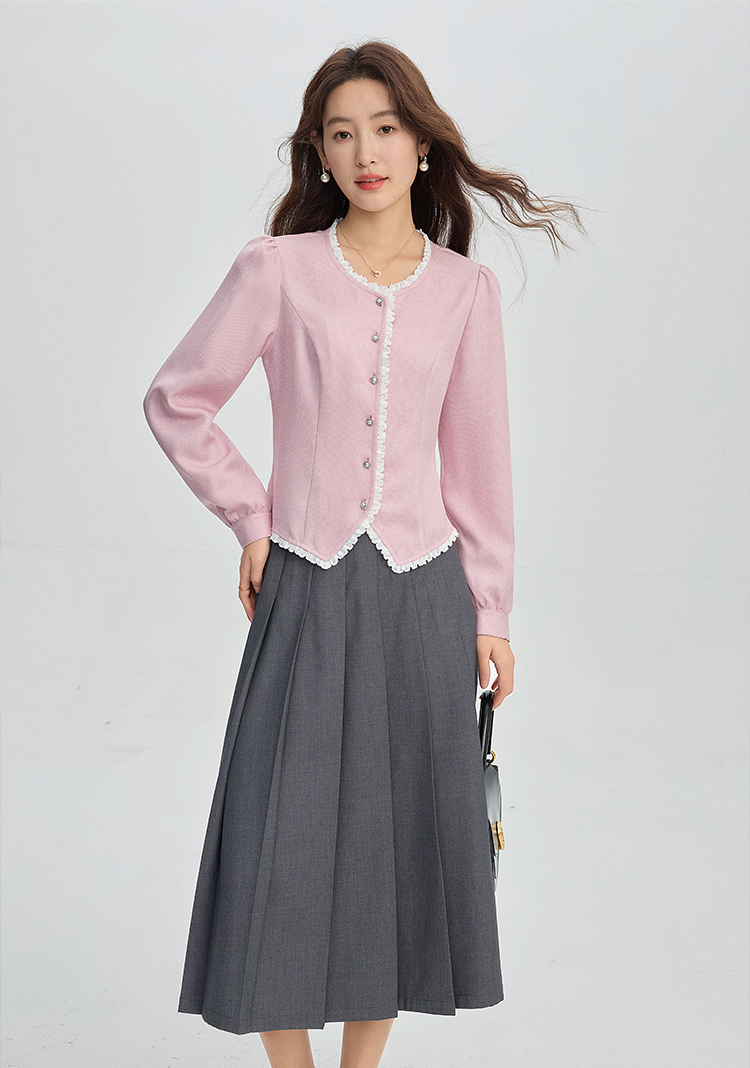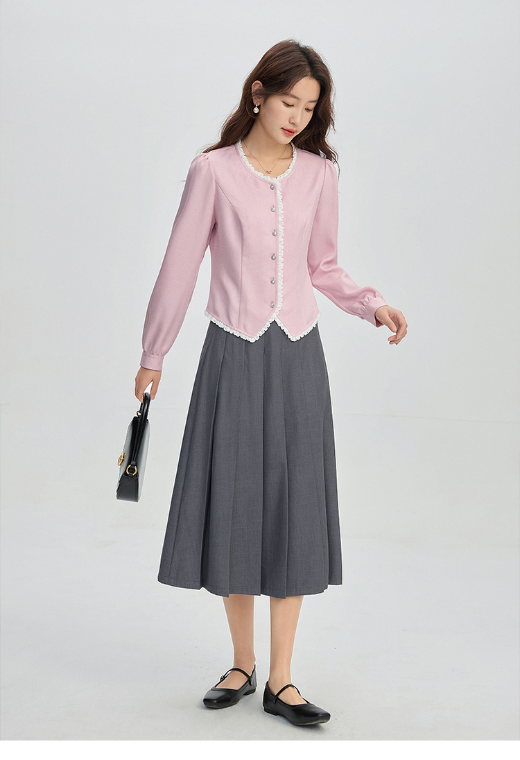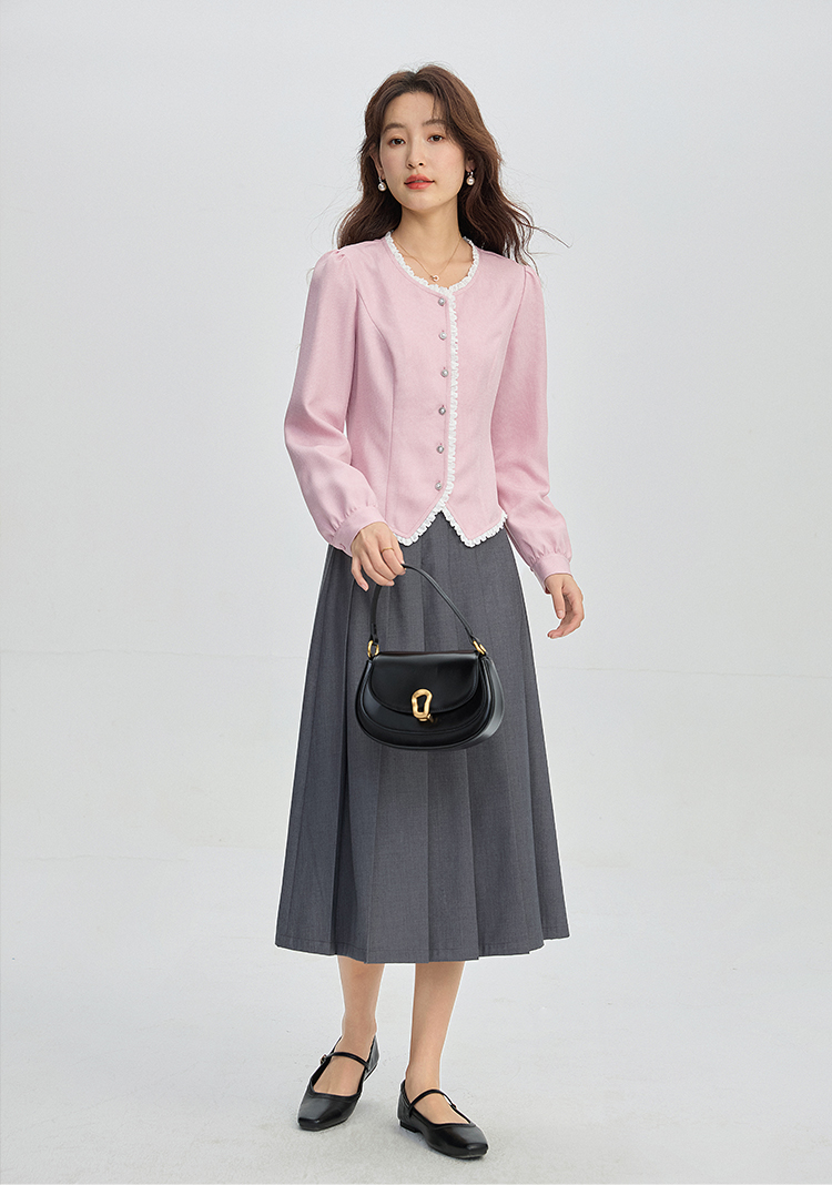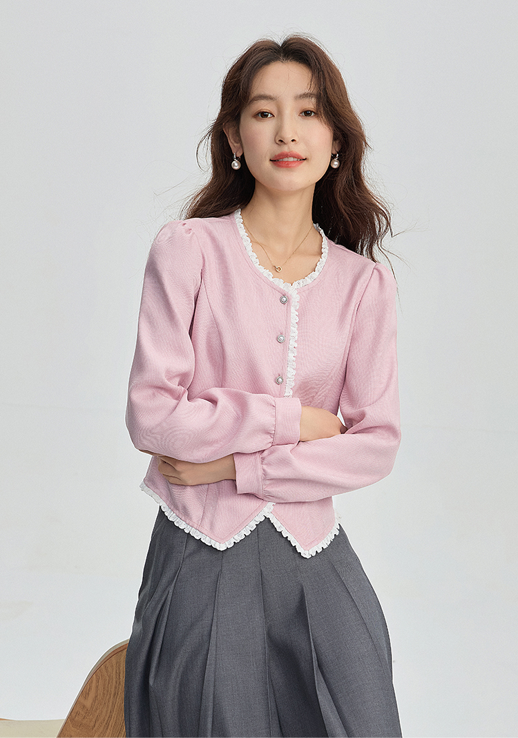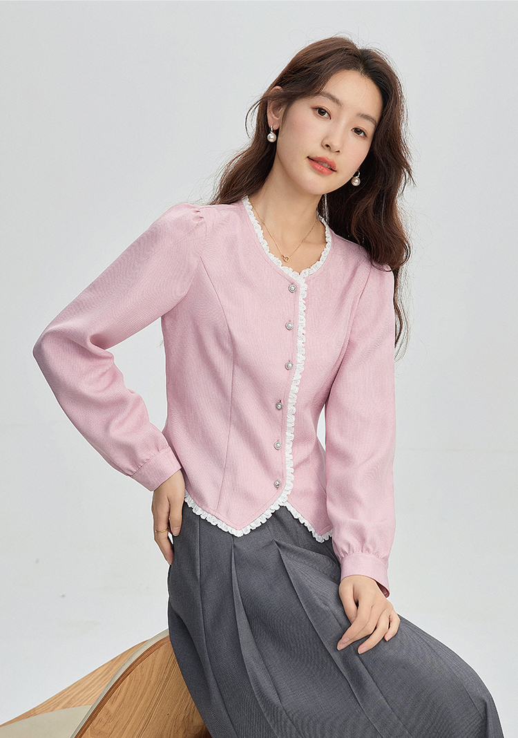 【年终特卖】熙世界气质优雅花边圆领小香风衬衫设计感开衫上衣2025秋季新款