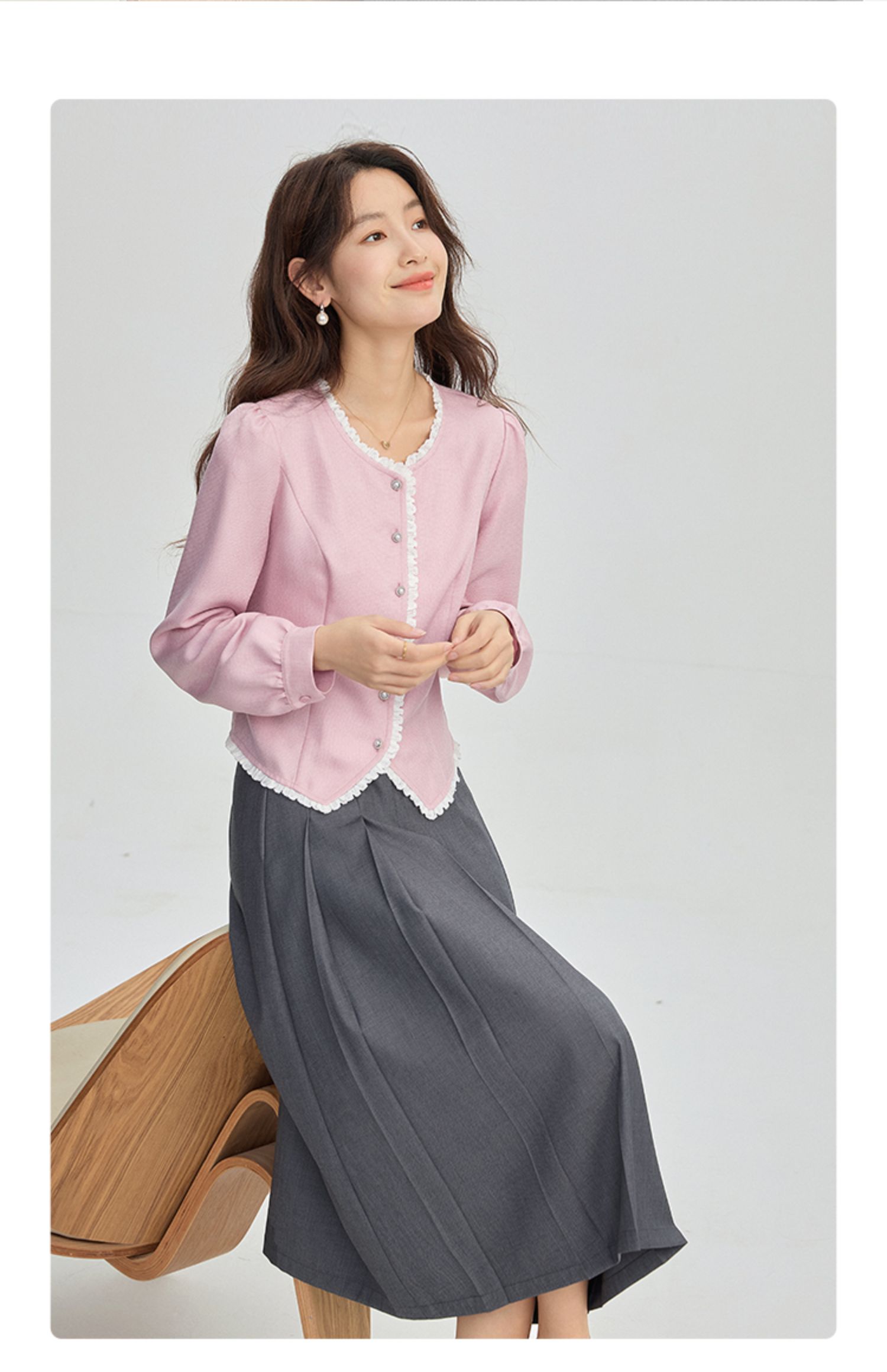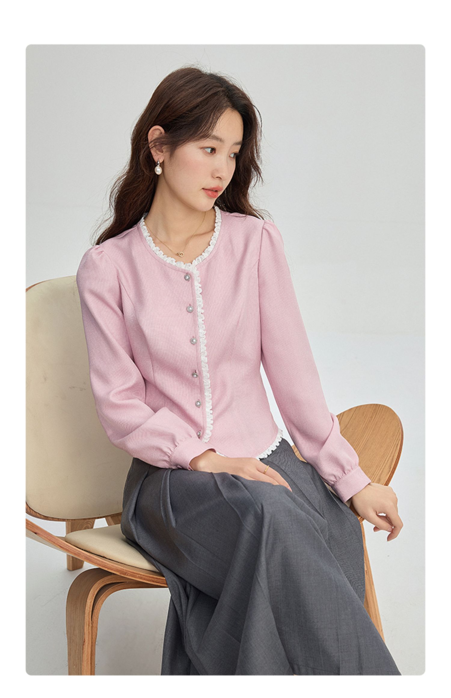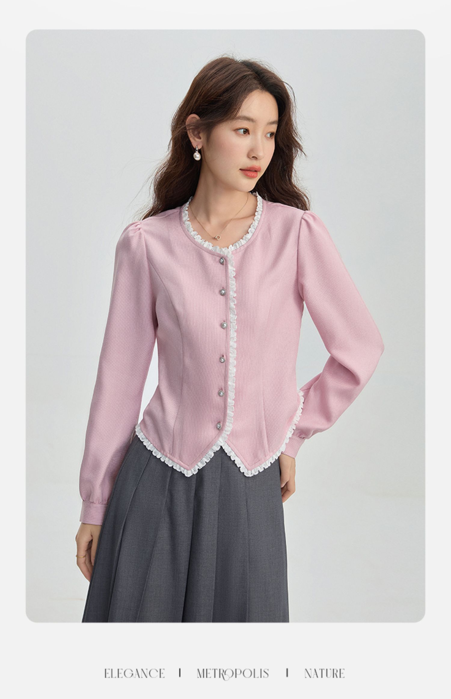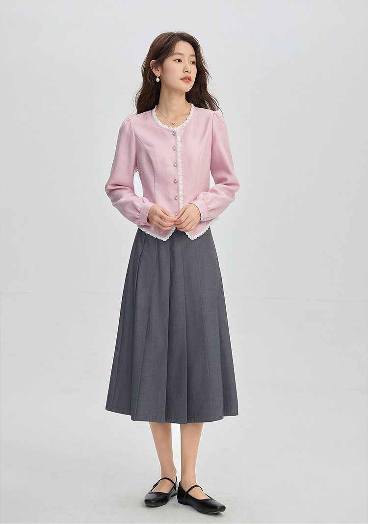 【年终特卖】熙世界气质优雅花边圆领小香风衬衫设计感开衫上衣2025秋季新款