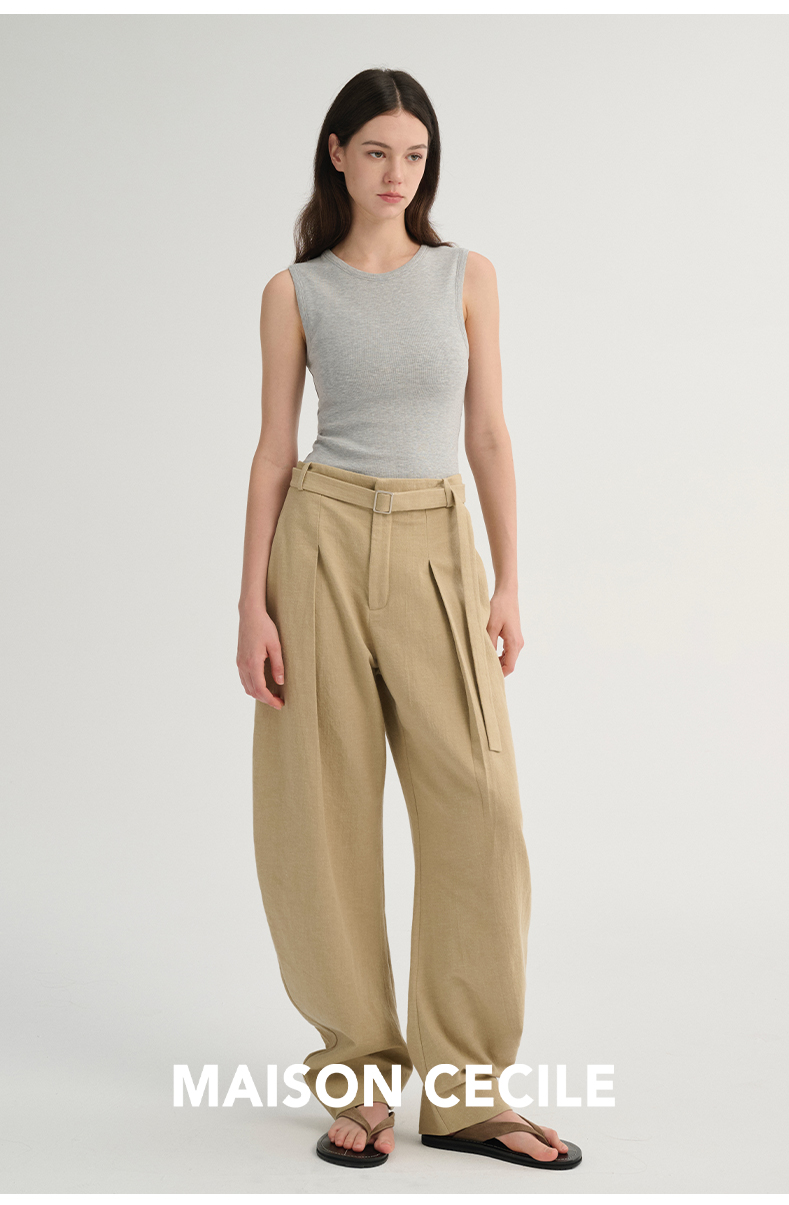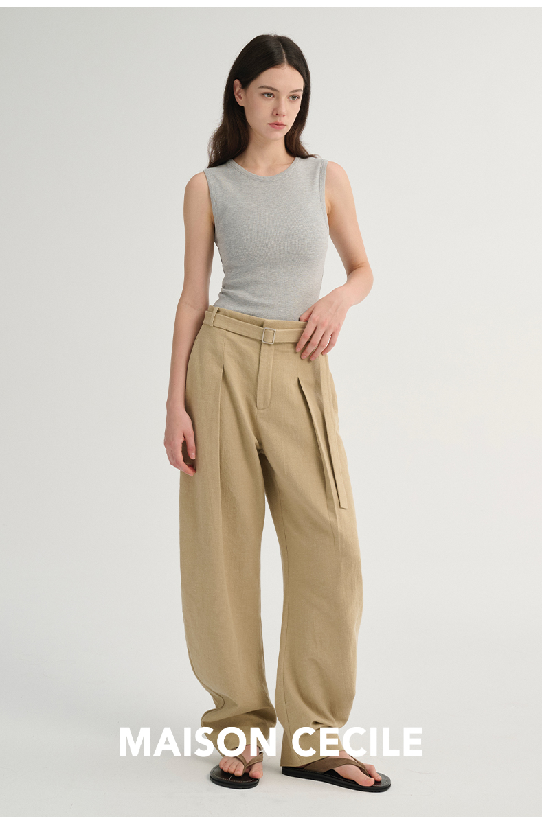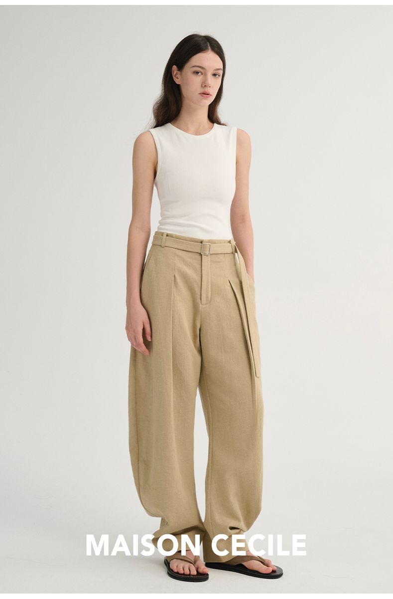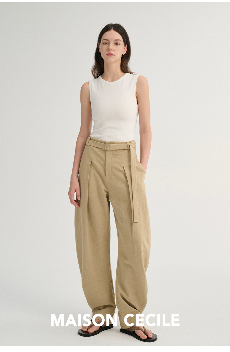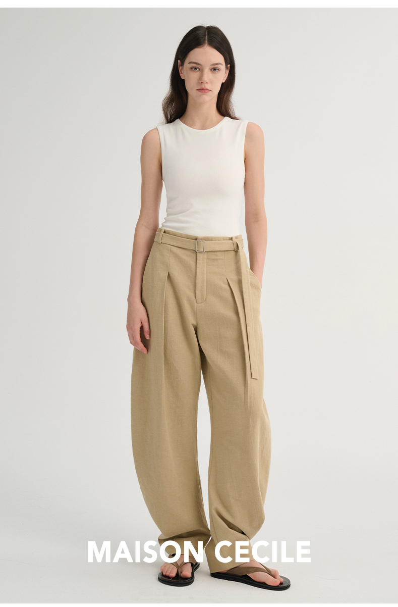 MAISON CECILE 三色/松弛感亚麻肌理遮肉显瘦弧形弯刀裤
