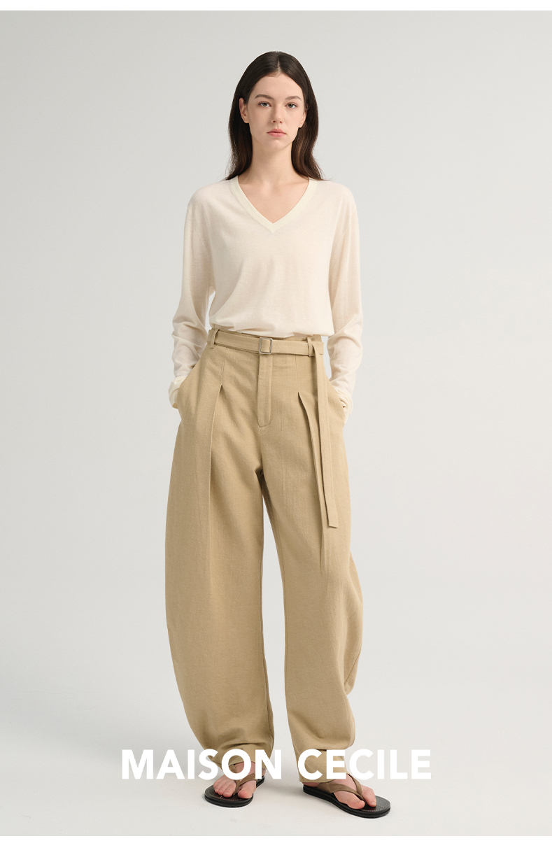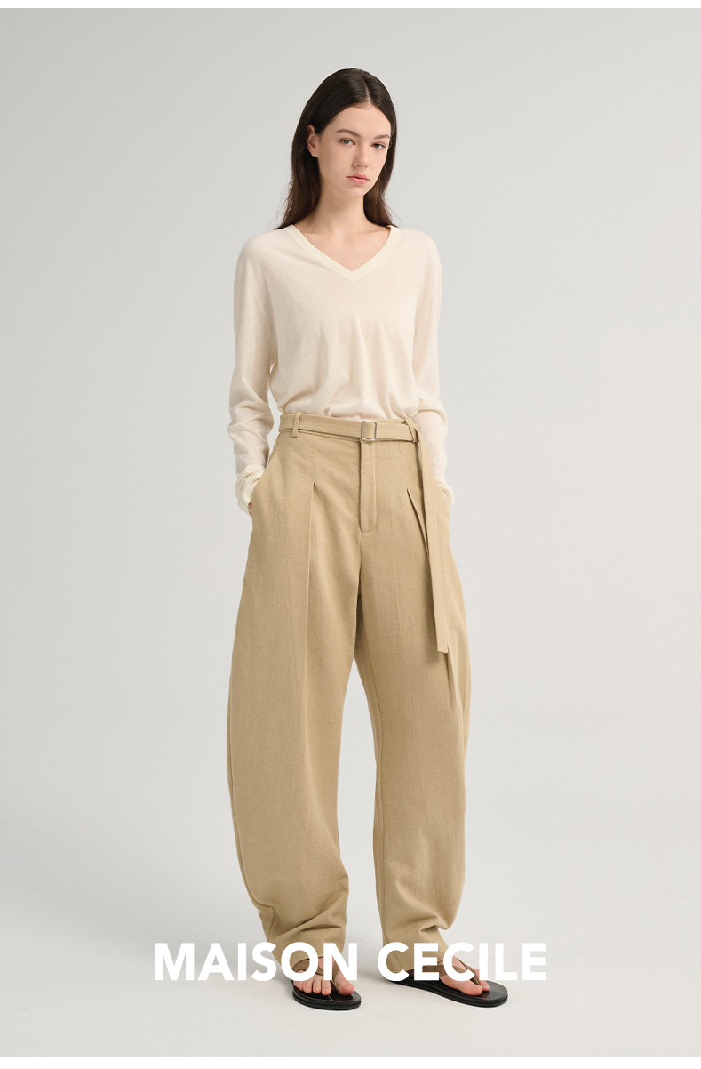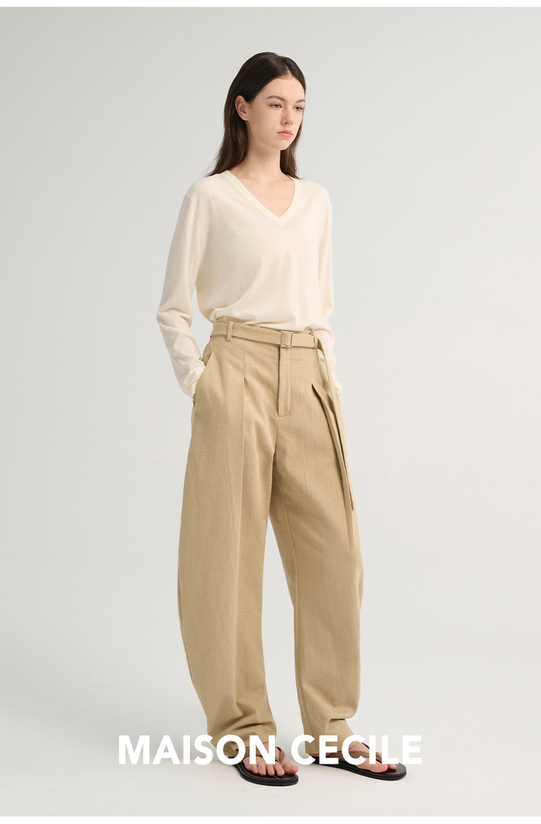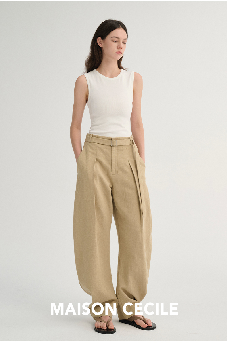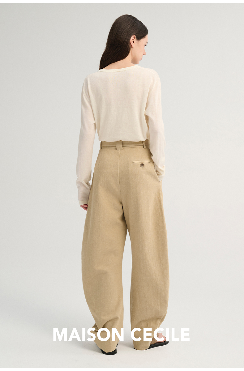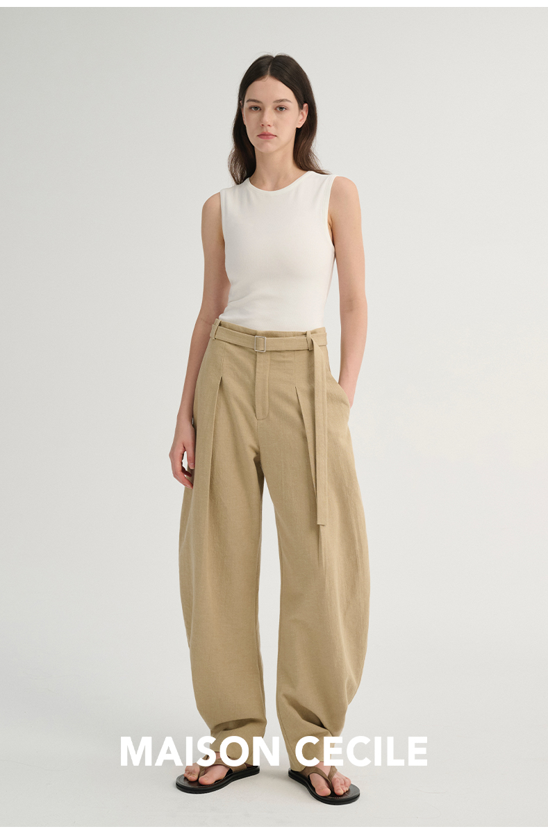 MAISON CECILE 三色/松弛感亚麻肌理遮肉显瘦弧形弯刀裤