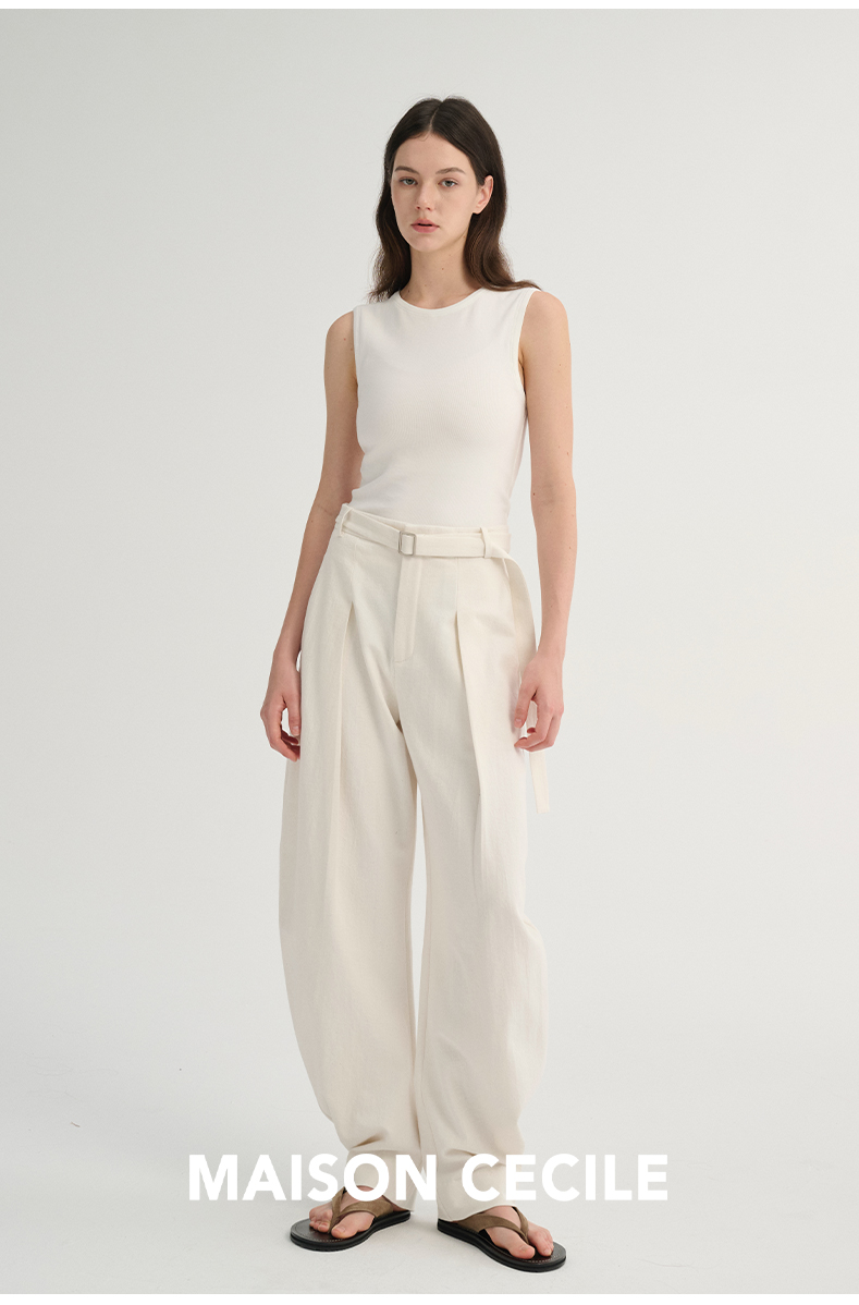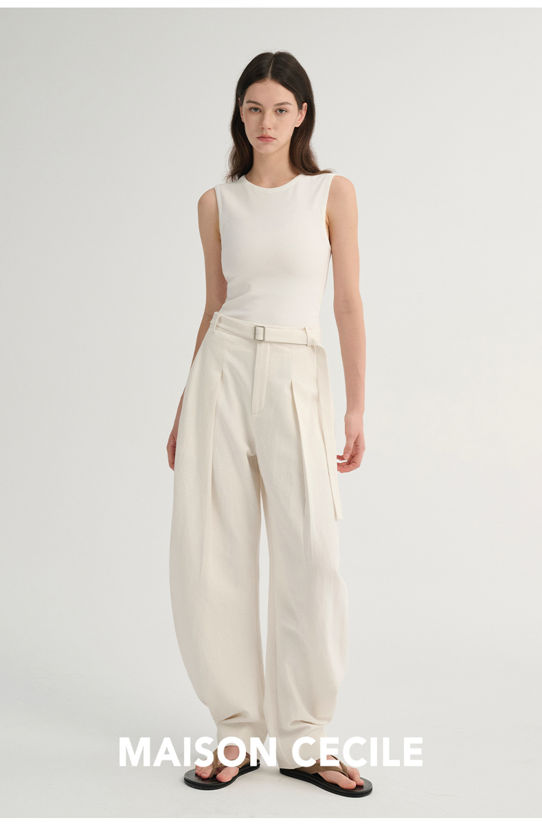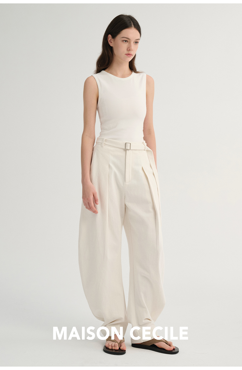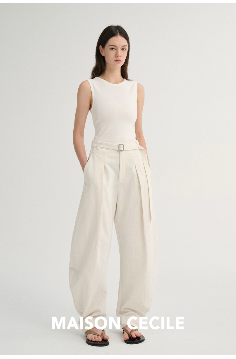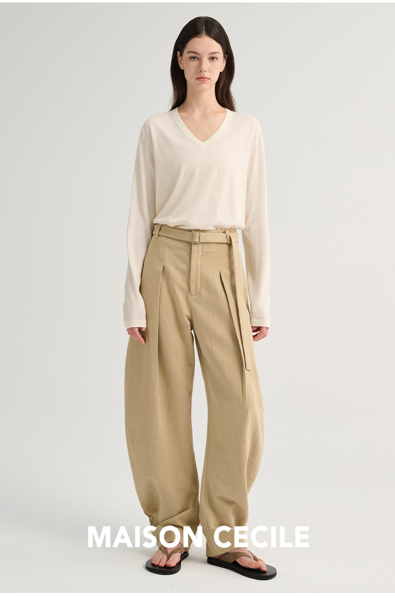 MAISON CECILE 三色/松弛感亚麻肌理遮肉显瘦弧形弯刀裤