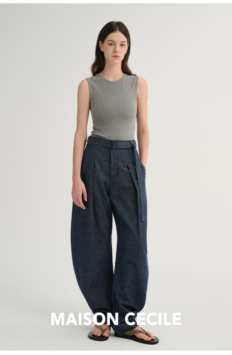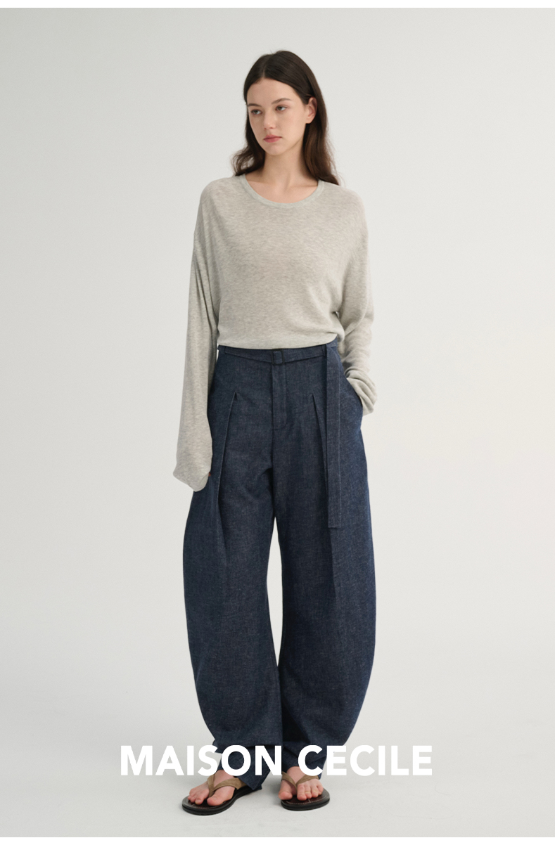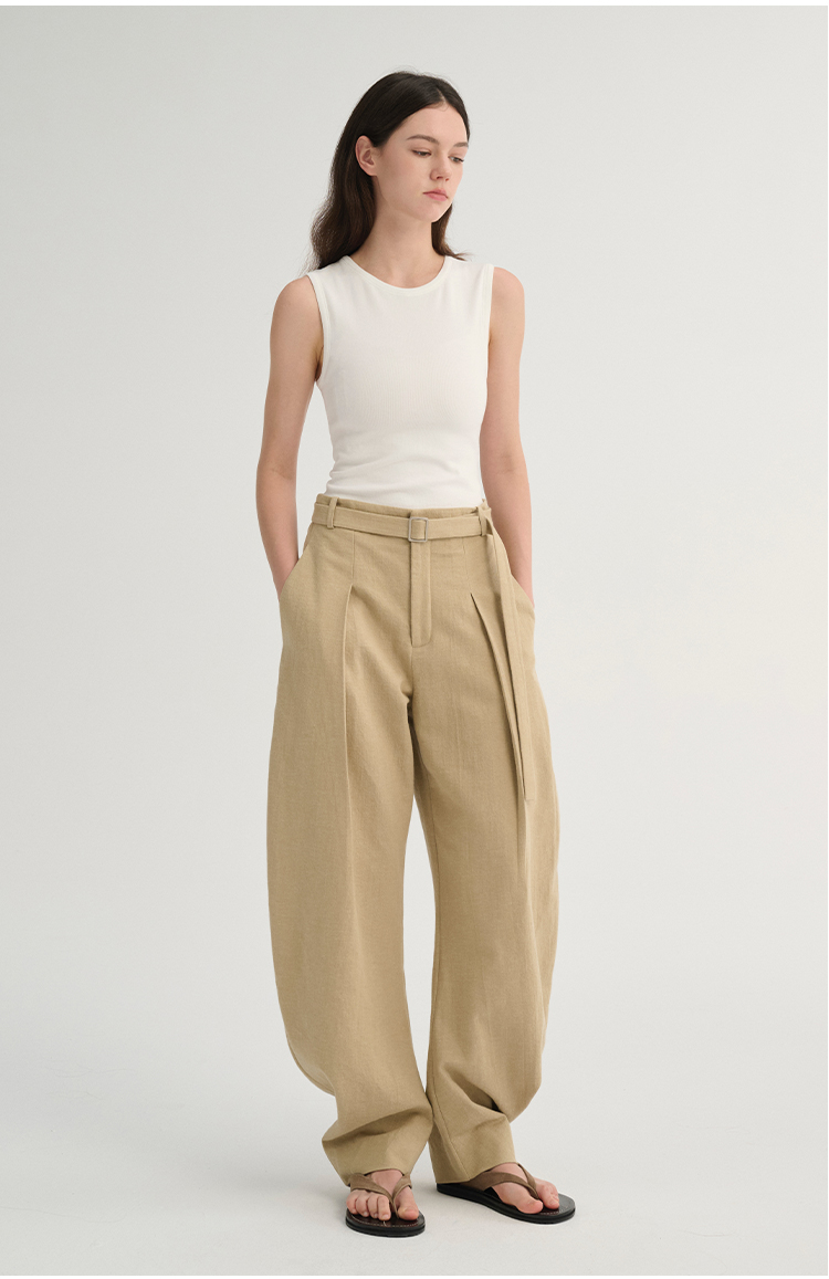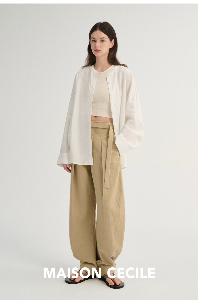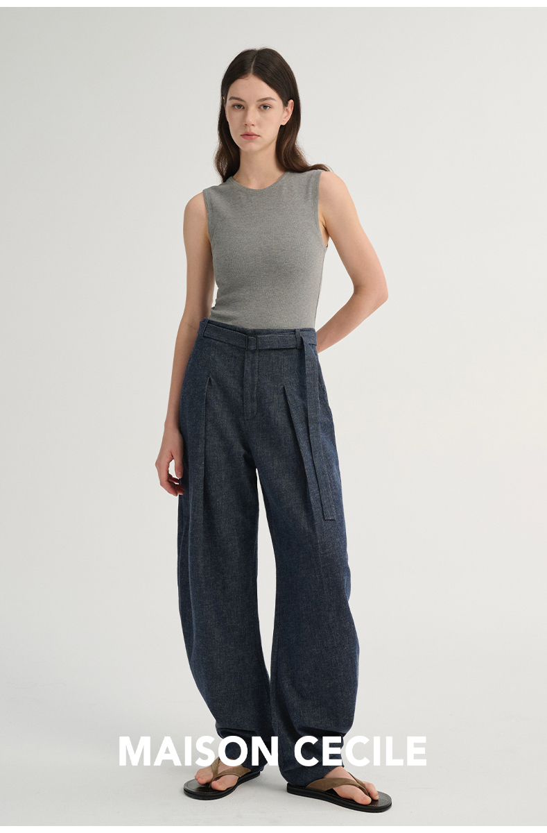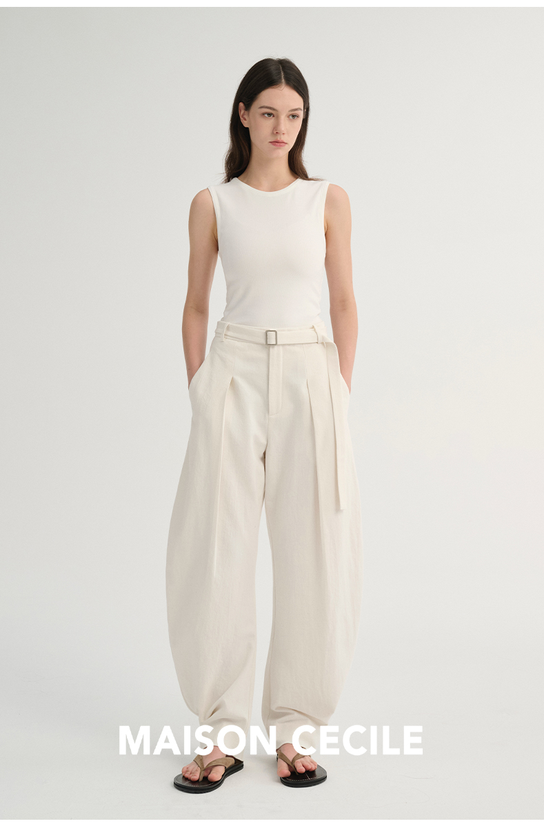 MAISON CECILE 三色/松弛感亚麻肌理遮肉显瘦弧形弯刀裤