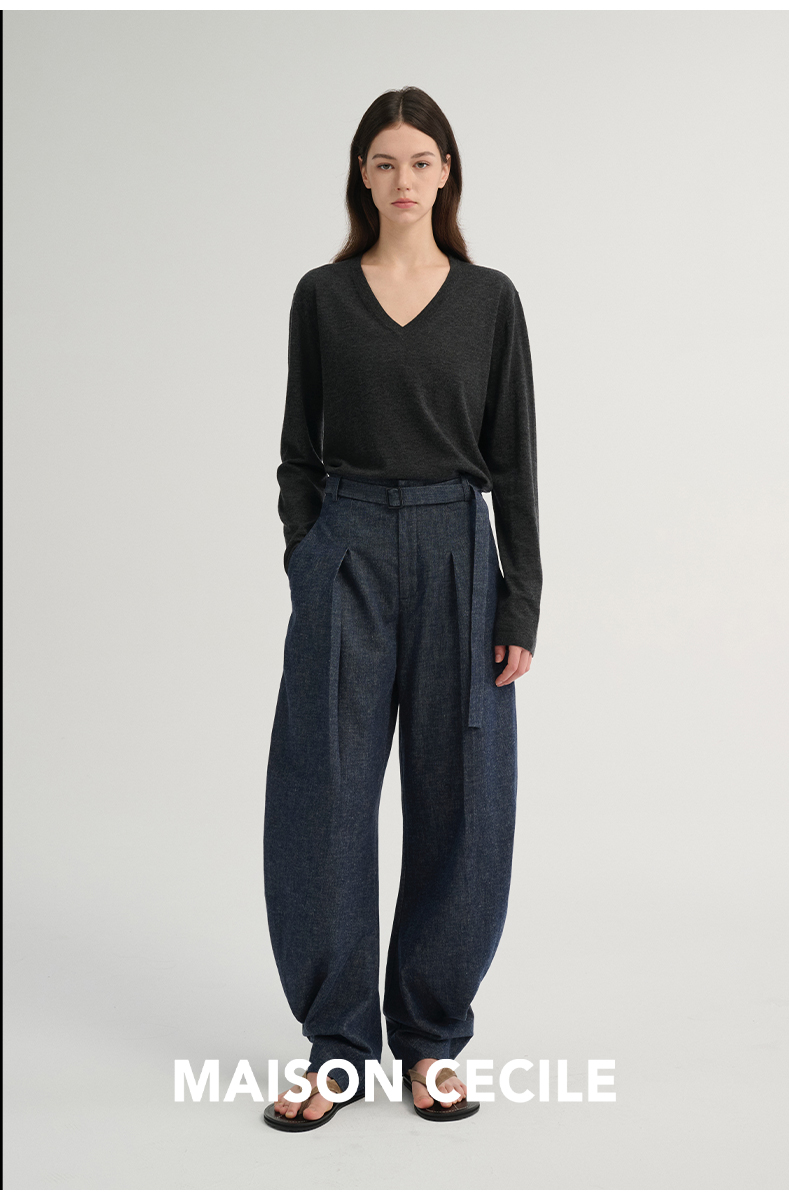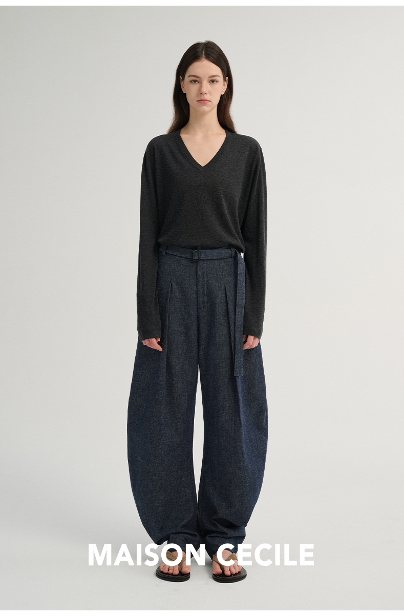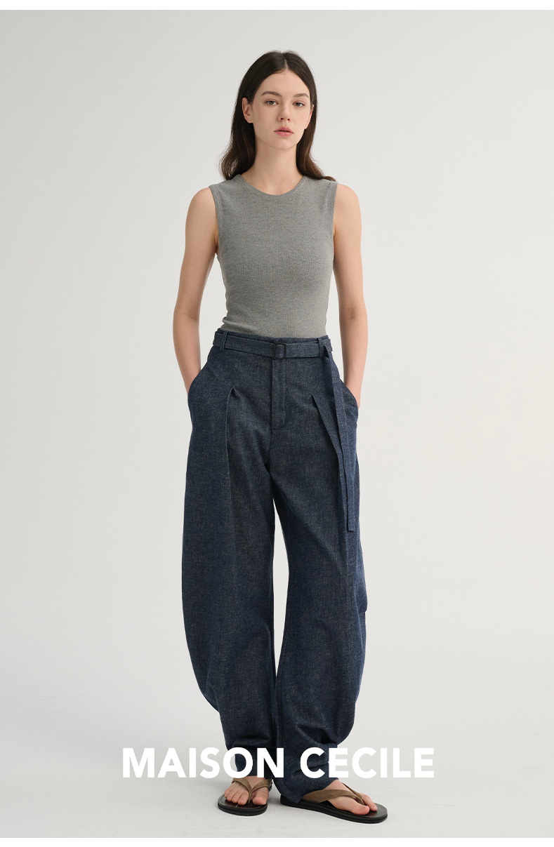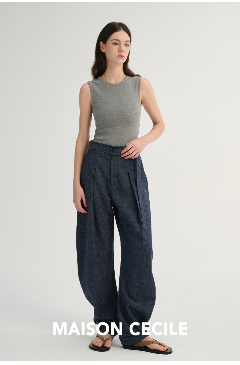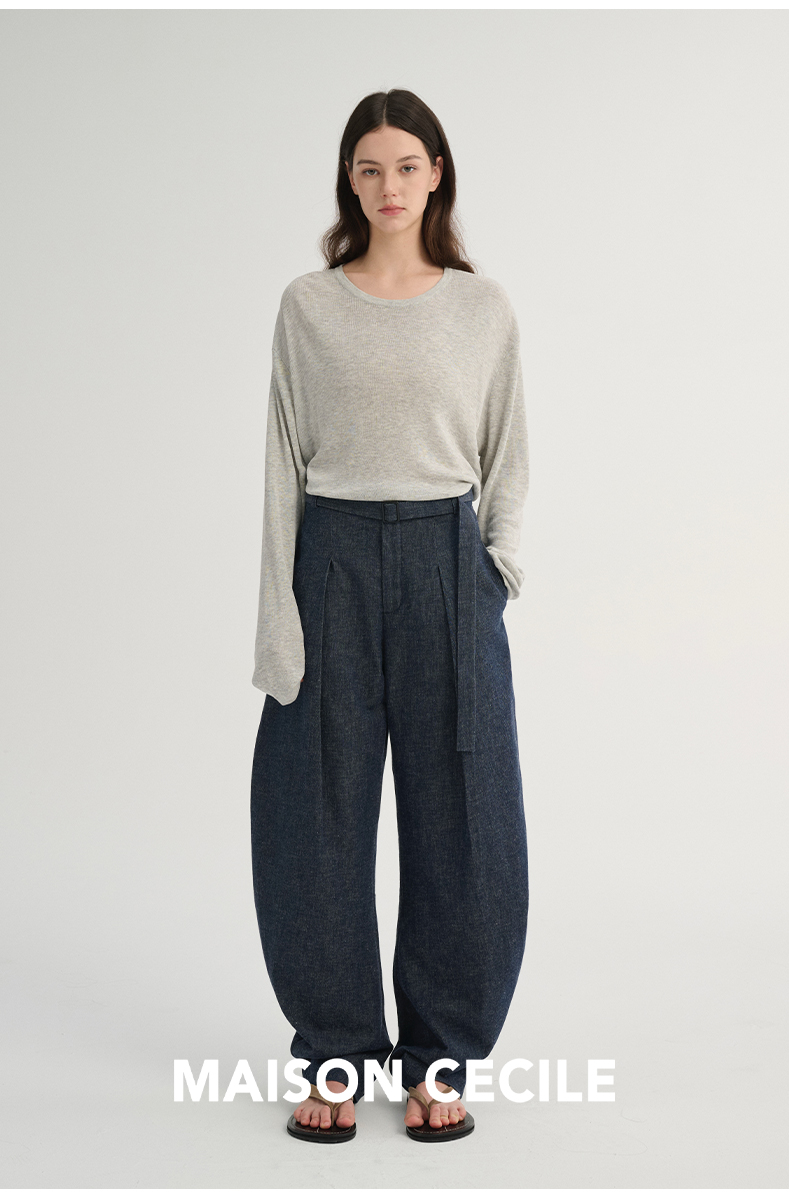 MAISON CECILE 三色/松弛感亚麻肌理遮肉显瘦弧形弯刀裤