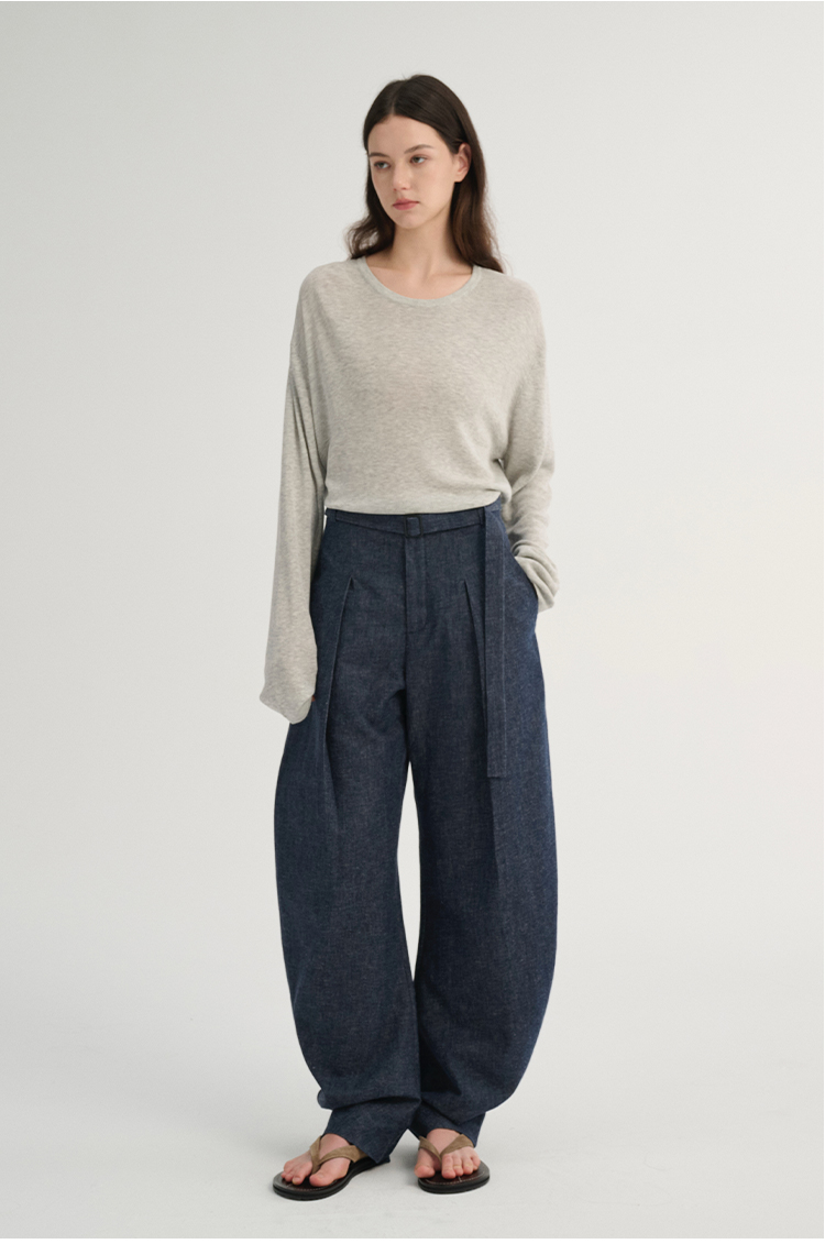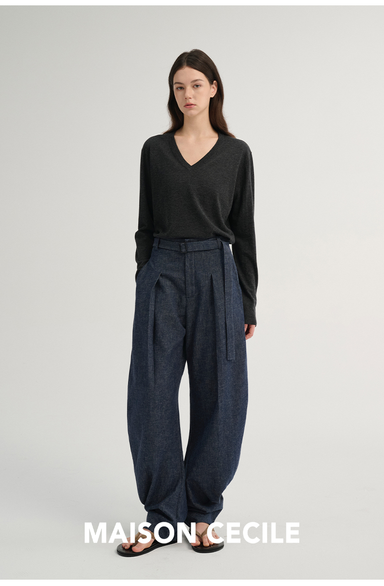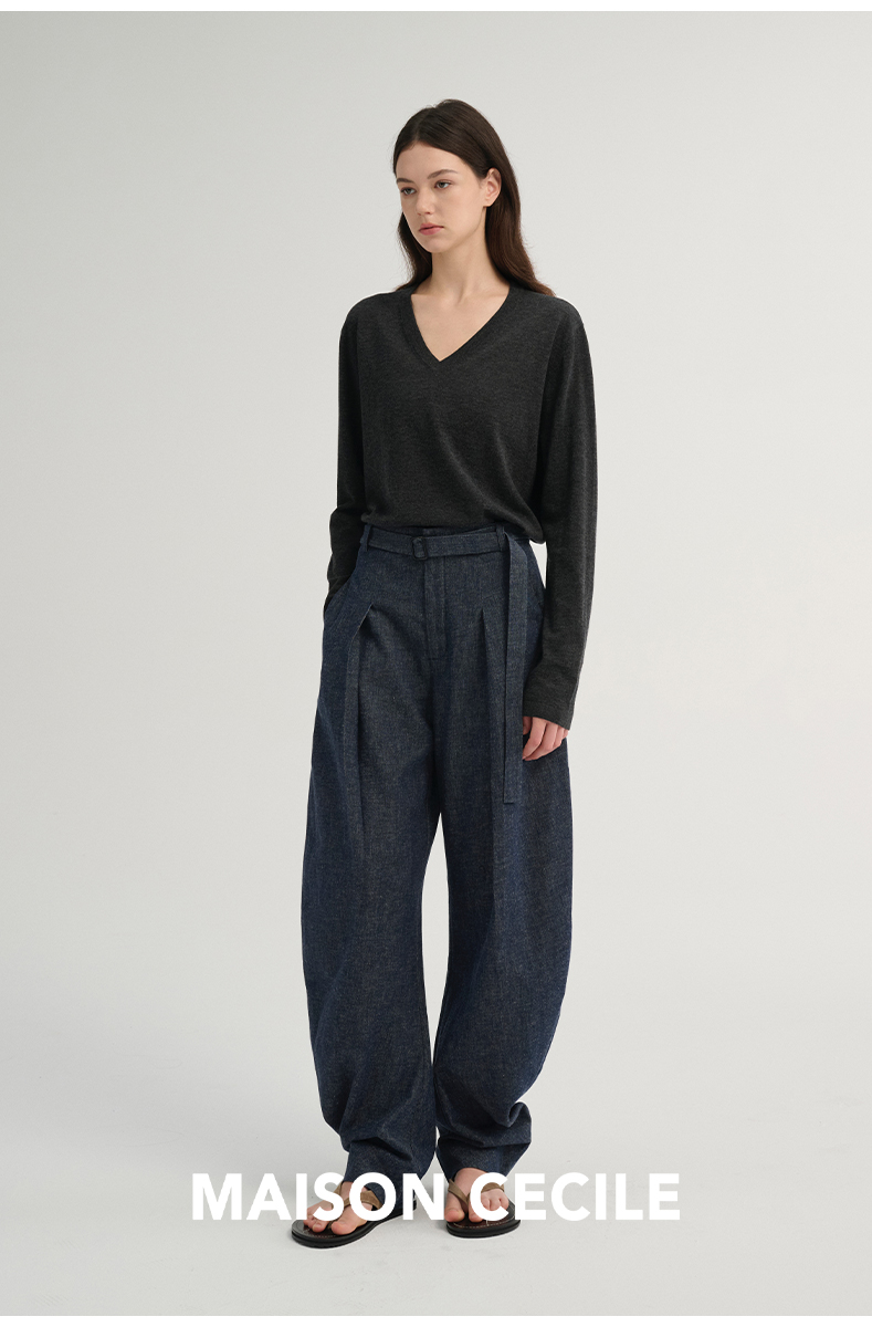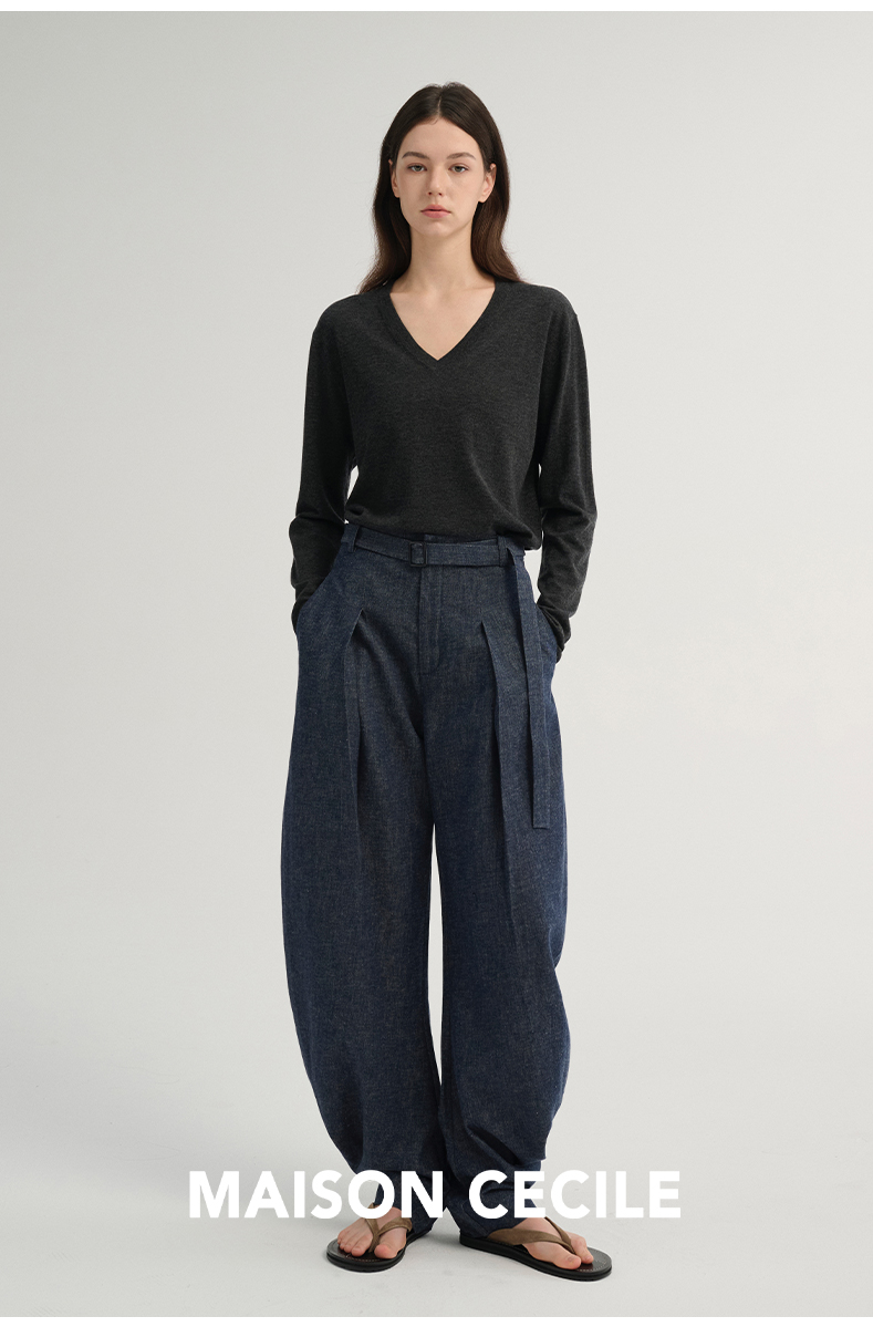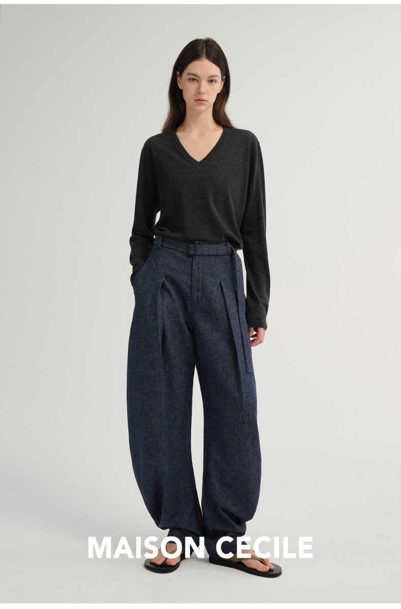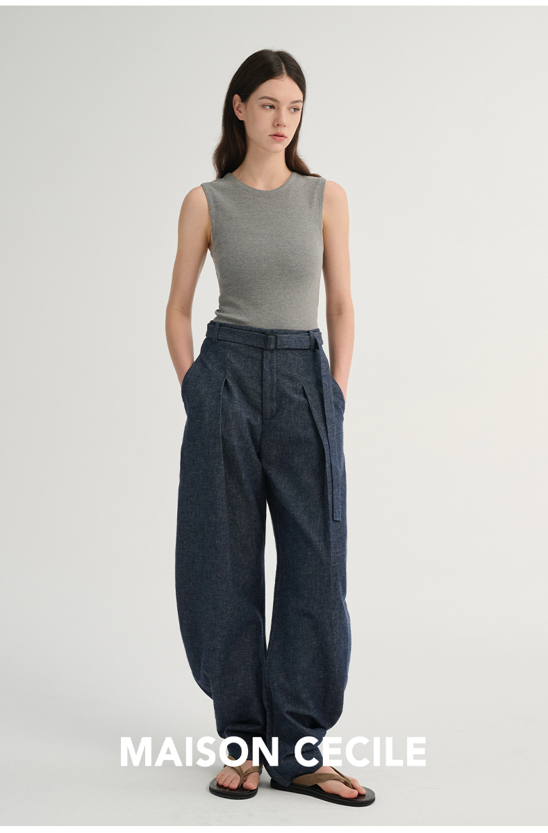 MAISON CECILE 三色/松弛感亚麻肌理遮肉显瘦弧形弯刀裤