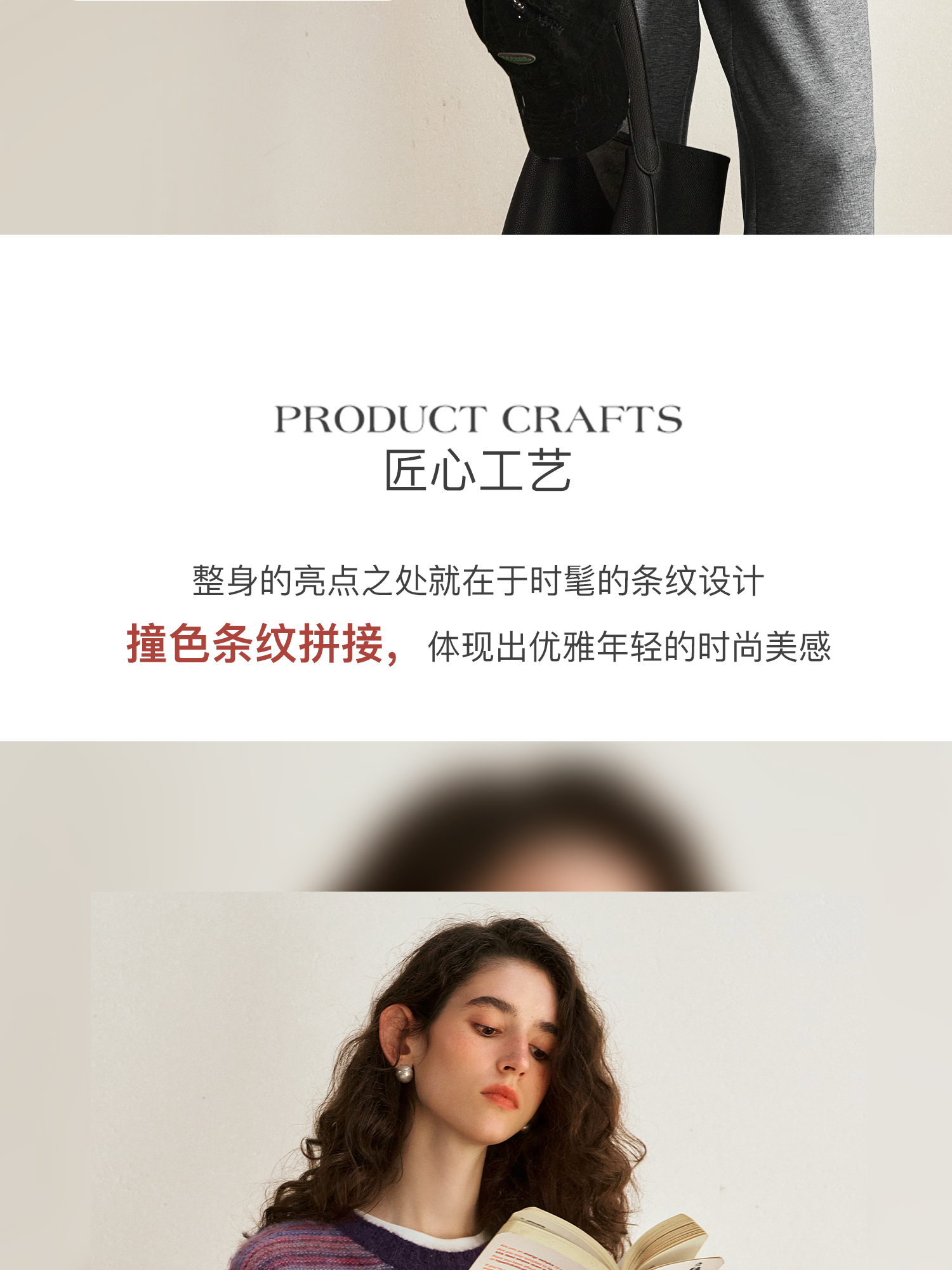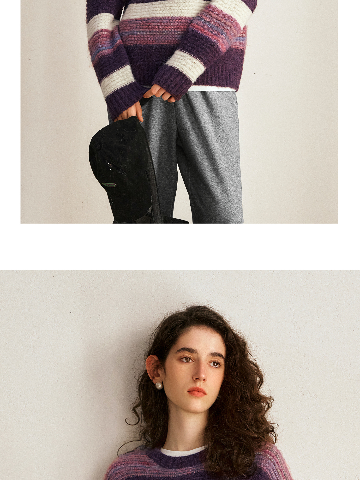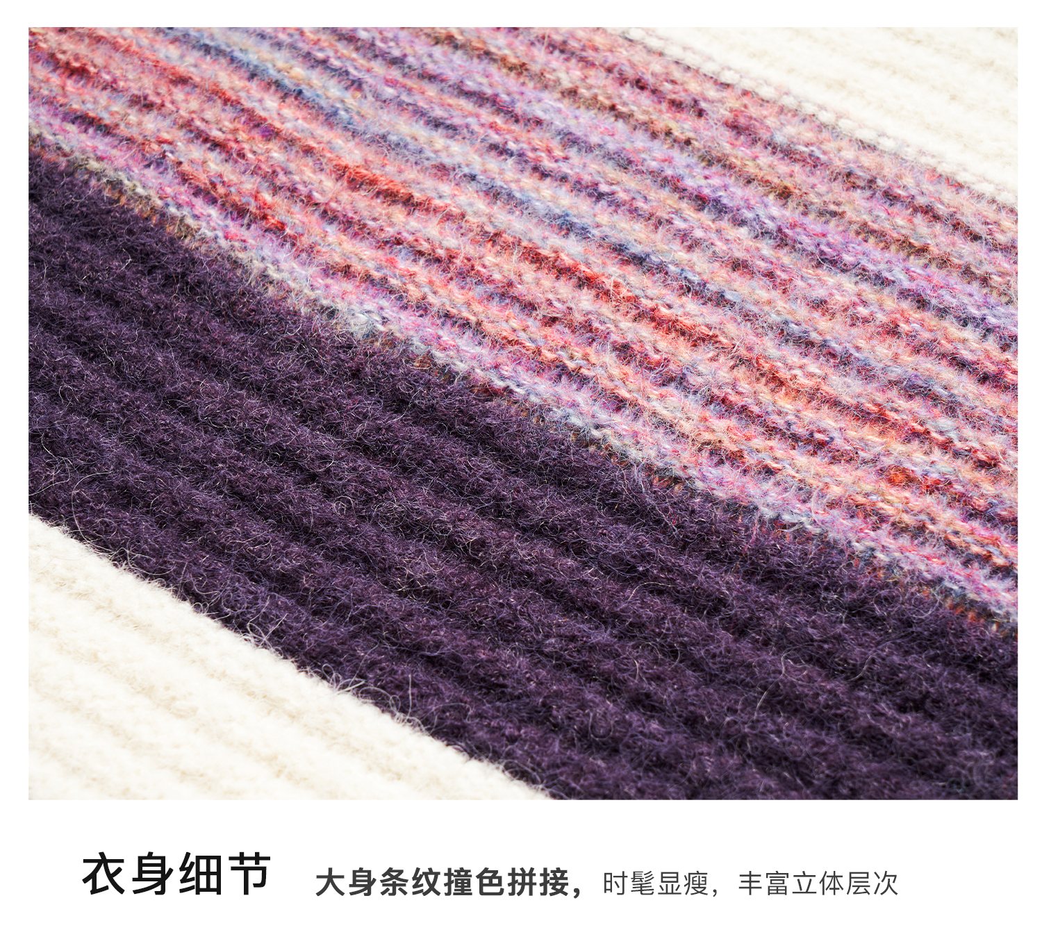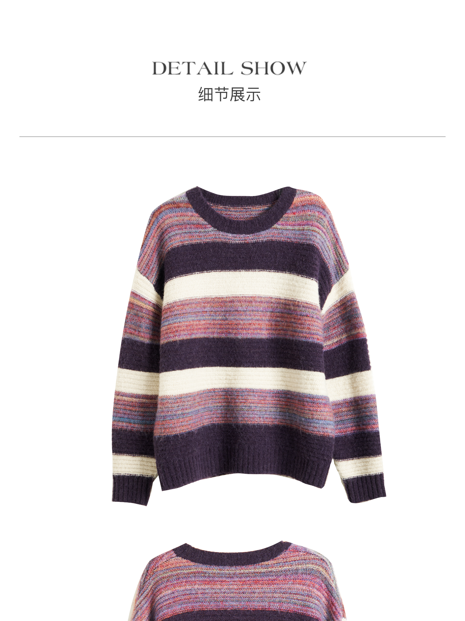 OLrain欧芮儿条纹套头毛衣女秋季2024年新款圆领慵懒休闲通勤上衣