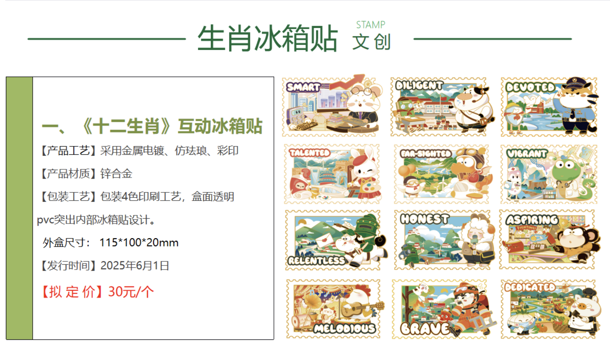 聪明鼠·孺子牛·安邦虎·才艺兔·腾飞龙·能量蛇·奋进马·求实羊·拼搏猴·悦耳鸡·勇毅狗·兴旺猪