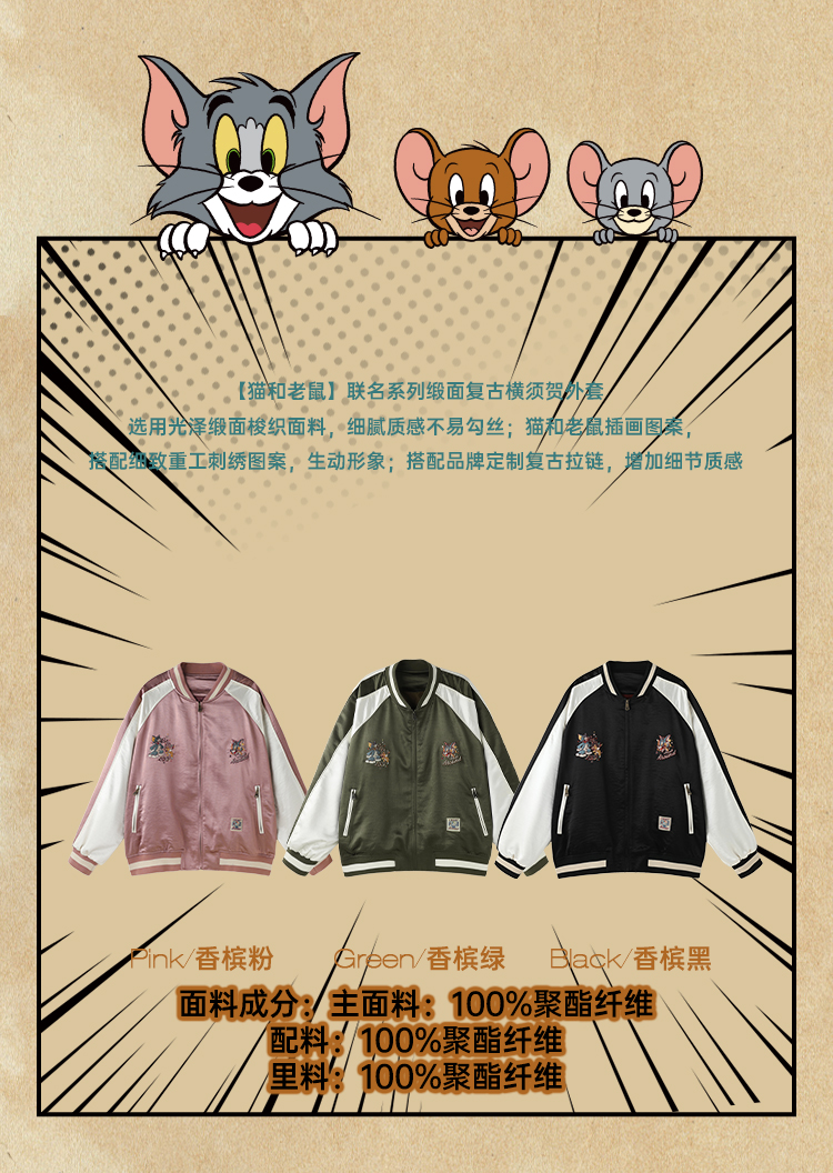 【猫和老鼠联名】BJHG不计后果棒球服外套男款秋季复古飞行夹克女