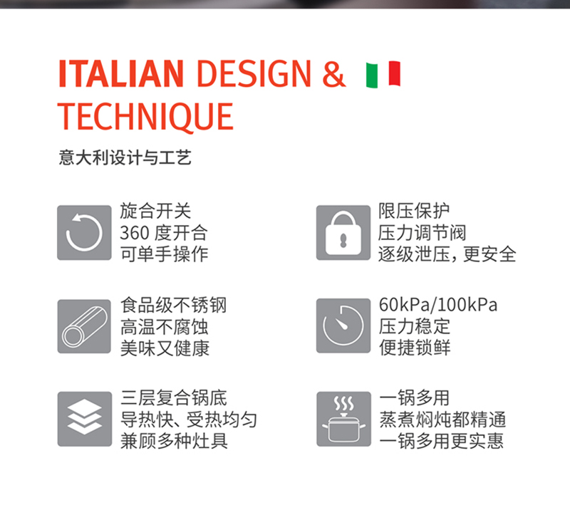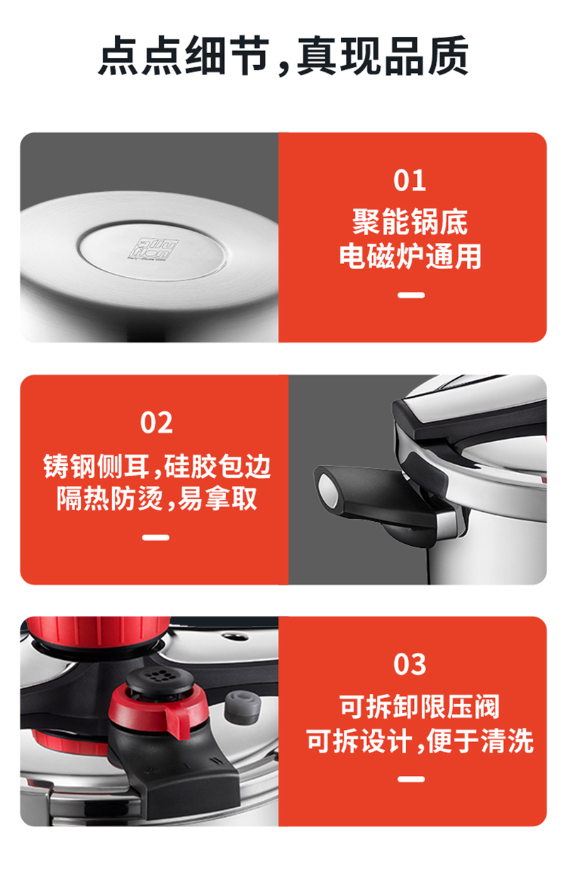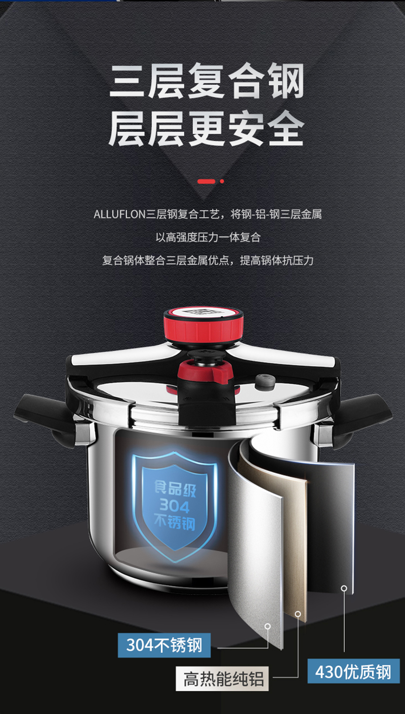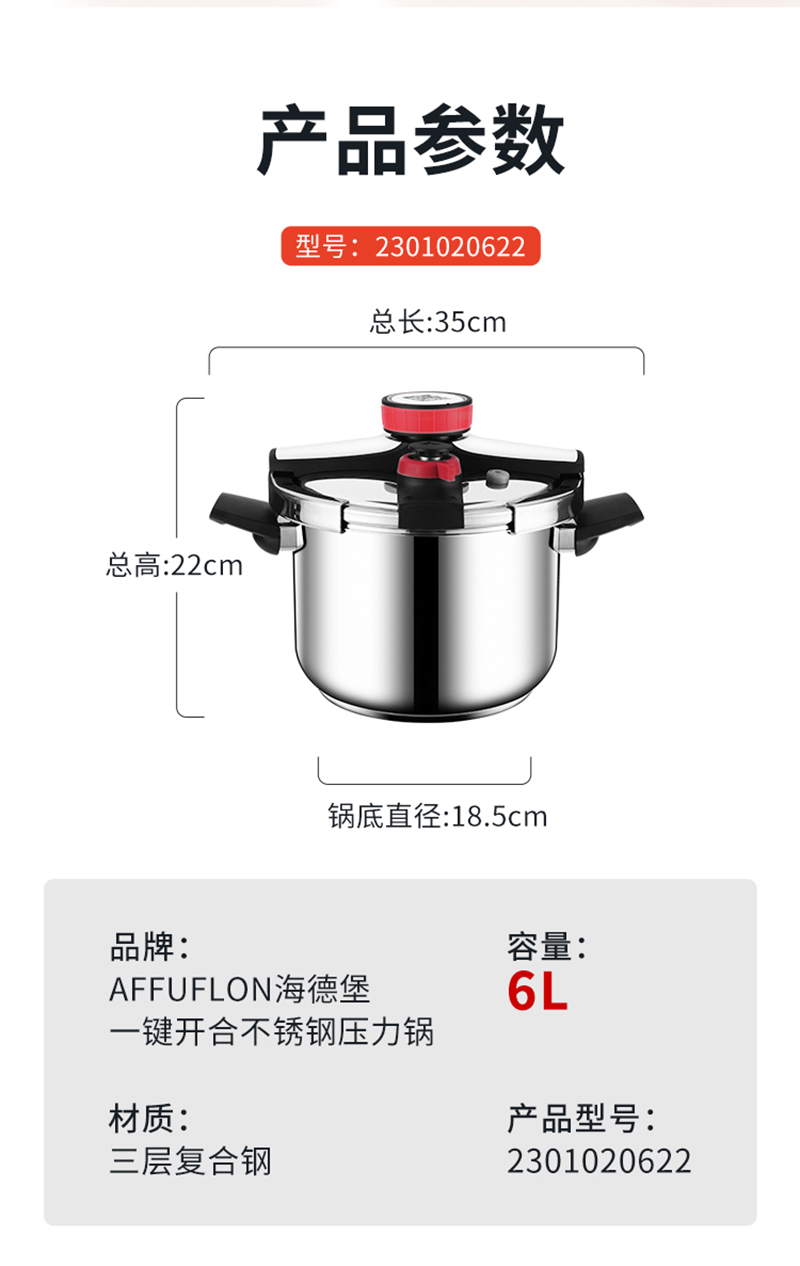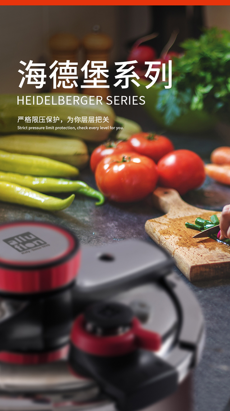 Alluflon阿路弗仑 海德堡一键开合不锈钢压力锅22公分