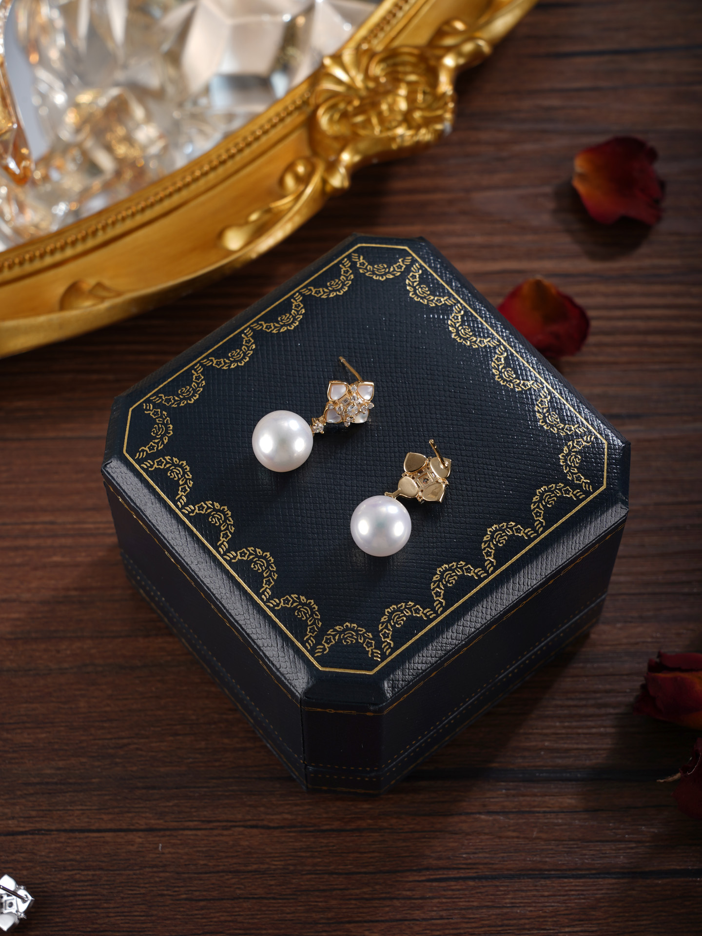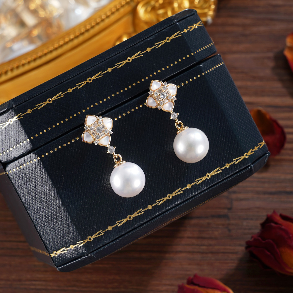 子佩集【四叶相思】银S925珍珠惜王妃耳钉【TE0733】双色四叶草2602