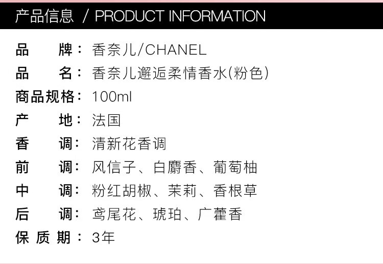 香奈儿邂逅柔情淡香水 100ml 粉邂逅柔情 花香调 淡香水EDT