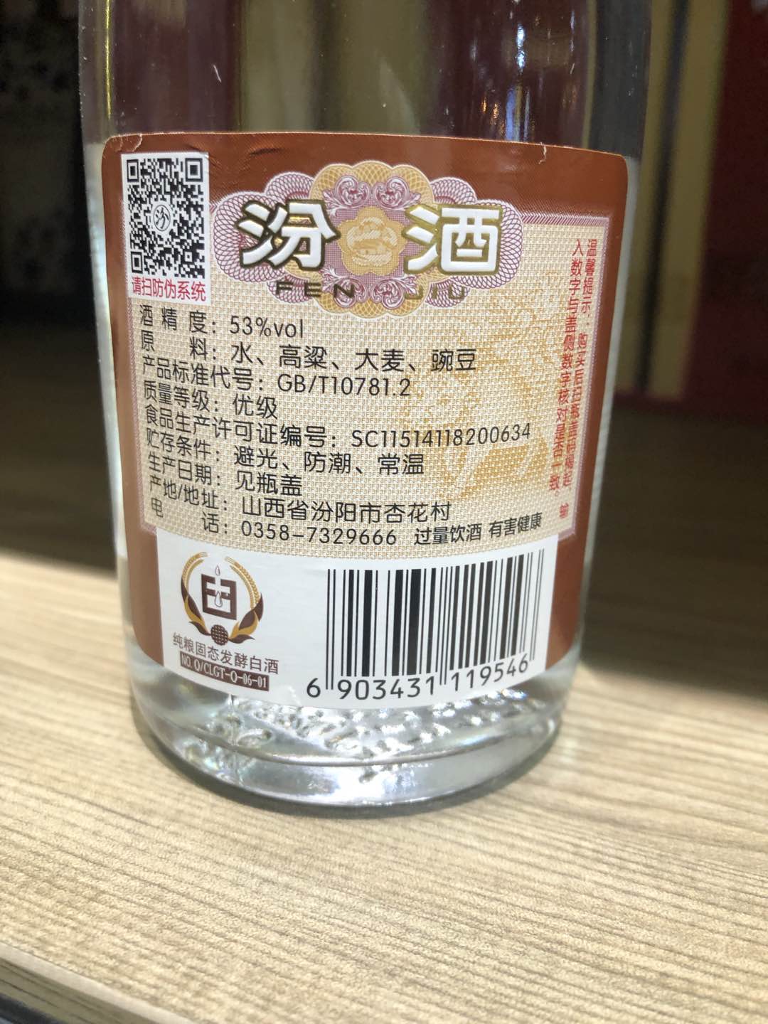 山西杏花村 汾酒(封坛十五)53度 475ml清香型白酒
