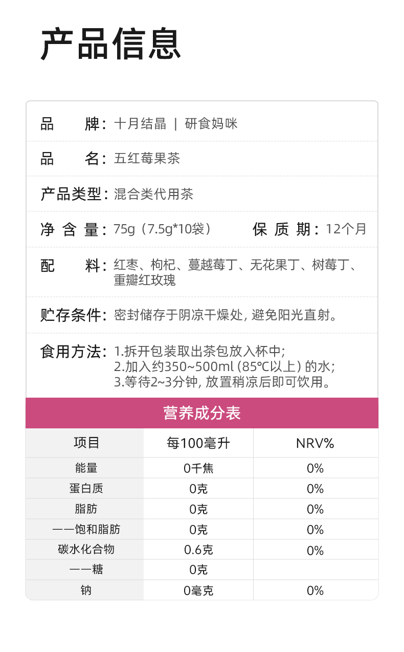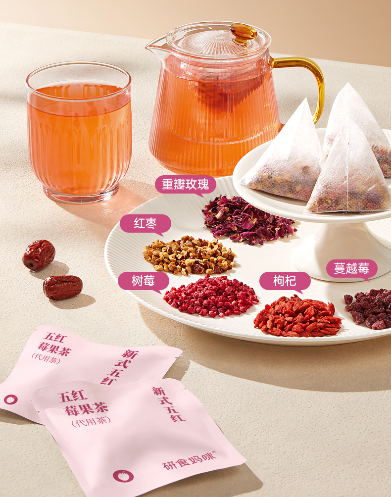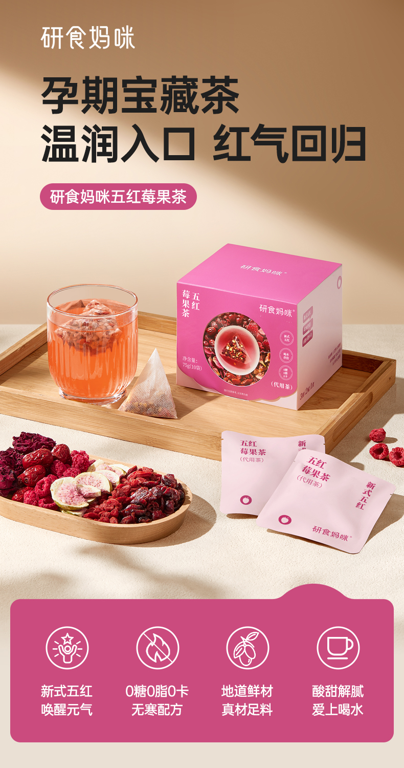 研食妈咪元气五红莓果茶孕期0糖0脂0卡无寒配方玫瑰花茶