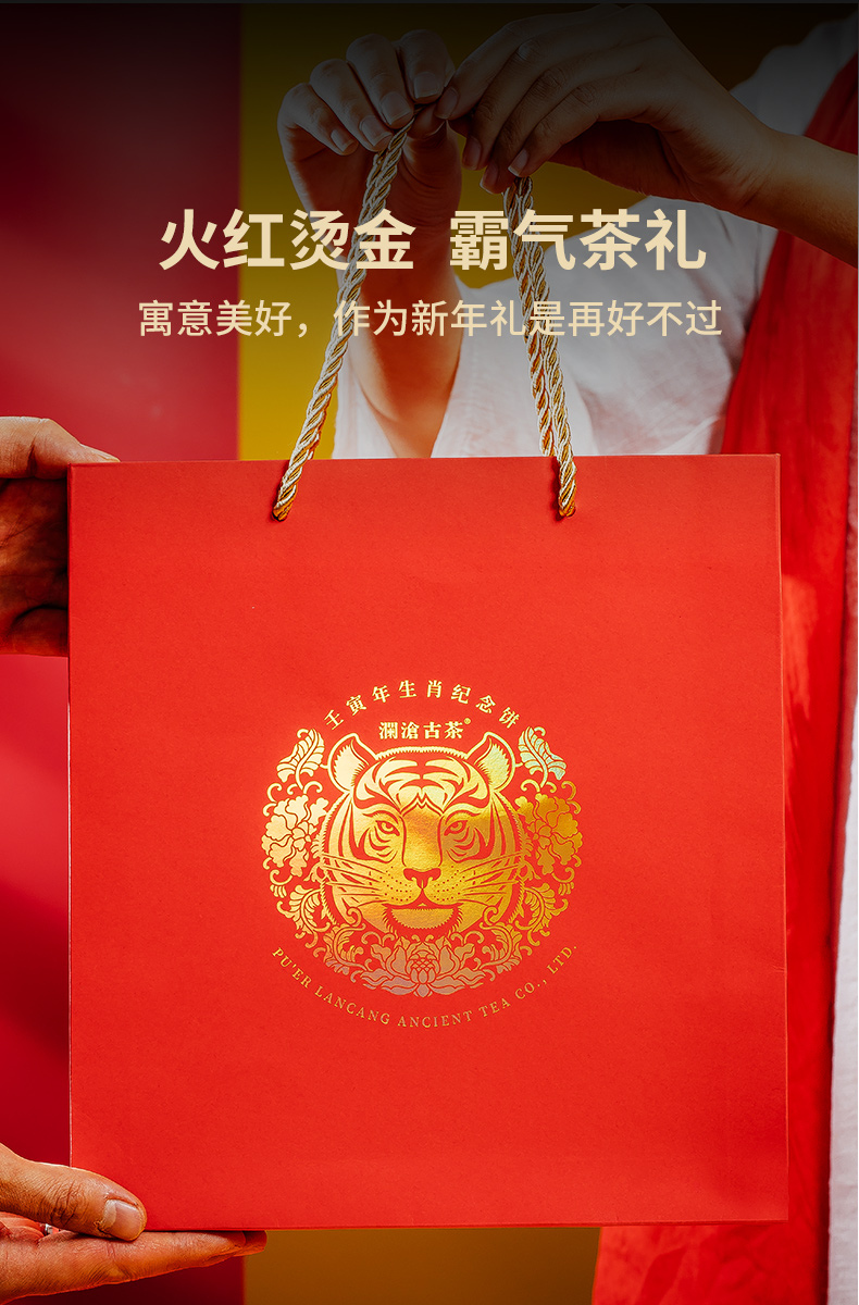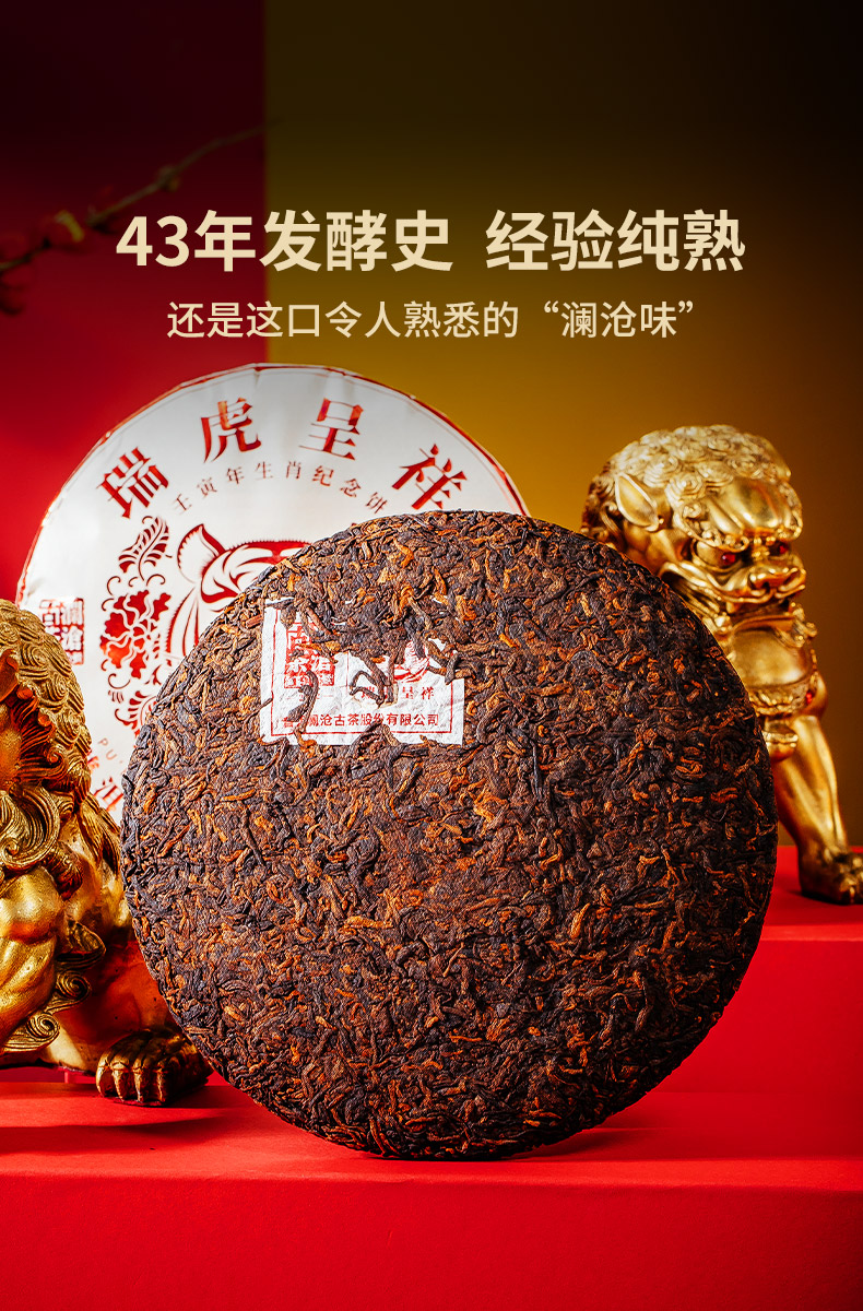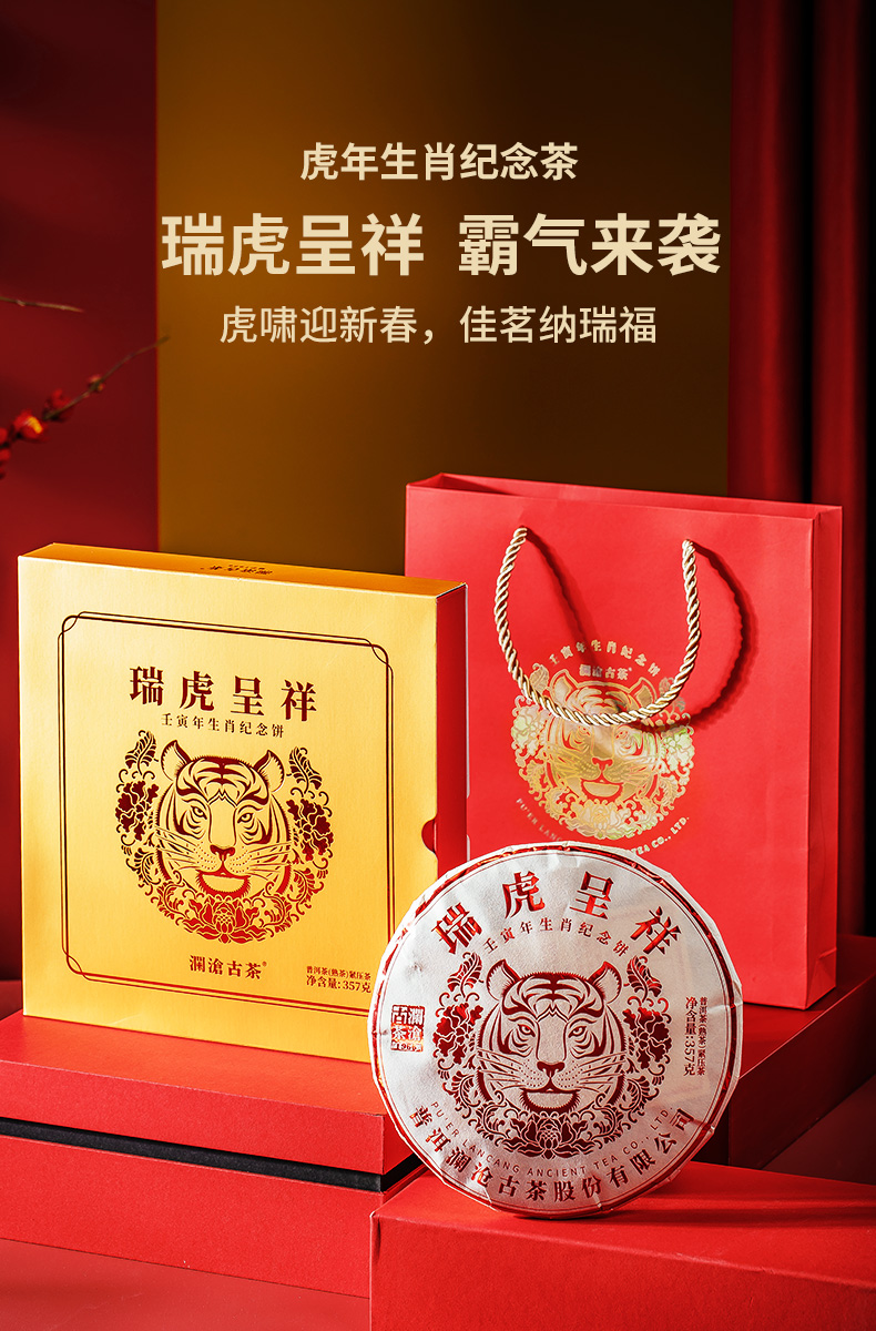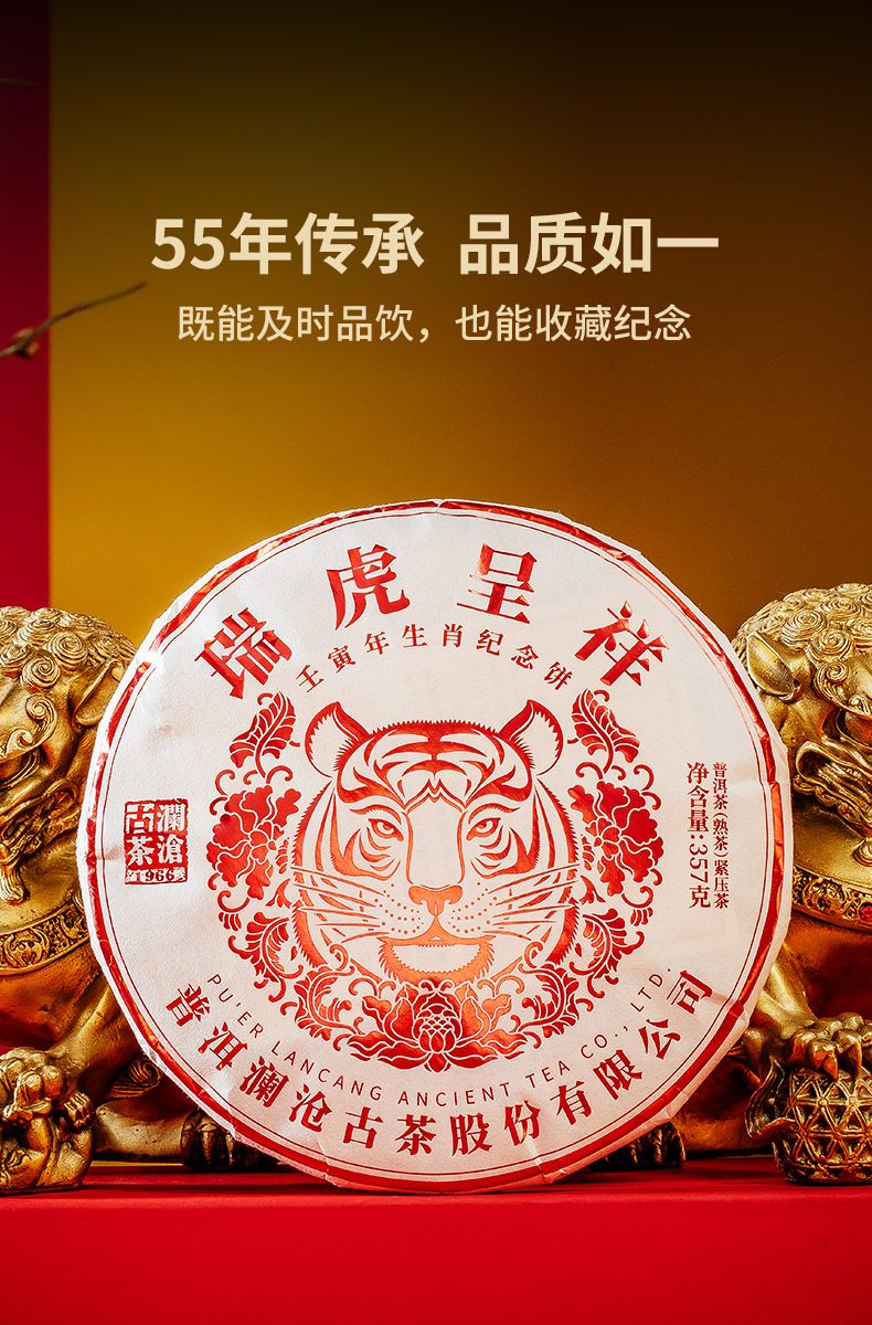 2021年澜沧古茶瑞虎呈祥熟茶虎年生肖纪念茶饼357g*10片(无礼盒)
