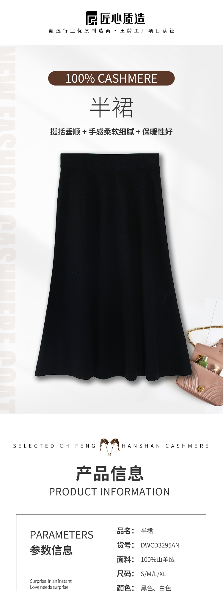 东黎 • 山羊绒女士春秋温柔百搭时尚A字半裙 3295
