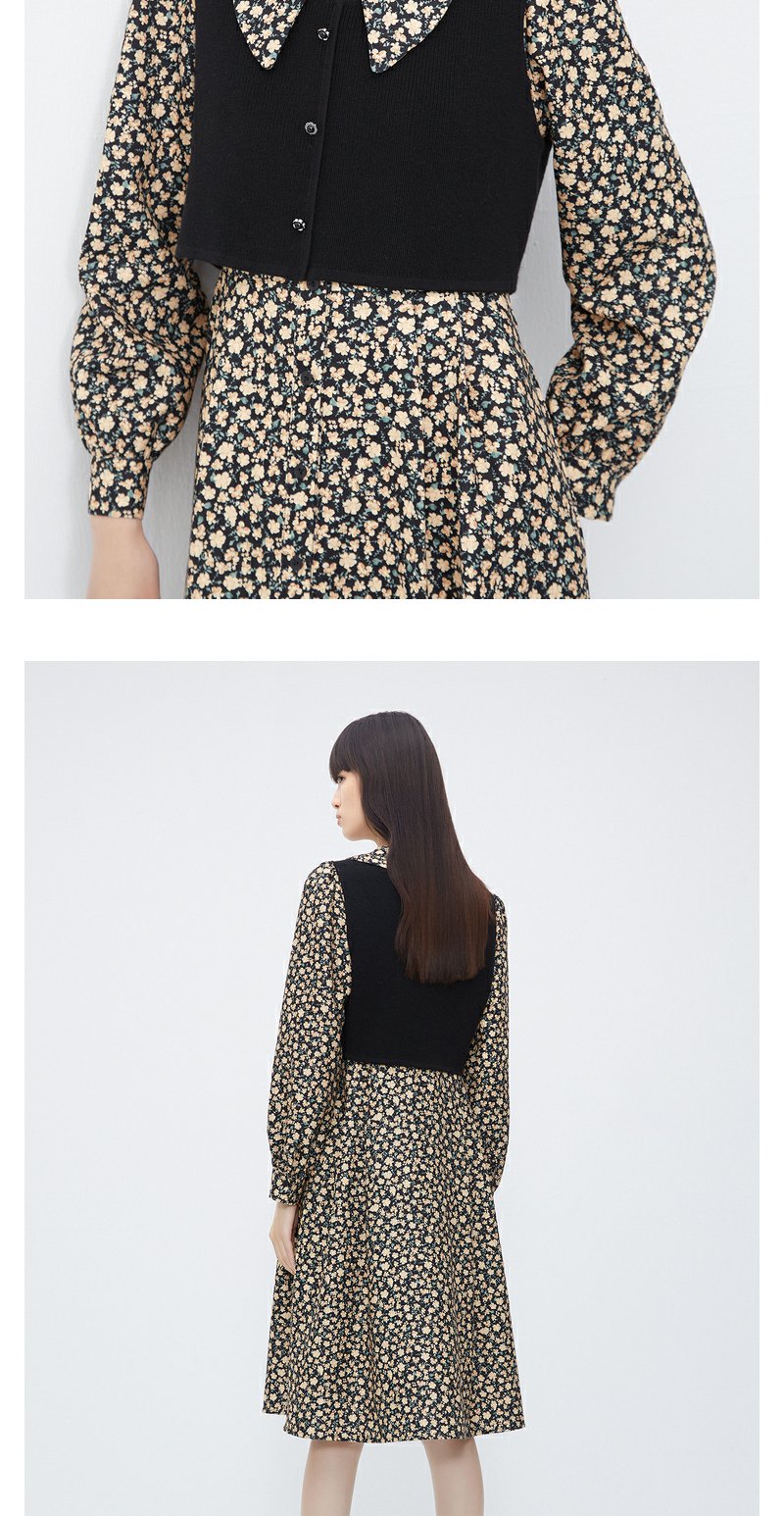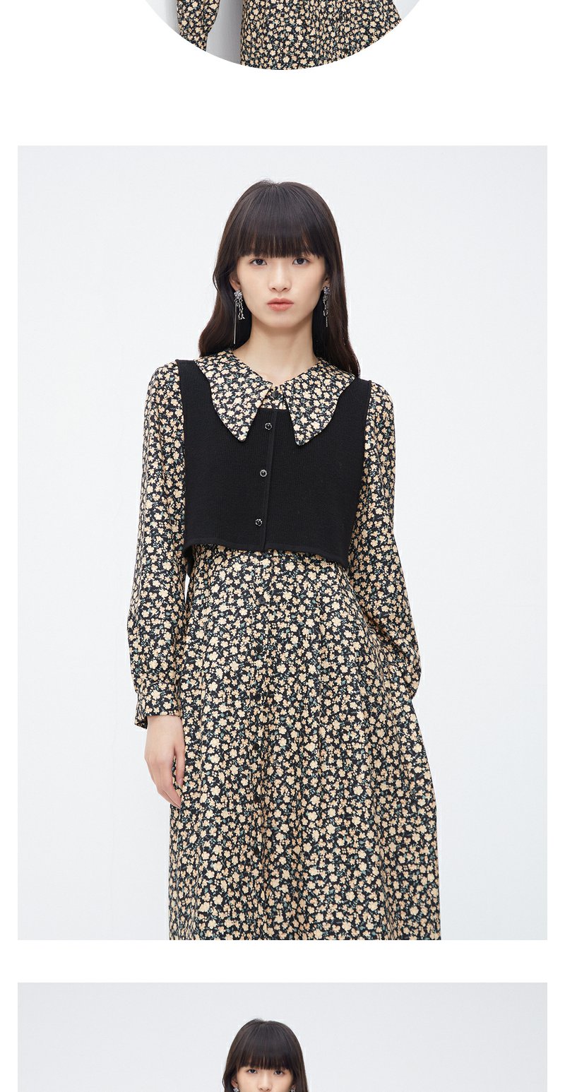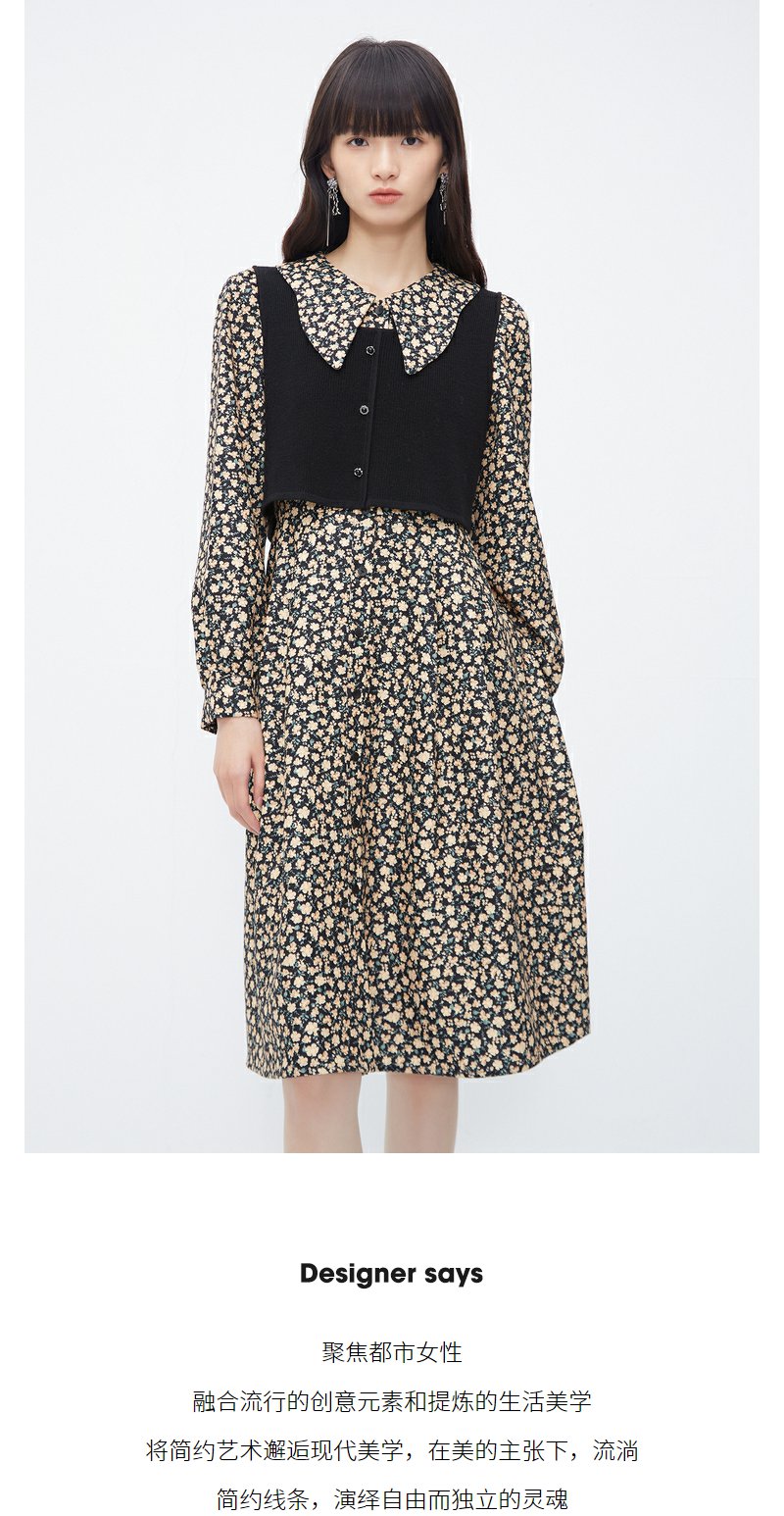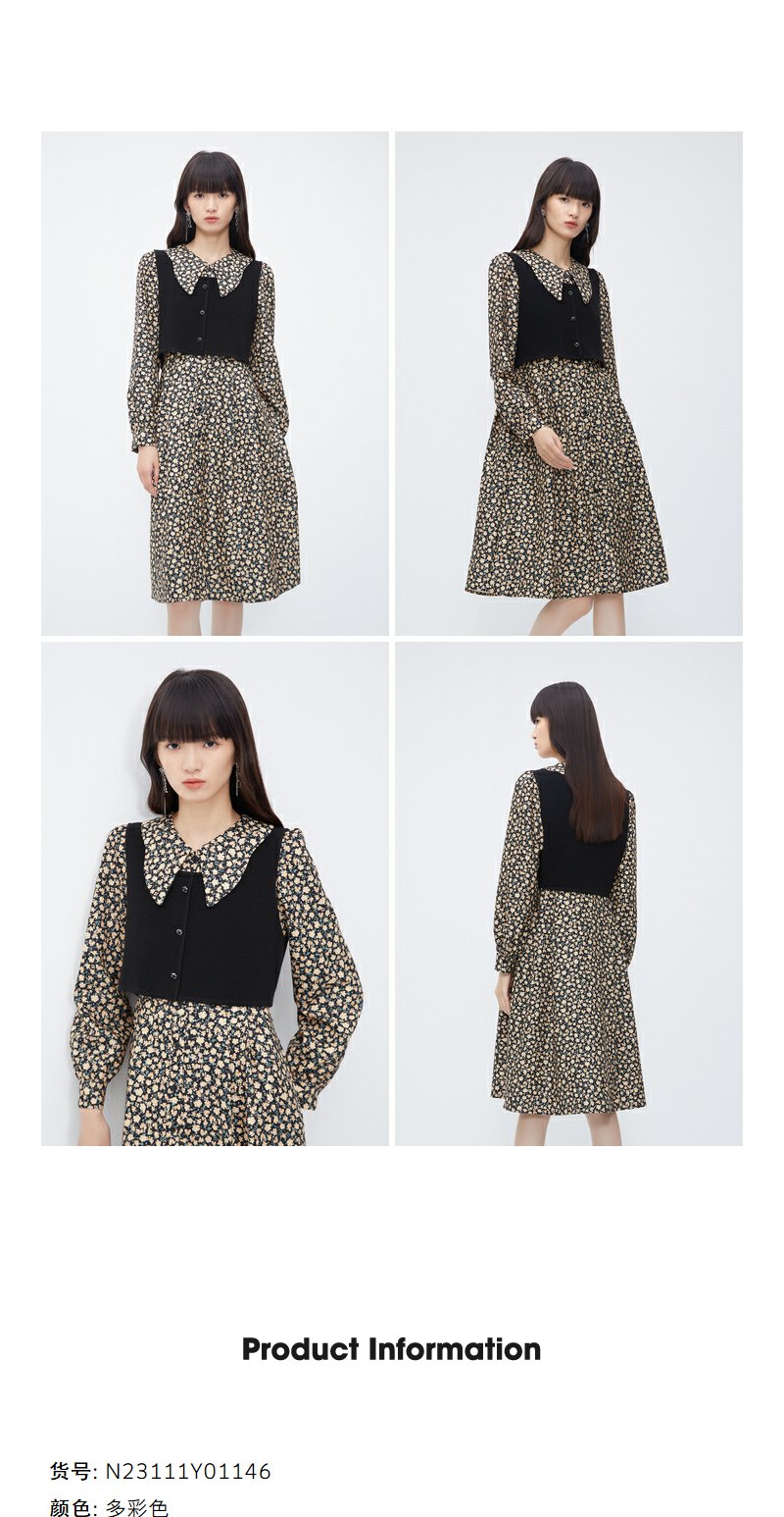 NEELLY纳俪商场同款羊毛碎花连衣裙女冬季新款温柔气质复古两件套N23111Y01146