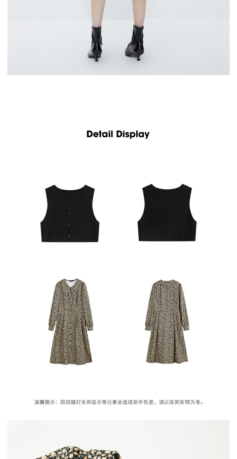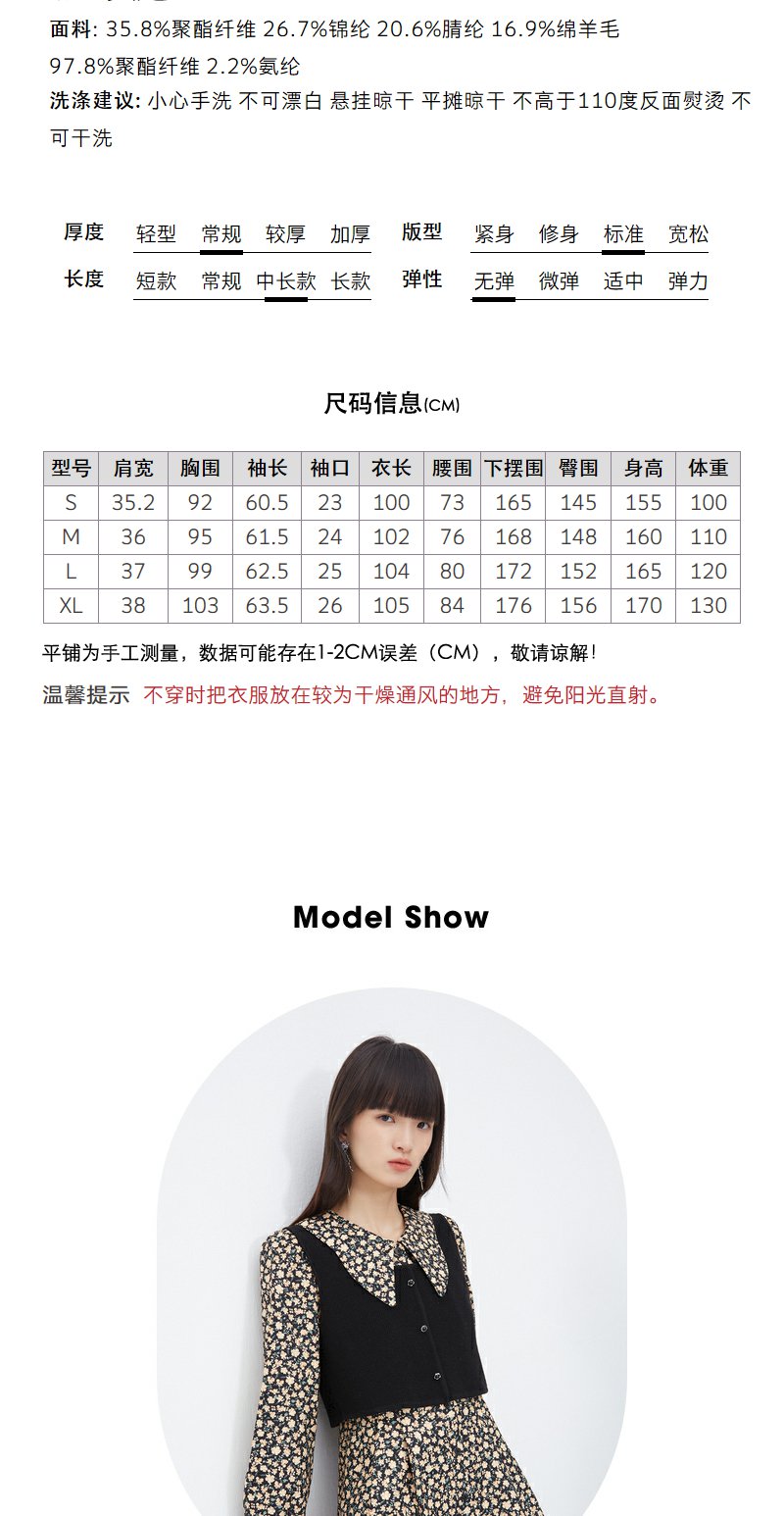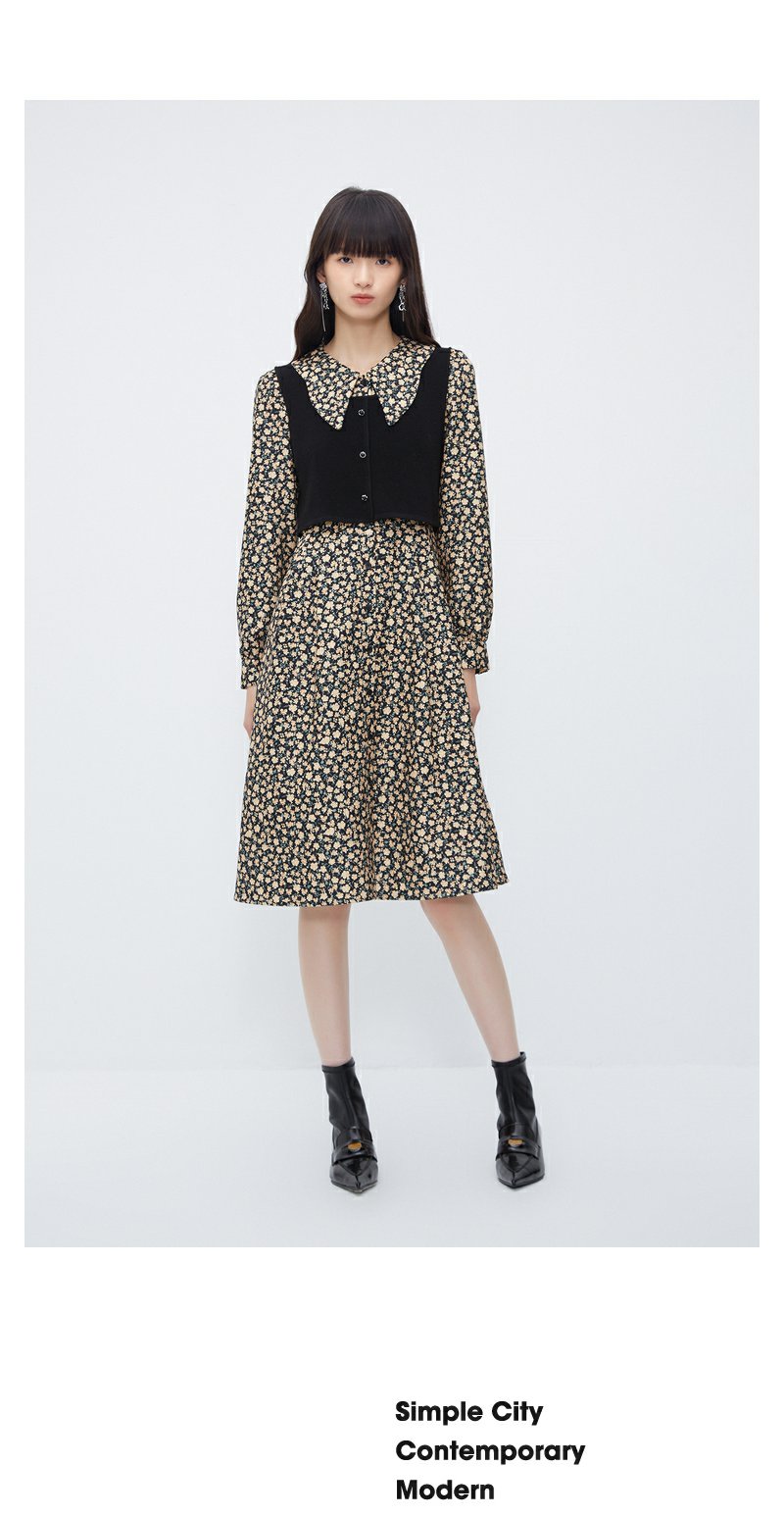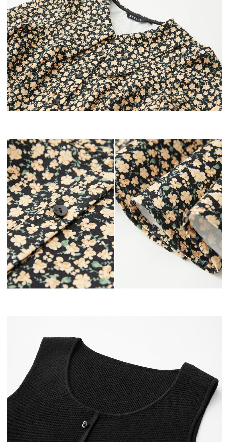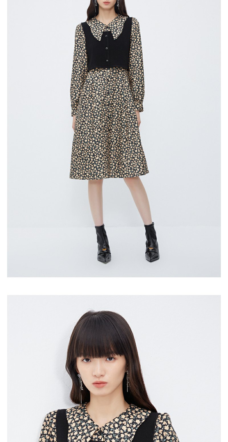 NEELLY纳俪商场同款羊毛碎花连衣裙女冬季新款温柔气质复古两件套N23111Y01146