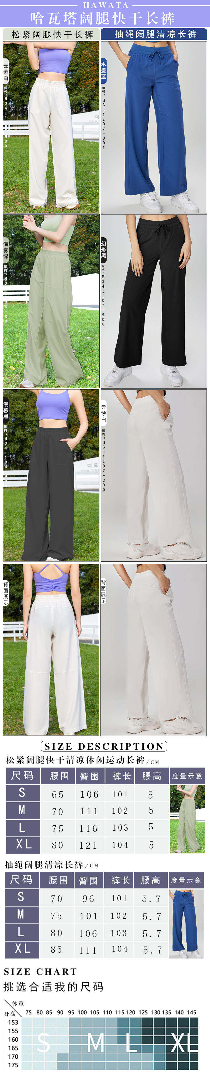 2024哈瓦塔阔腿快干清凉休闲运动长裤H341106