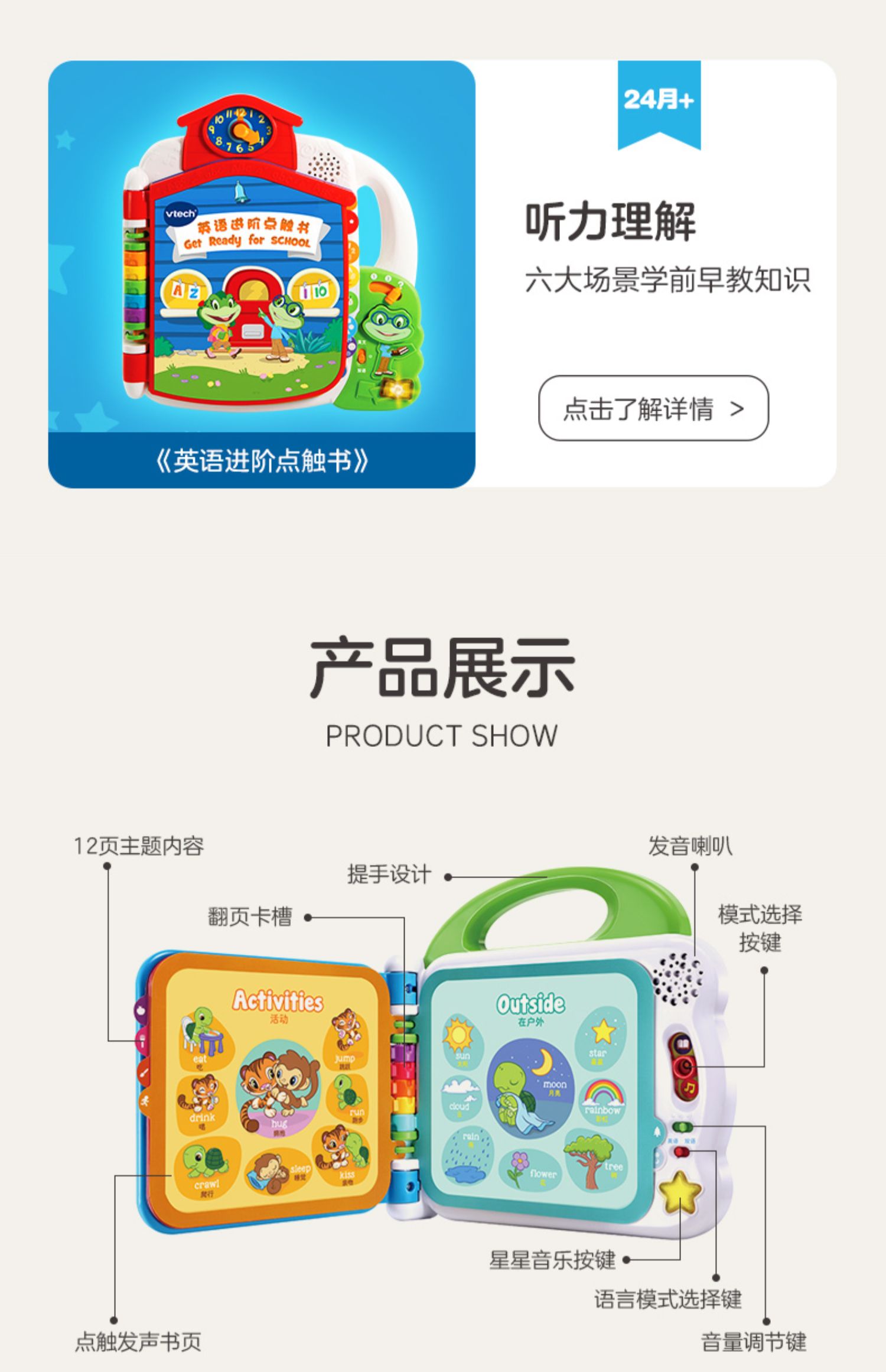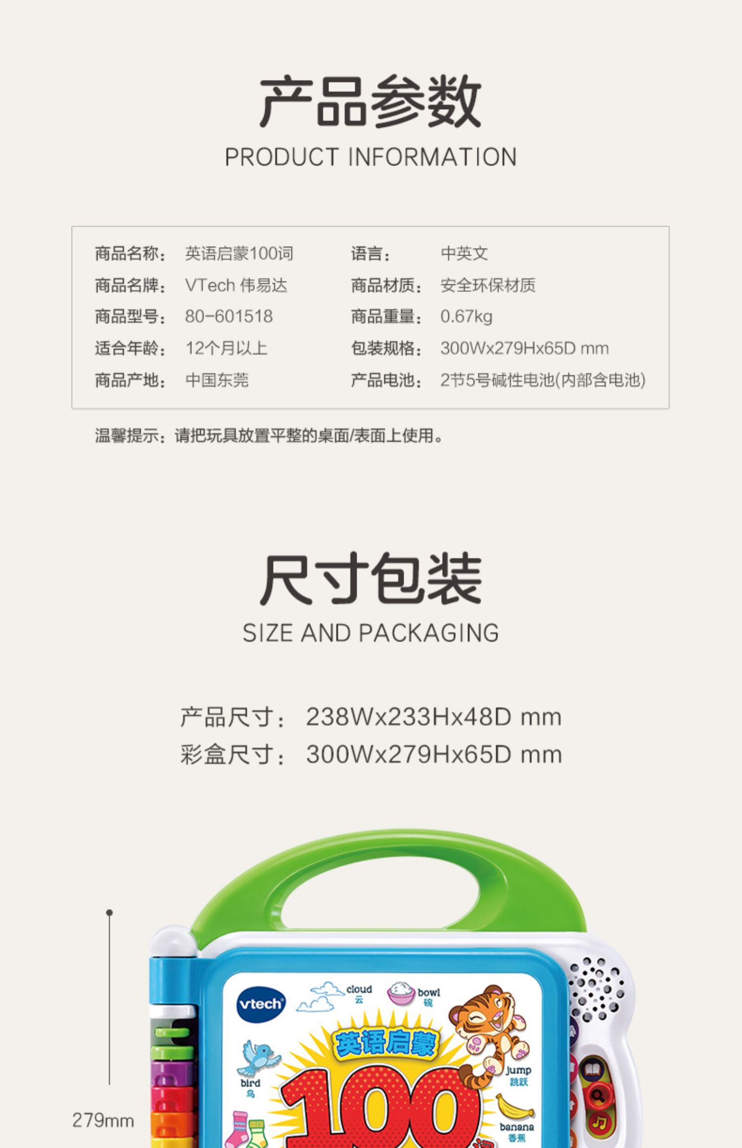 1-3岁 | VTech伟易达 英语启蒙100词早教学习机玩具点读书宝宝点读机儿童有声书 1-3