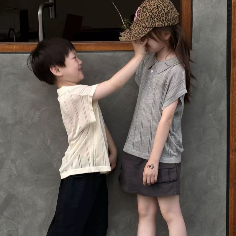 【39.9/件】韩系亲子针织短袖|遛娃穿搭氛围感拉满✨夏季polo衫镂空冰丝童装飞机袖短袖聚★为爱严选