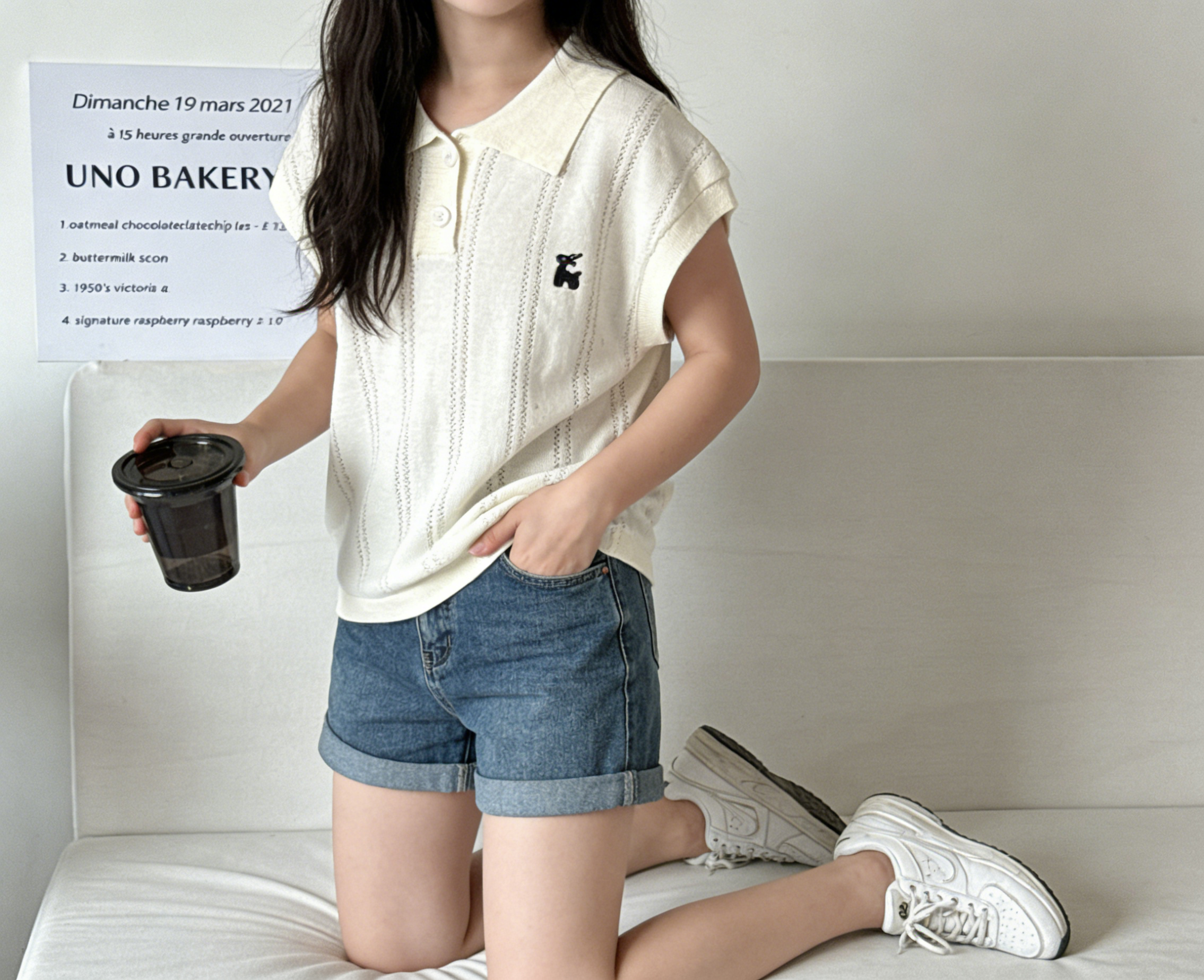搭配牛仔短裤:清爽俏皮,长发小女孩扎个半马尾,在街上蹦蹦跳跳,元气又可爱,日常遛娃超方便