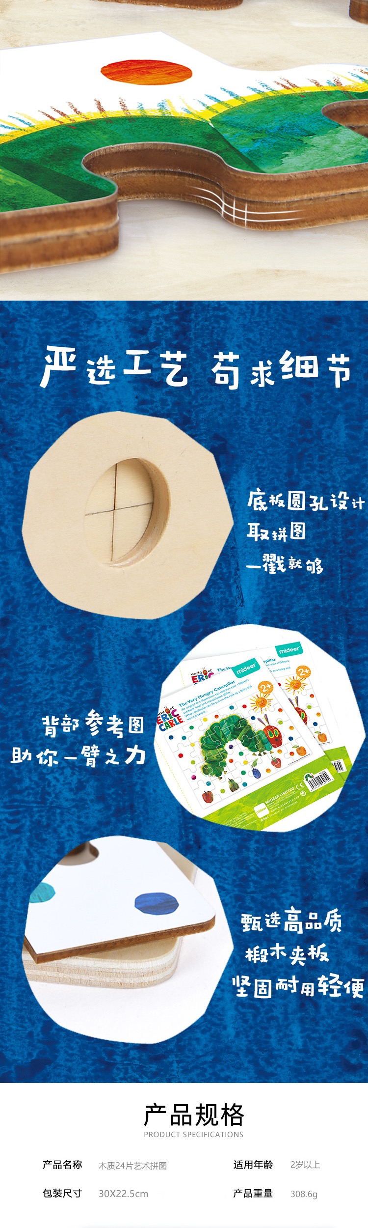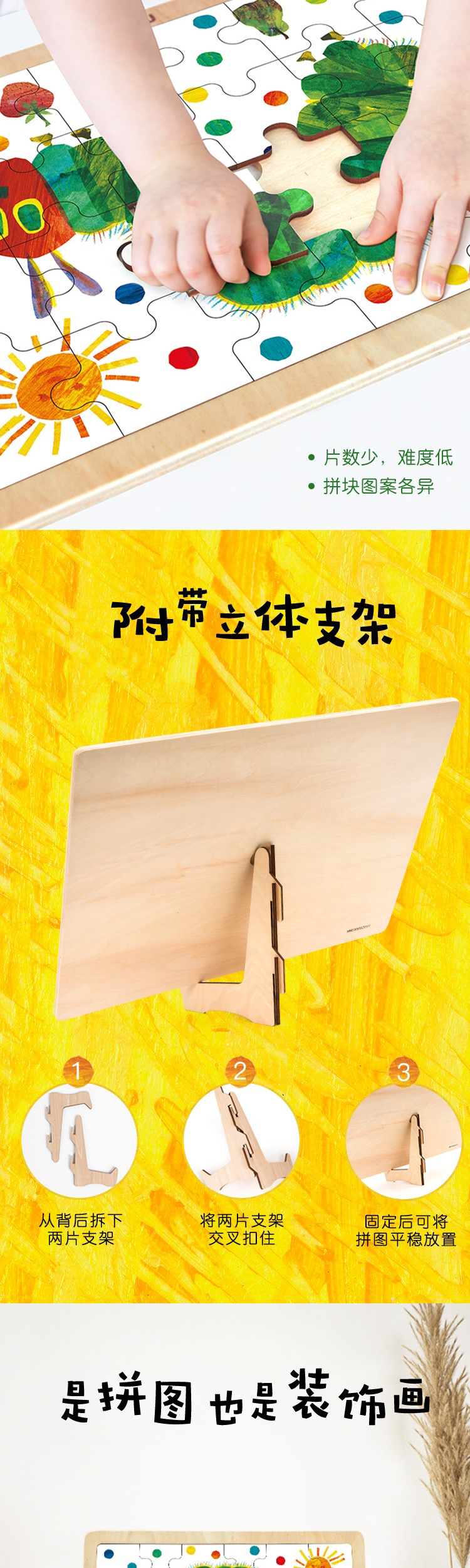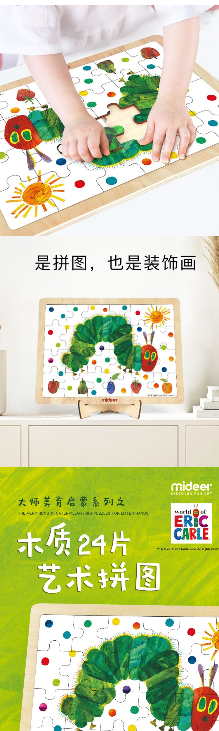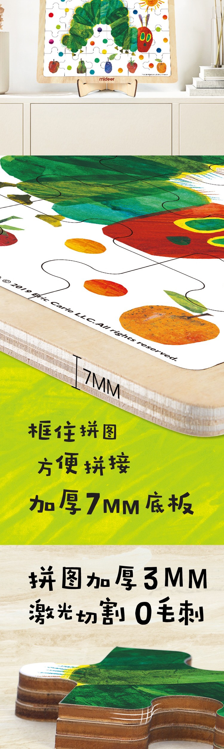 mideer弥鹿好饿的毛毛虫幼儿大块木质益智早教拼图玩具男女孩2岁3岁