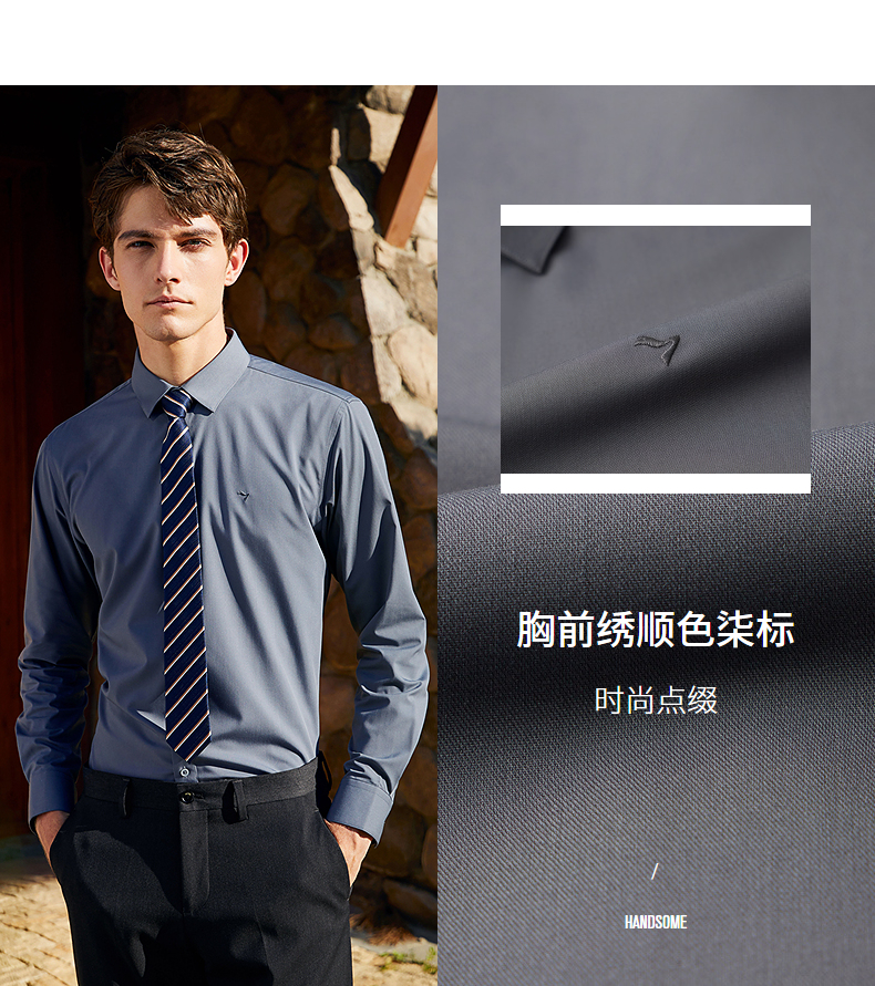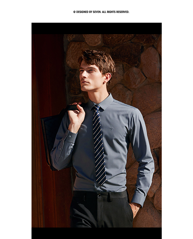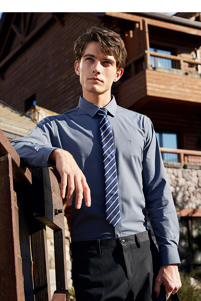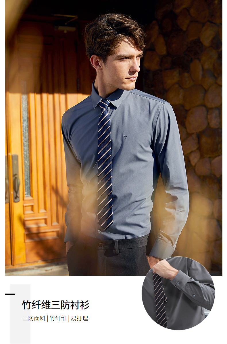【三防竹纤维】柒牌易打理长袖衬衫男士秋冬新款休闲商务翻领衬衣 125A70530