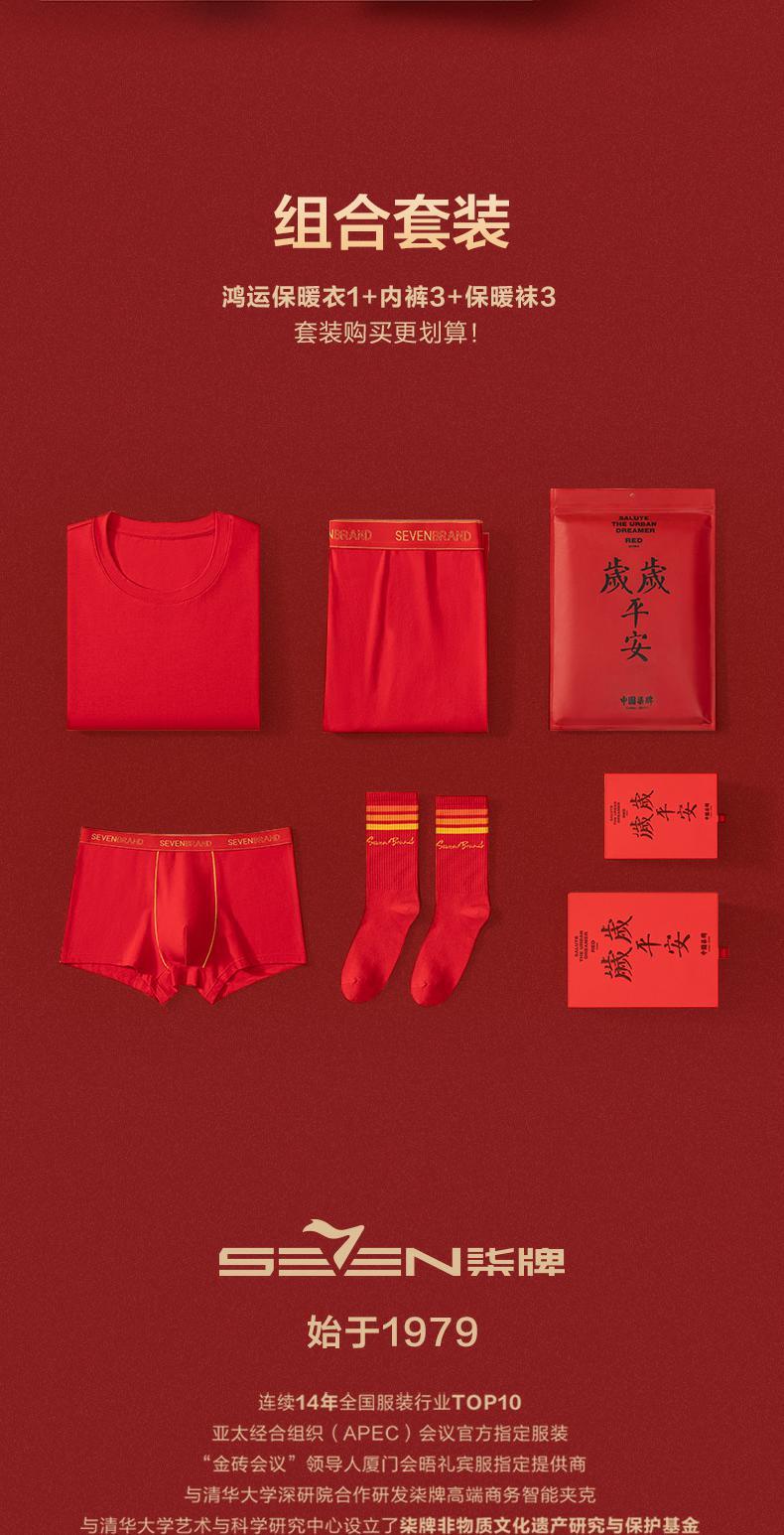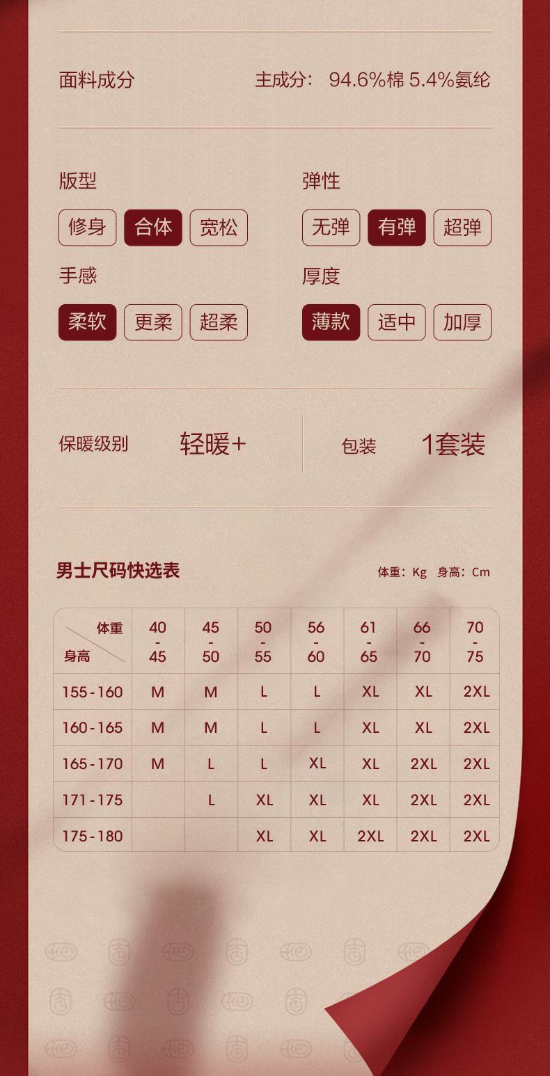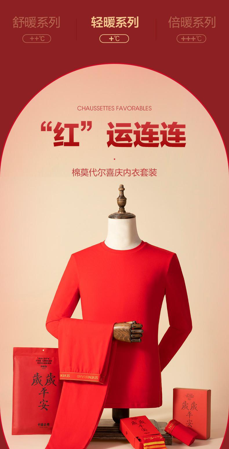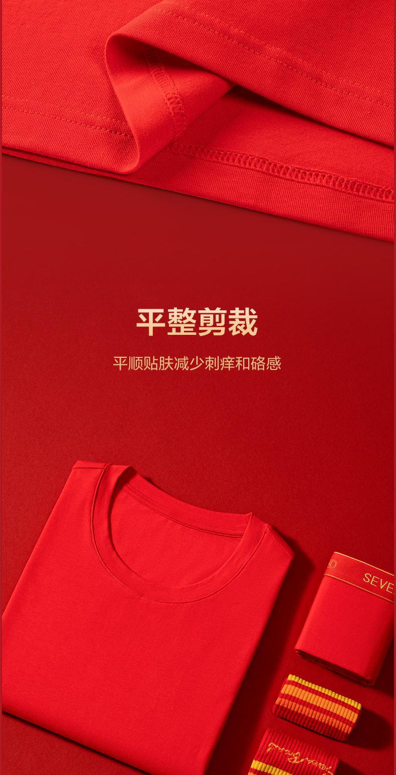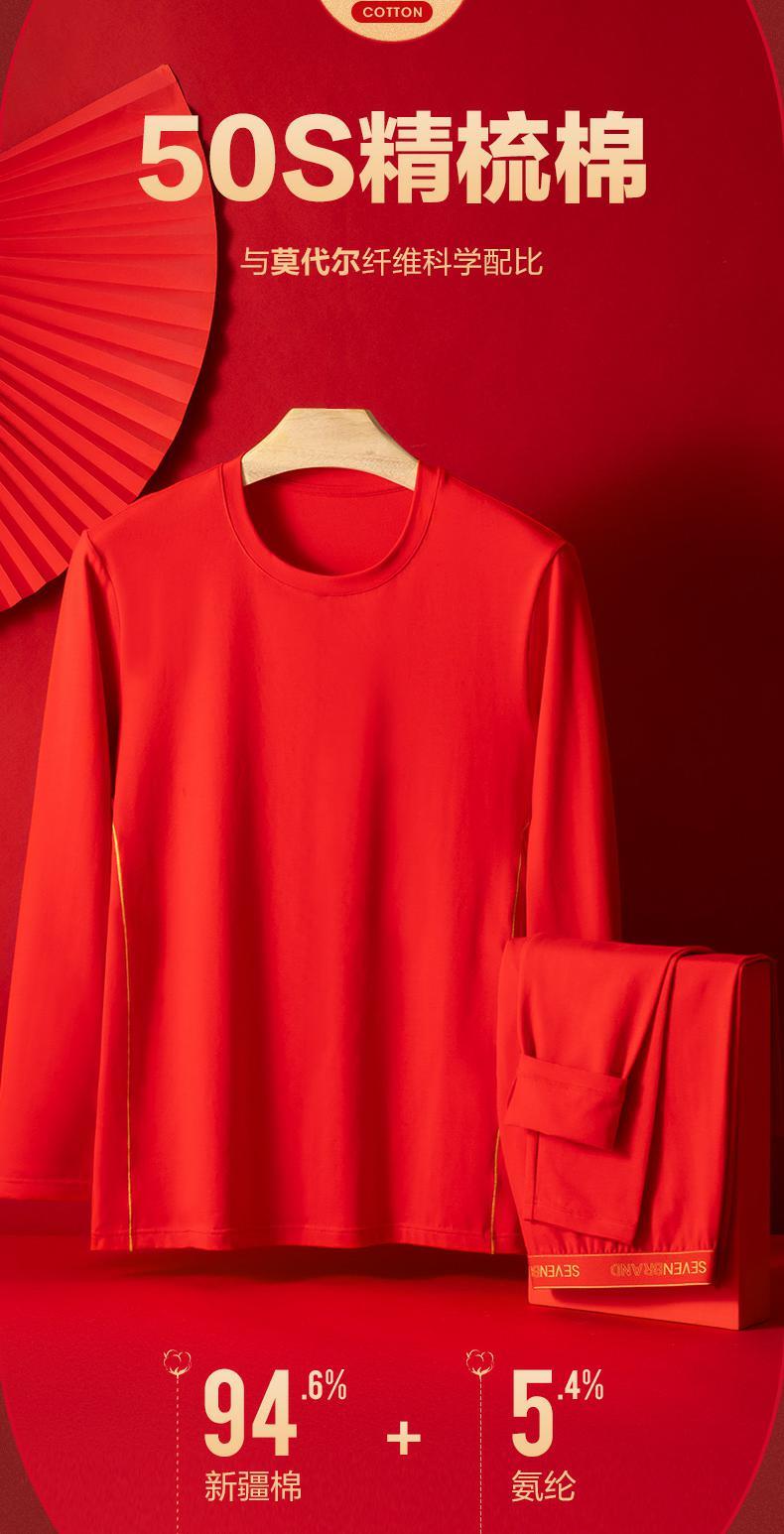 【套装】柒牌男士本命年内衣套装大红色属龙年结婚喜庆保暖秋衣秋裤2件套 123F70670