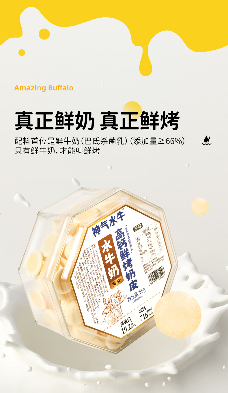 【F】神气水牛 高钙鲜烤奶皮65g/罐营养酥脆水牛奶奶芙饼奶香浓郁奶贝