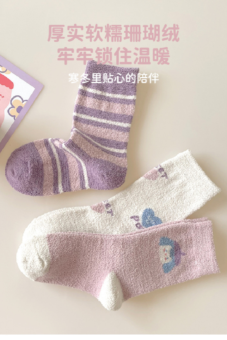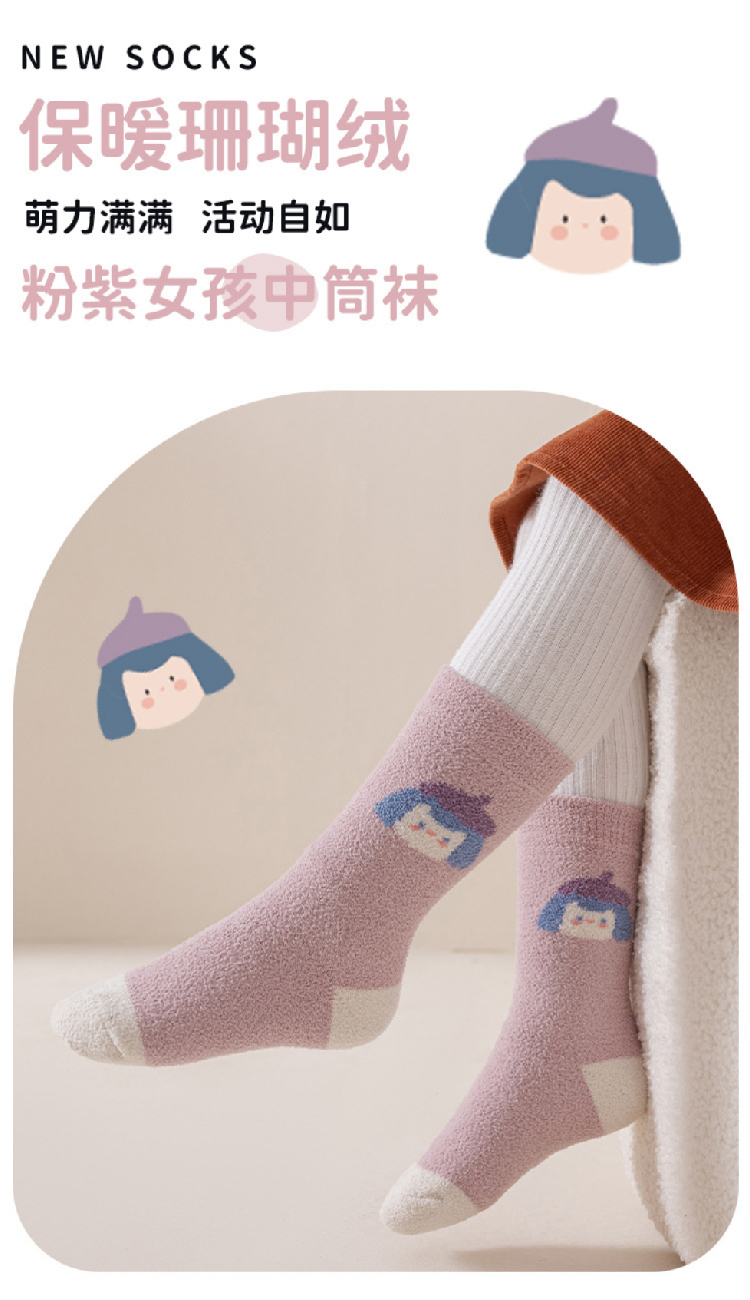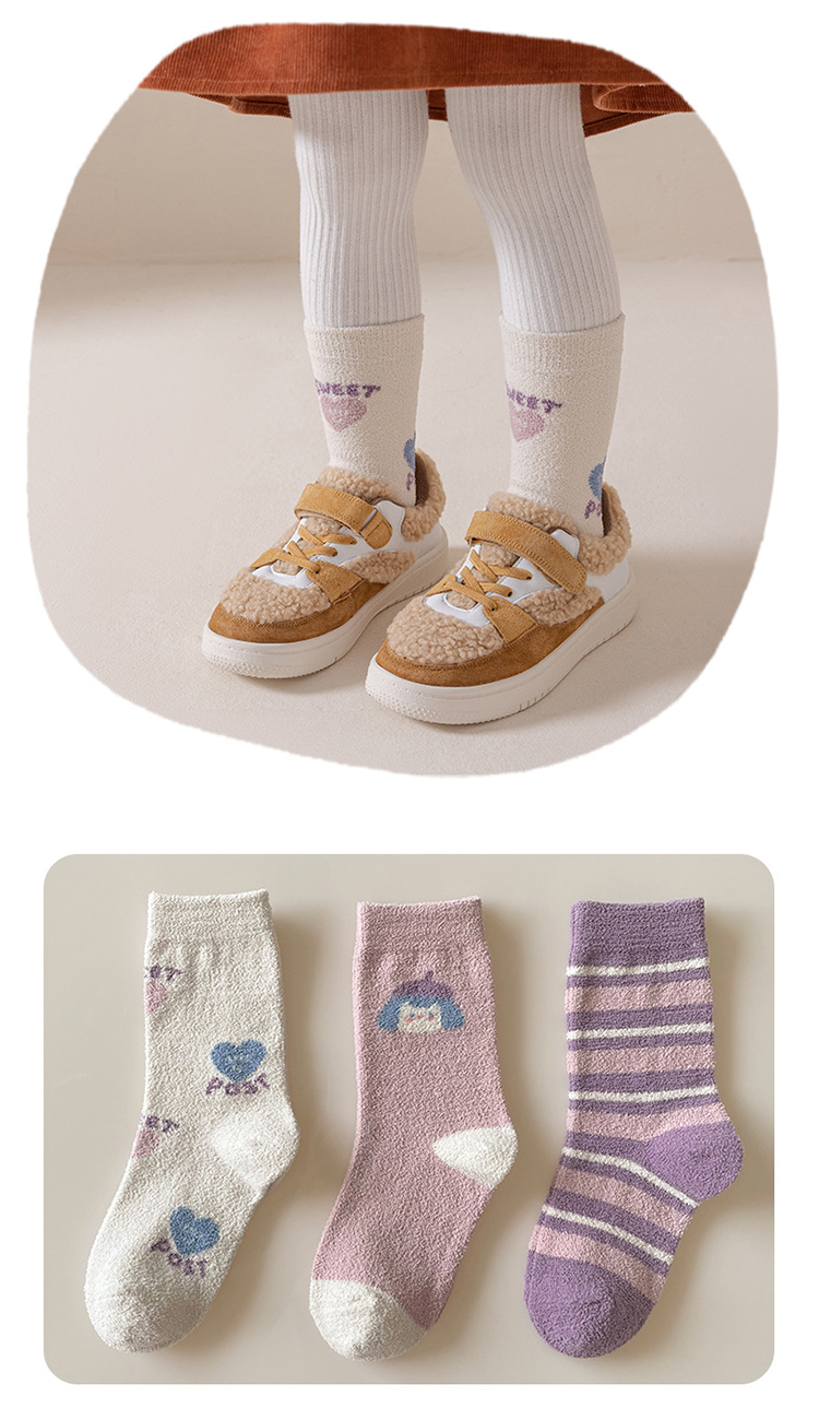 【儿童珊瑚绒3双袜】秋冬珊瑚绒加厚儿童袜子男女童 卡通潮袜中筒宝宝中大童袜(1~12岁)