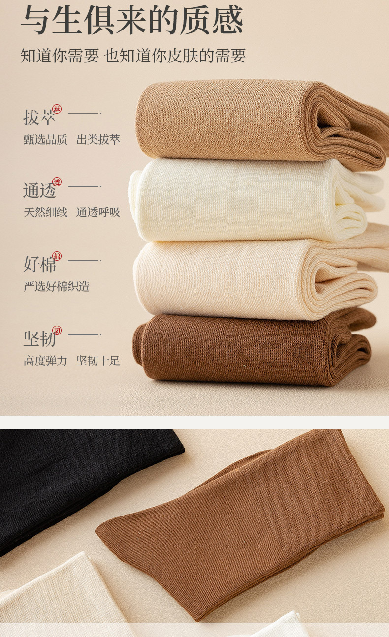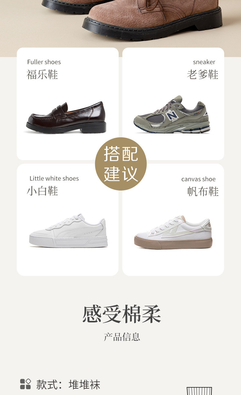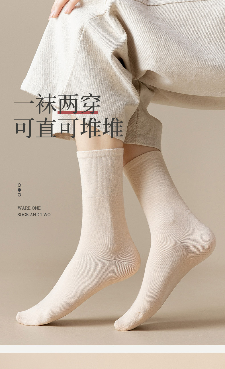 【醒粉福利19.9元/4双】宝娜斯女士长绒棉堆堆袜 秋冬无骨中筒袜纯棉袜子