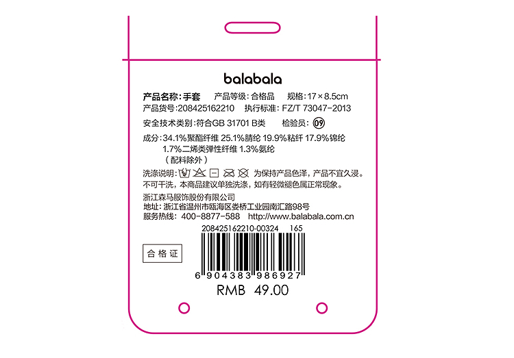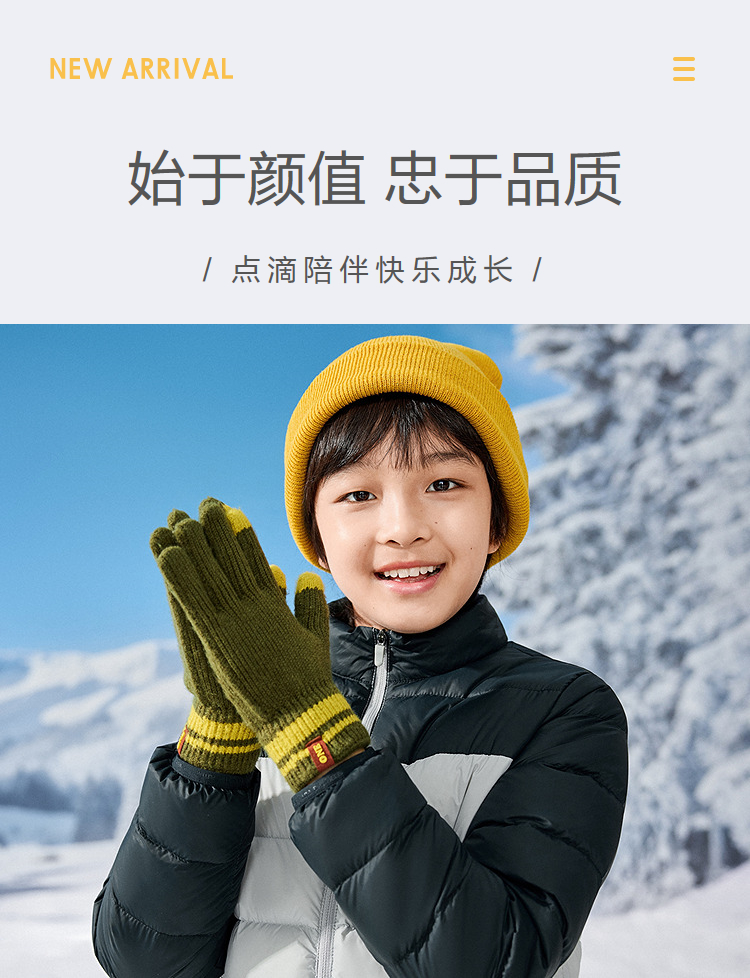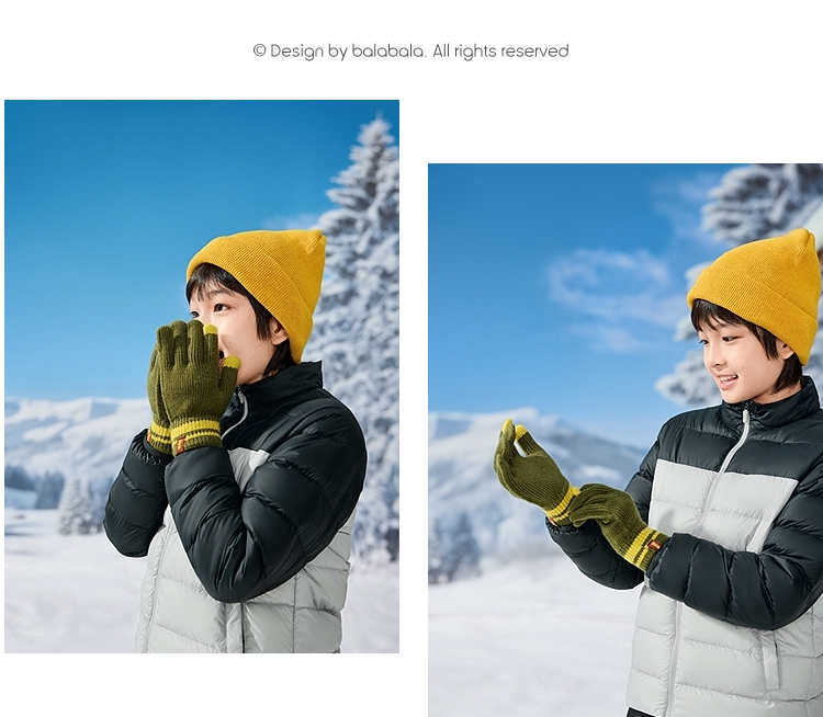 巴拉巴拉balaOne儿童手套男童撞色五指2025新款保暖舒适时尚简约