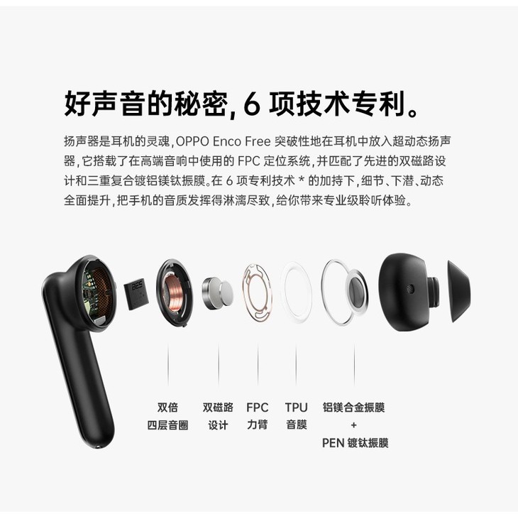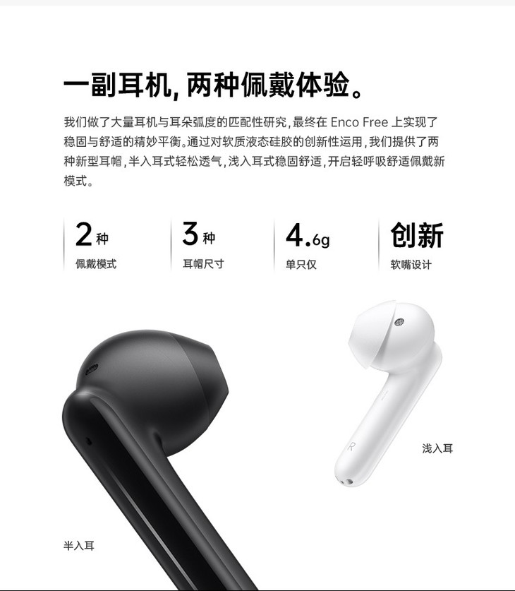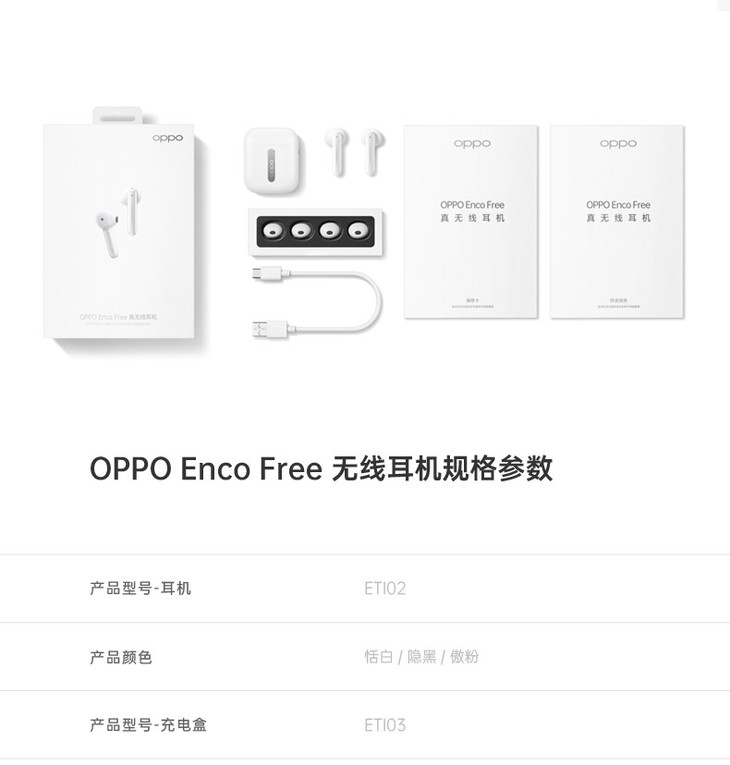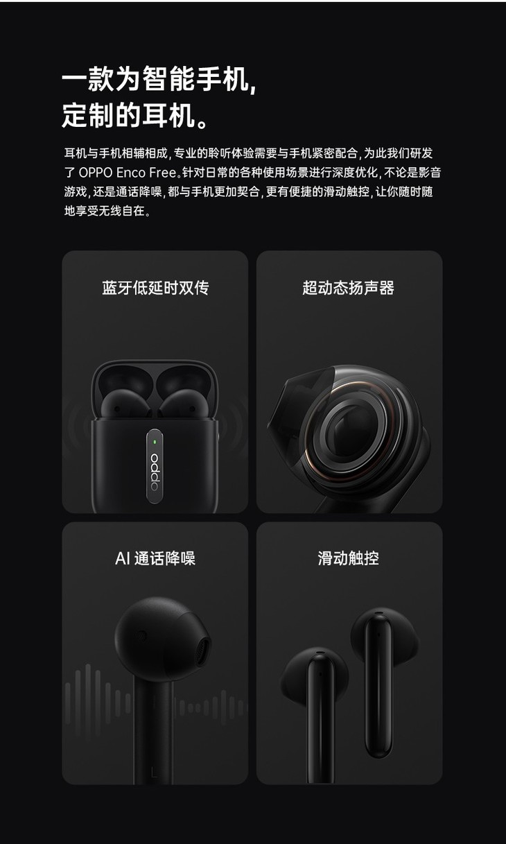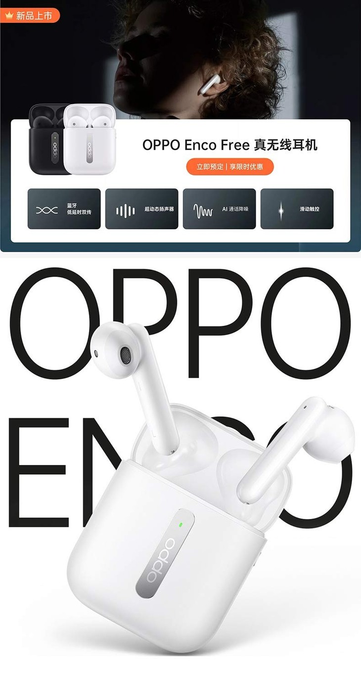 OPPO Enco Free 真无线蓝牙耳机原装正品手机通用tws半入耳式游戏音乐通话降噪