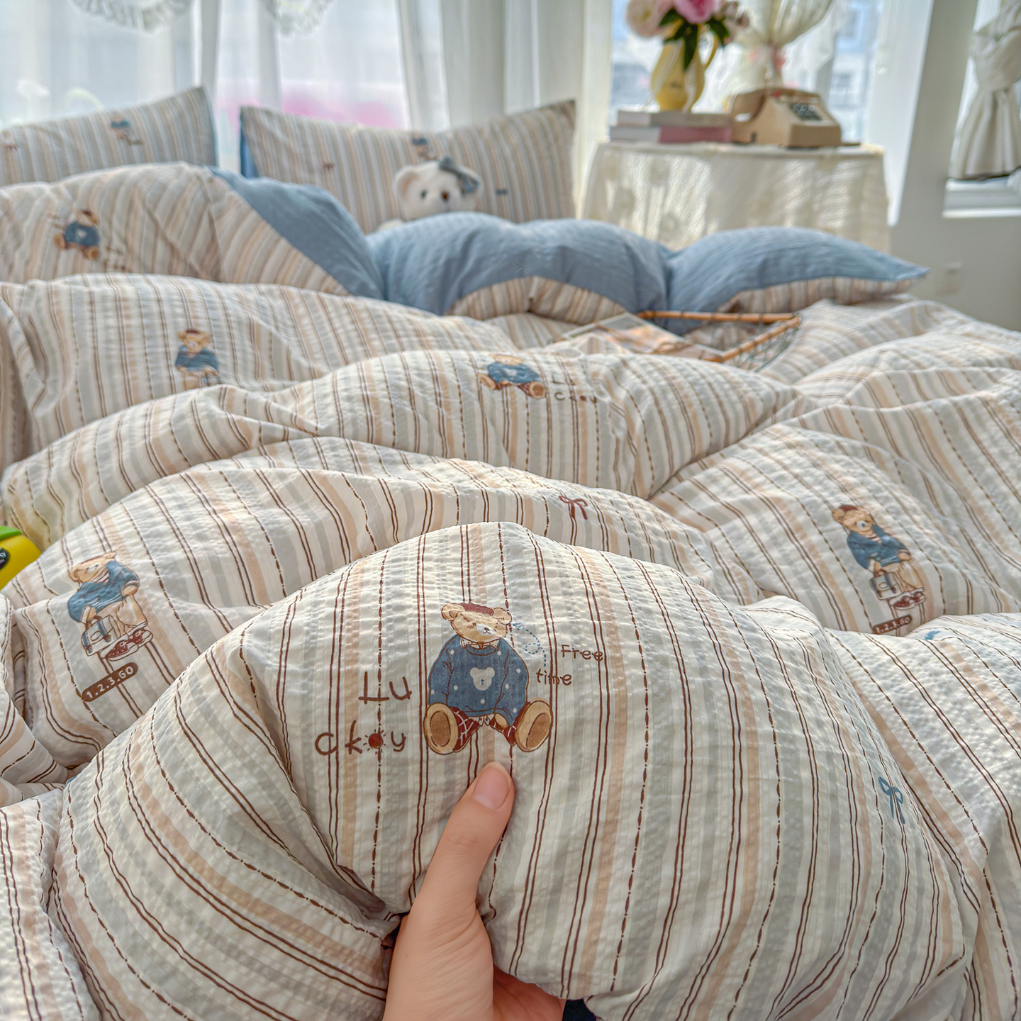 【品牌直发】加倍生活 春夏新款高克重A类泡芙纱泡泡皱皱纱四件套yc0228002