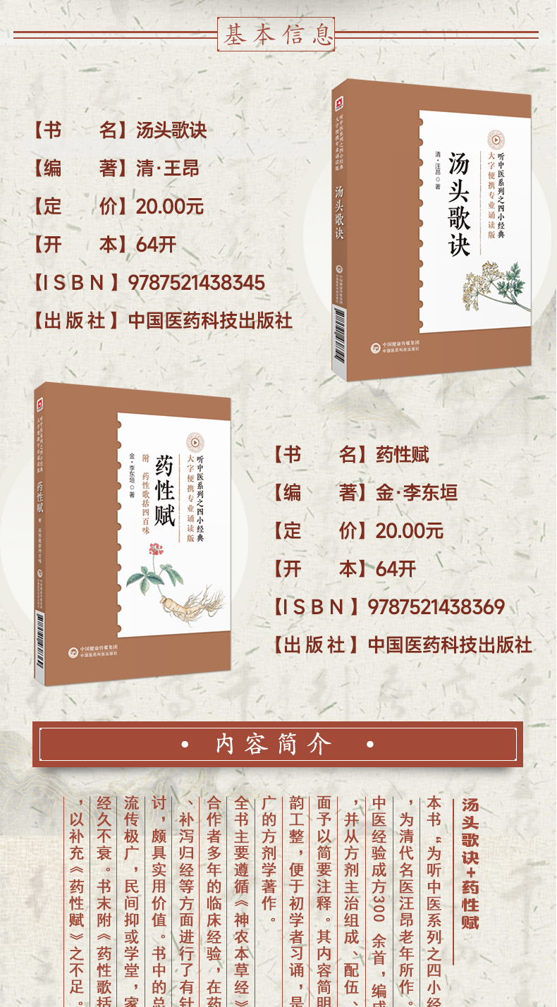 全2册 汤头歌诀+药性赋 音频诵读版中医四小经典名著典籍古医中医方书中药方剂学药证指引中医中药学国医入门零基础理论知识