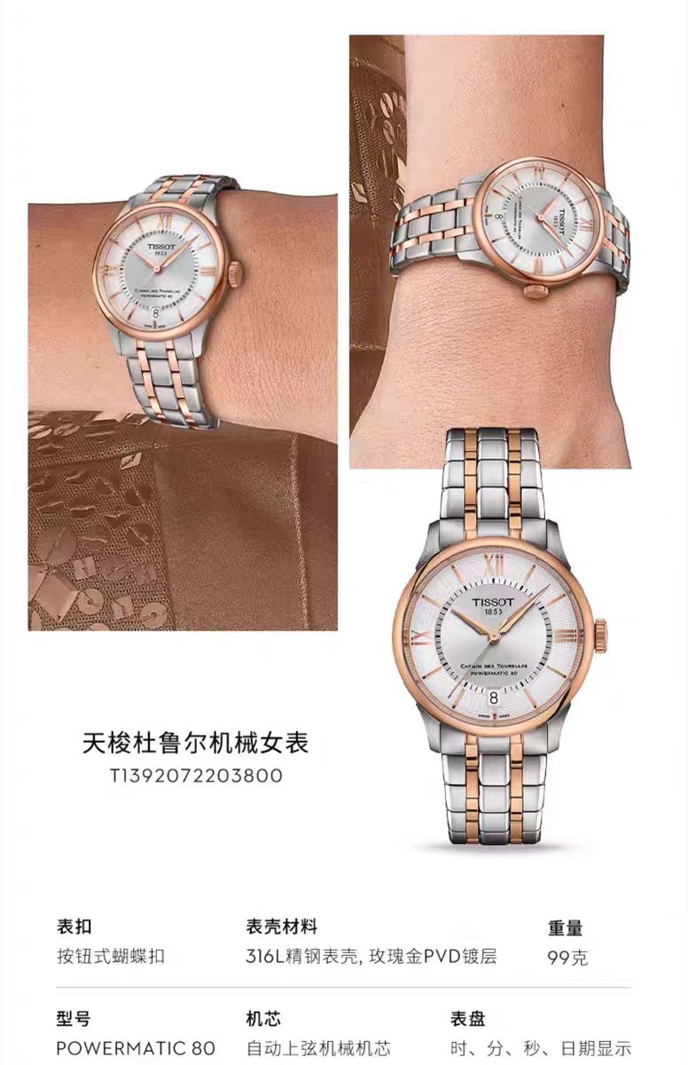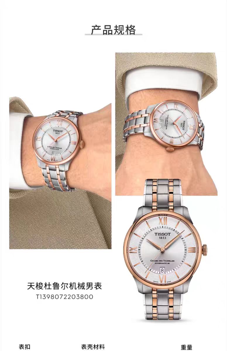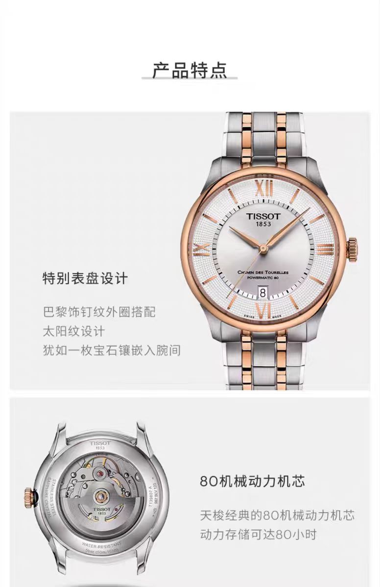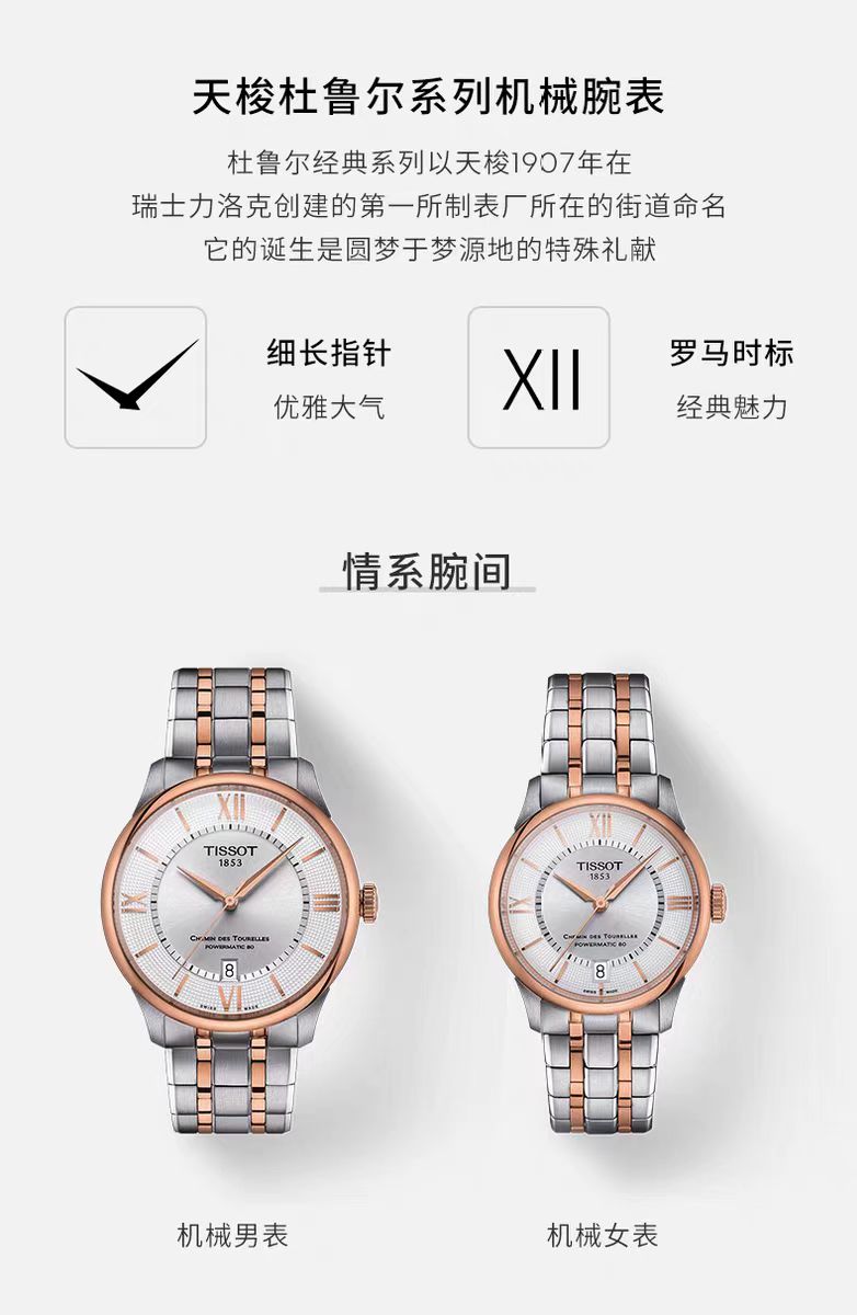1F【天梭】新品TISSOT天梭杜鲁尔系统钢带80机芯机械腕表