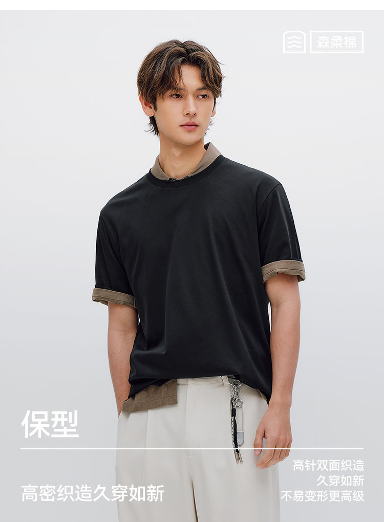 森柔棉|商场同款森马短袖T恤男夏季纯色针织衫2026新款小宽松上衣