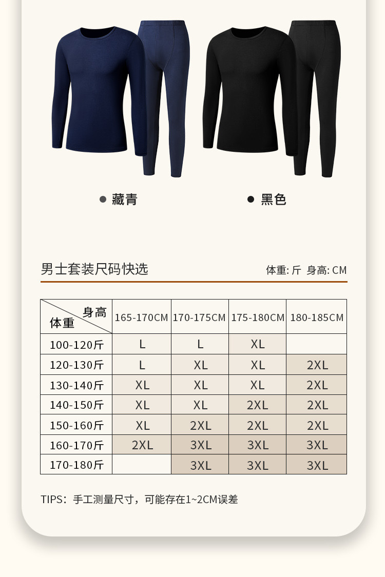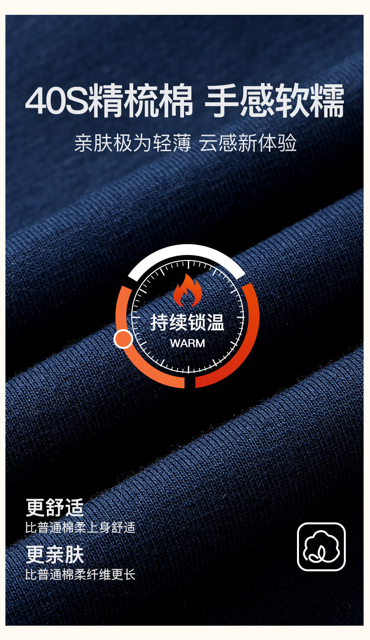 清辉如月 男士打底套装(VIP)【轻暖蓄热锁温95%云感棉】男士秋衣秋裤打底保暖内衣套装