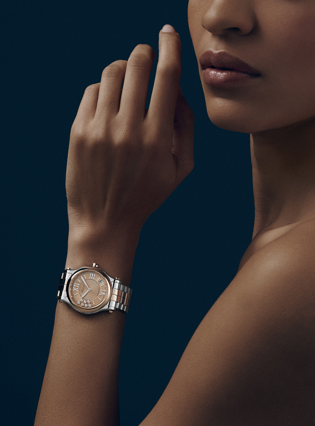 镜面材质 | 蓝宝石水晶玻璃 | 表盘 | 精钢和18K玫瑰金表壳 玫瑰金色表盘,中央饰有玑镂雕纹,饰有玑镂雕纹,7颗灵动钻石,罗马数字时标和锥形时针和分针,秒针 日期显示 透底 |
